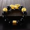 Pulseira corajosa banhada a ouro latão contas de transferência de fortuna ágata obsidiana pulseira sânscrita pulseira masculina e feminina atacado