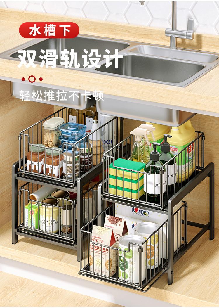 Prateleira transfronteiriça dedicada para lavatório de cozinha, rack de armazenamento, gabinete push-pull, armário de piso removível, rack de armazenamento multicamadas