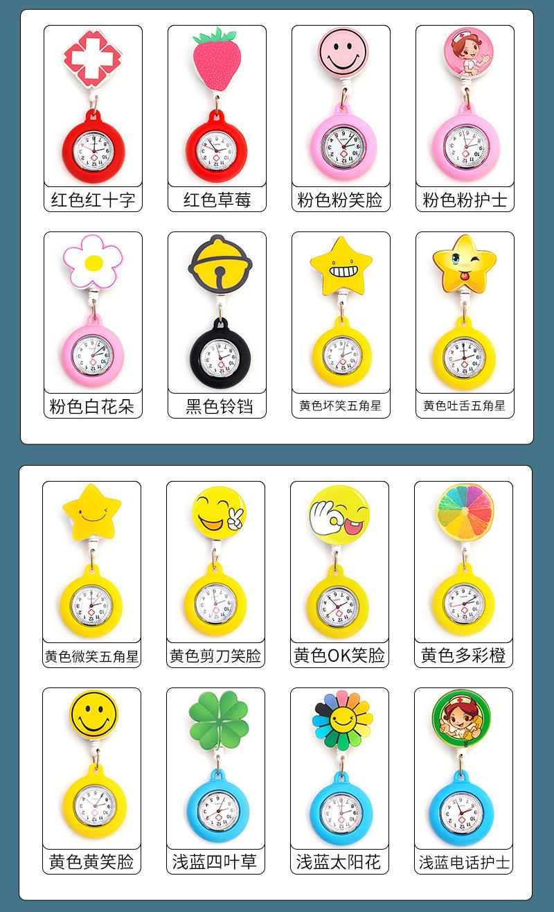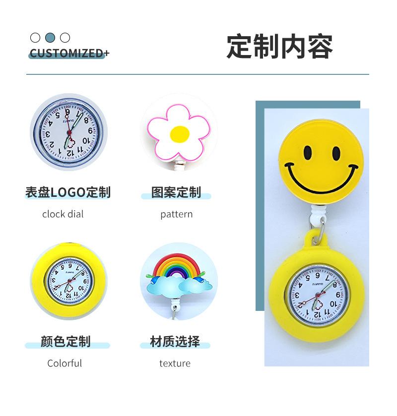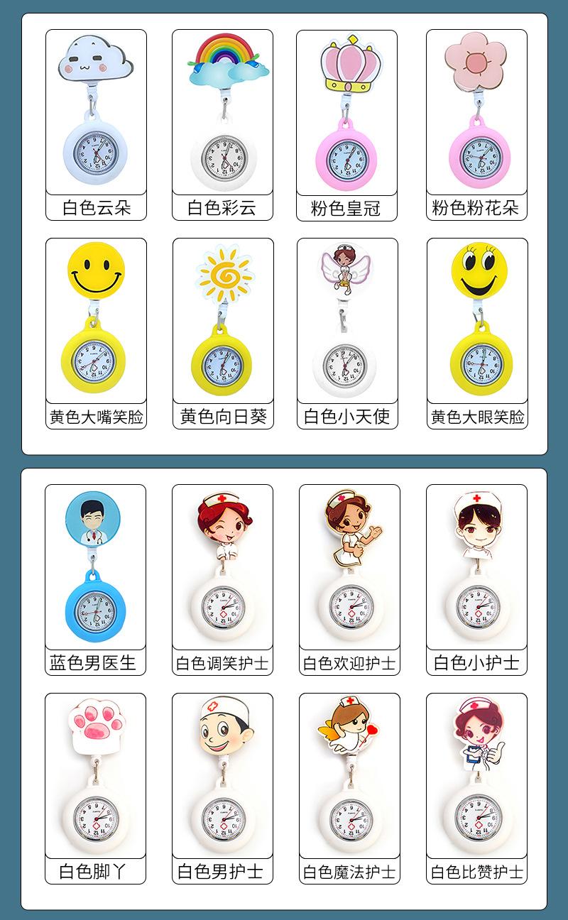 25 Novo Relógio de Enfermeira Silicone Luminoso Médico Estudante Relógio de Bolso Relógio de Bolso de Peito Design de Padrão Fabricante Atacado