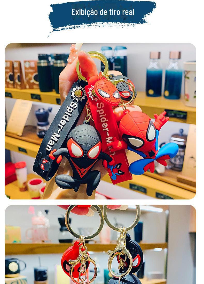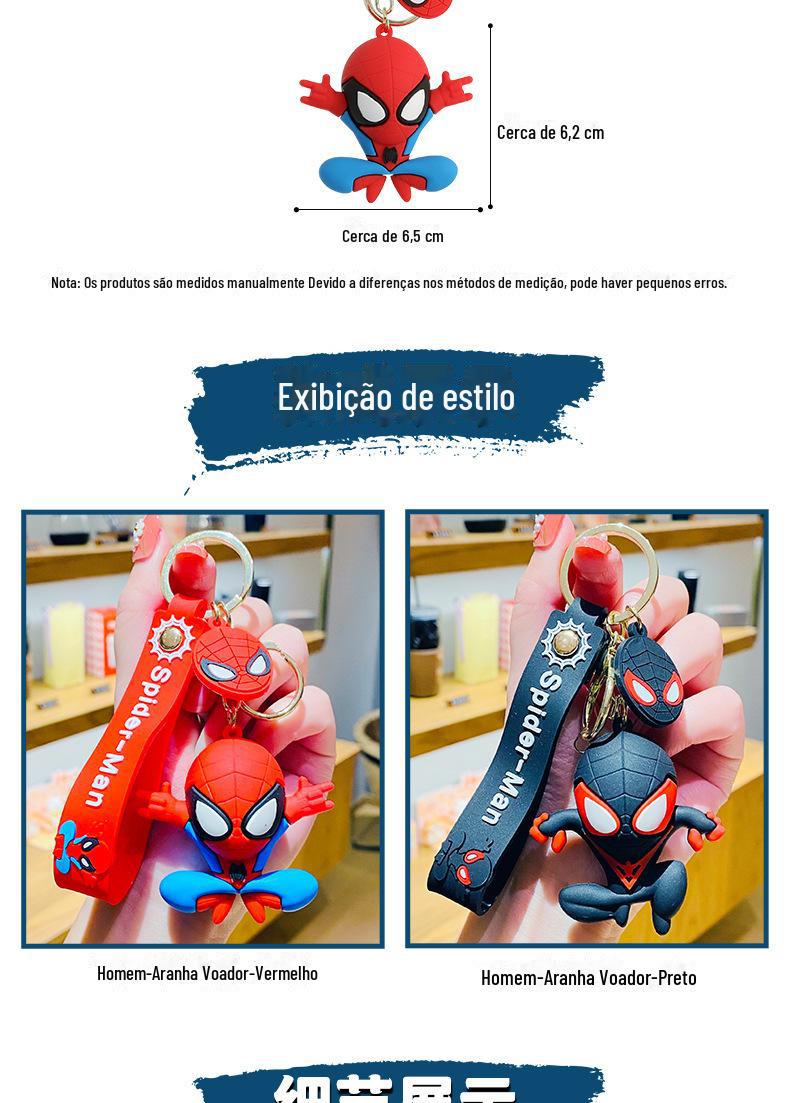 Desenho animado criativo voando Homem-Aranha série boneca carro chaveiro bolsa de livro das mulheres pingente um par de pequenos presentes por atacado