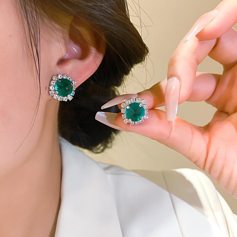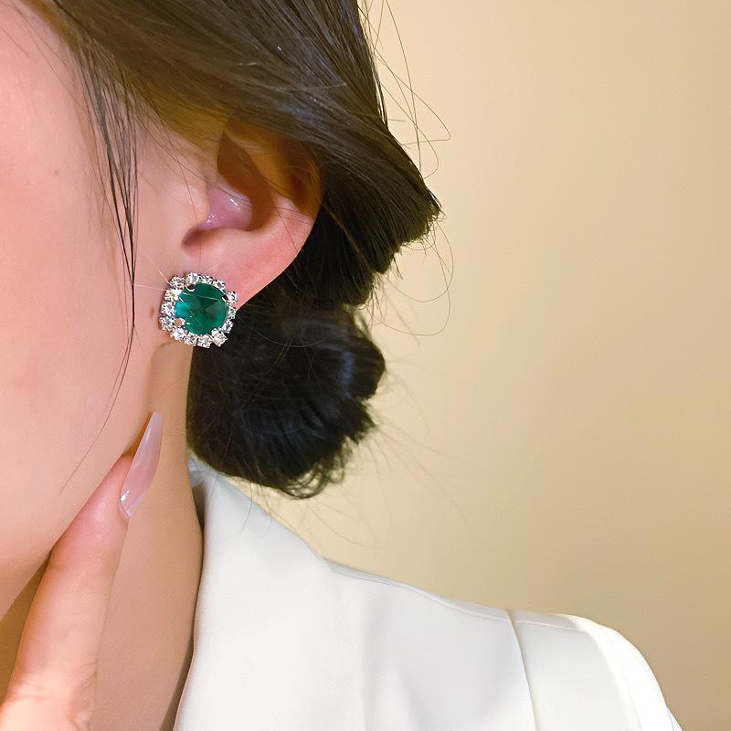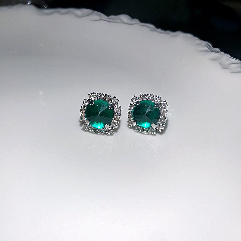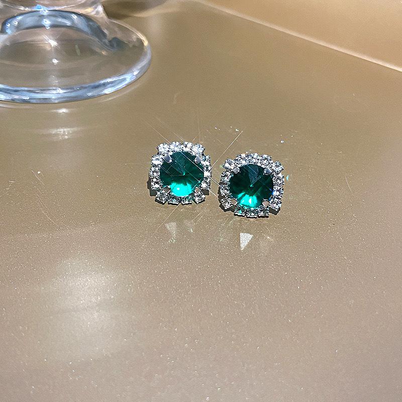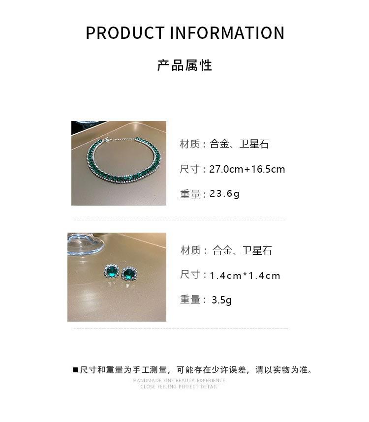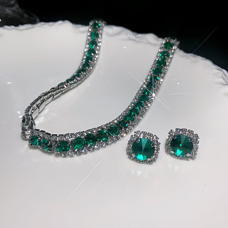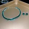 Conjunto de Duas Peças de Brincos e Colar Quadrado de Esmeralda Cravejado de Diamantes, Brincos Elegantes, Conjunto Versátil de Nicho, Estilo Luxo Leve Feminino