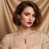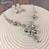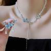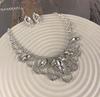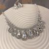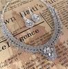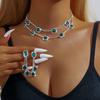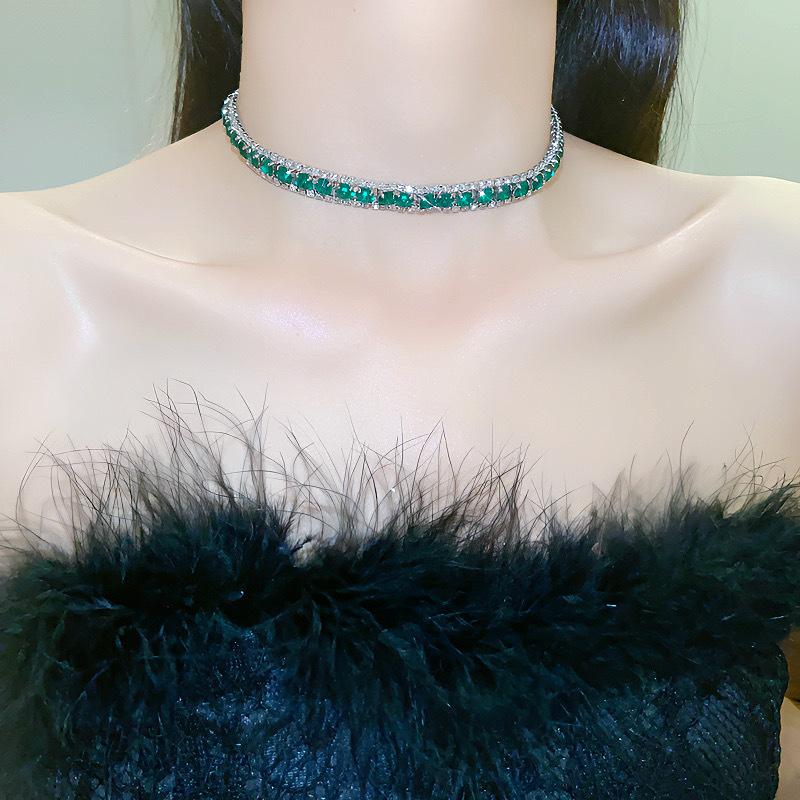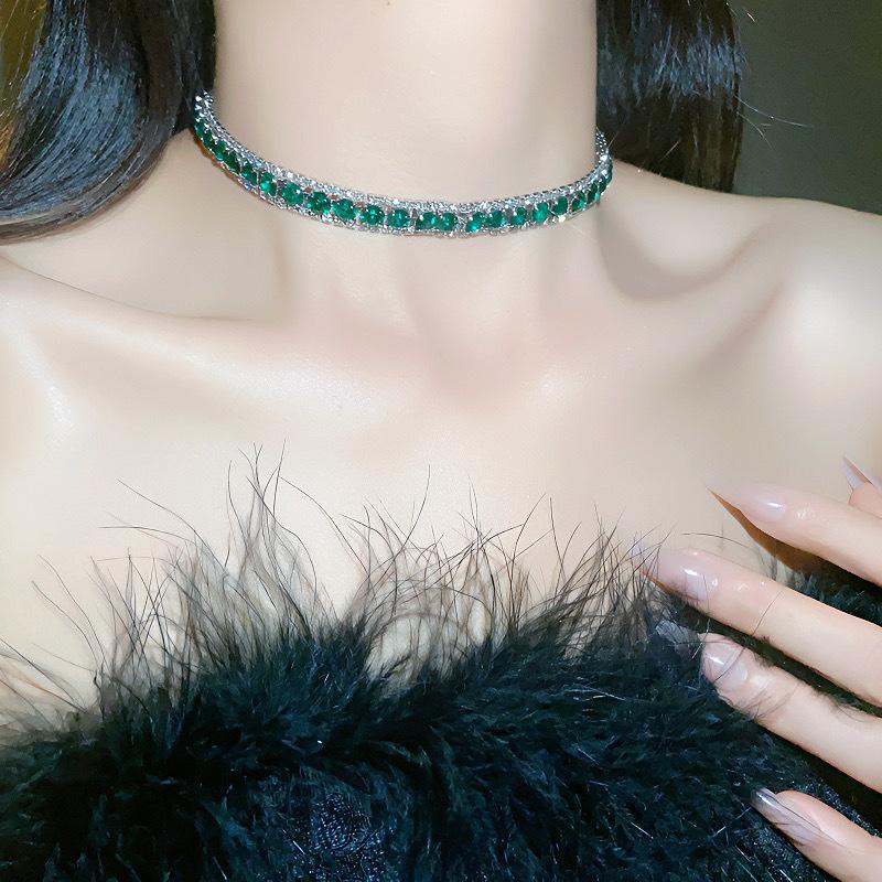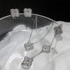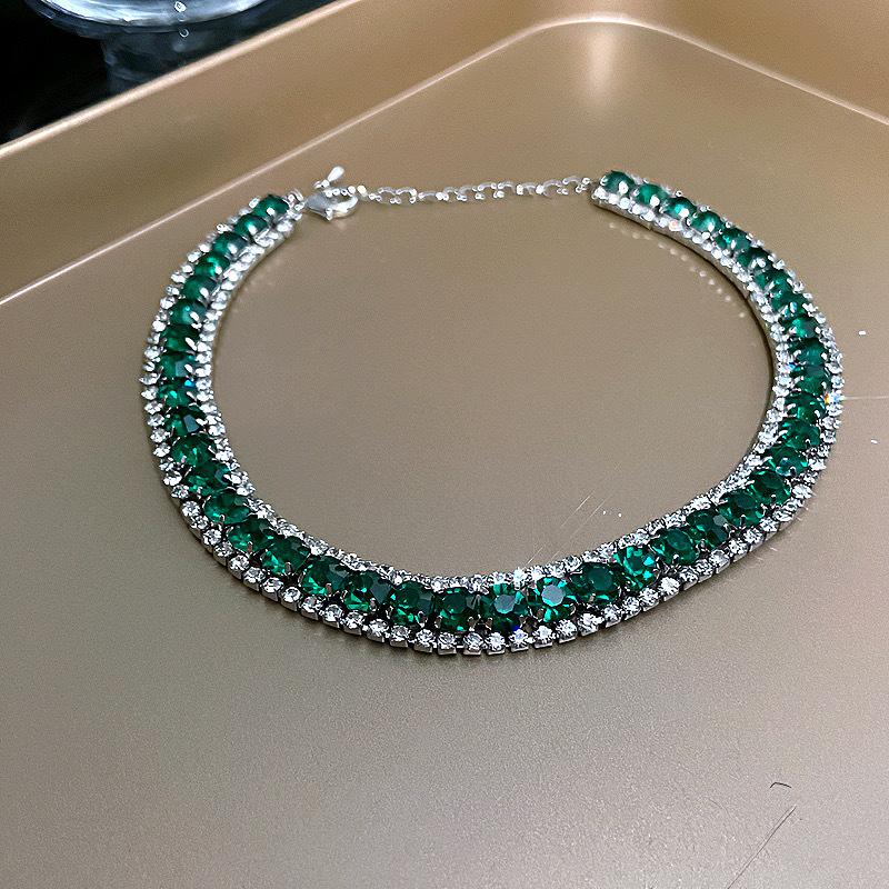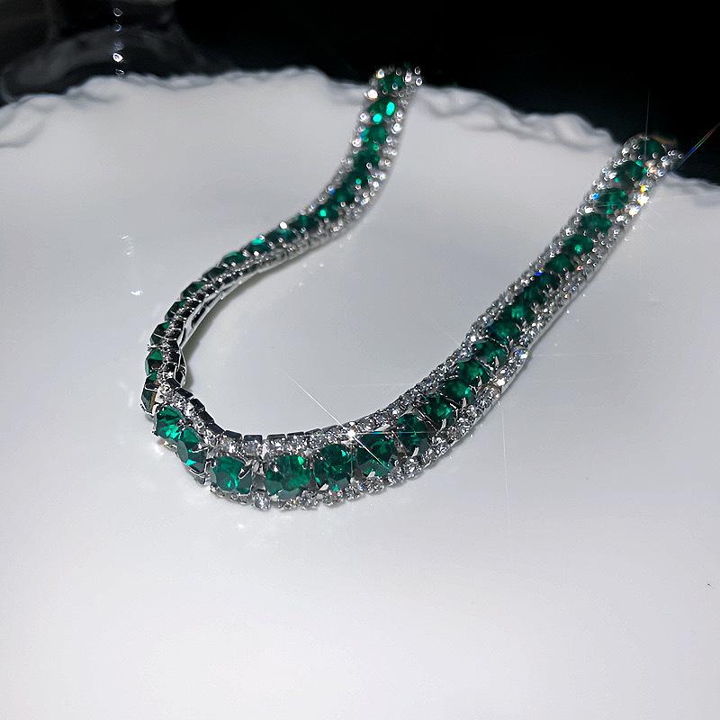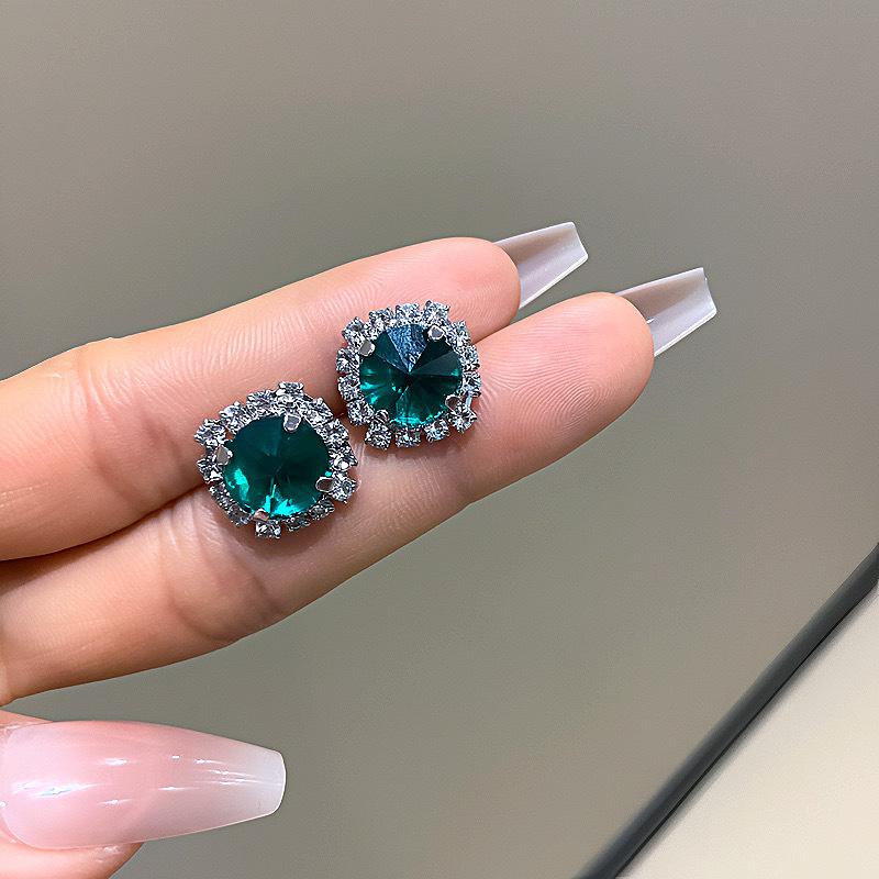 Conjunto de Duas Peças de Brincos e Colar Quadrado de Esmeralda Cravejado de Diamantes, Brincos Elegantes, Conjunto Versátil de Nicho, Estilo Luxo Leve Feminino