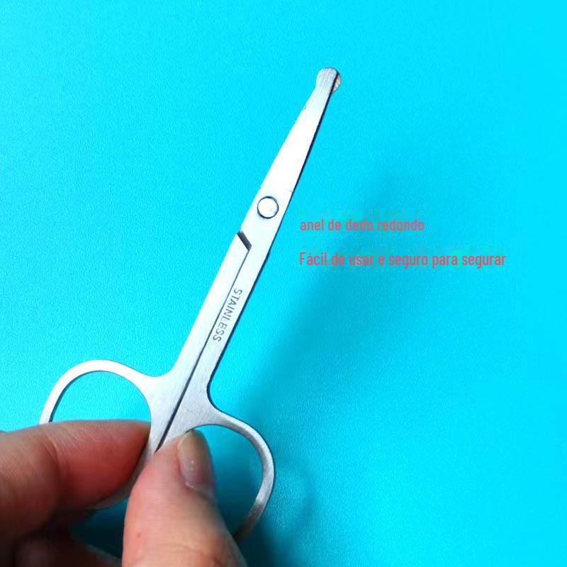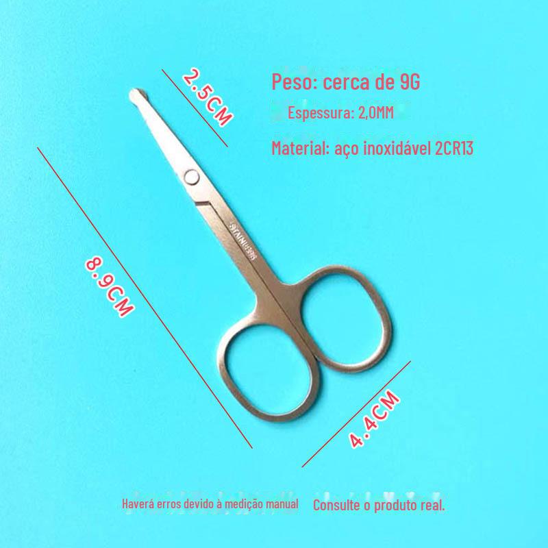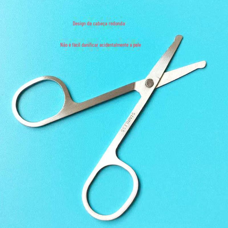 Tesoura de aço inoxidável para aparar pelos do nariz, tesoura para aparar sobrancelhas, tesoura pequena de cabeça redonda, tesoura de beleza, tesoura para aparar pelos do nariz, reparador de pelos do nariz