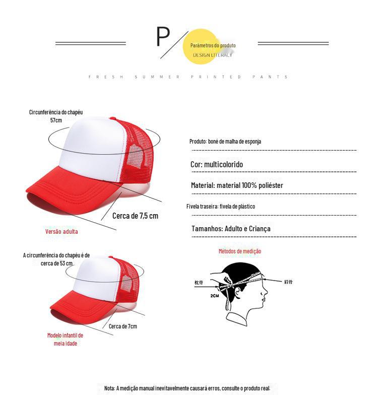 Tampa de rede de esponja logotipo impresso em branco publicidade boné fábrica atacado viagem chapéu pai-filho boné bordado beisebol boné