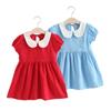 Amazon colarinho de boneca saia infantil manga curta cor sólida meninas vestido de verão princesa saia algodão roupas infantis comércio exterior atacado