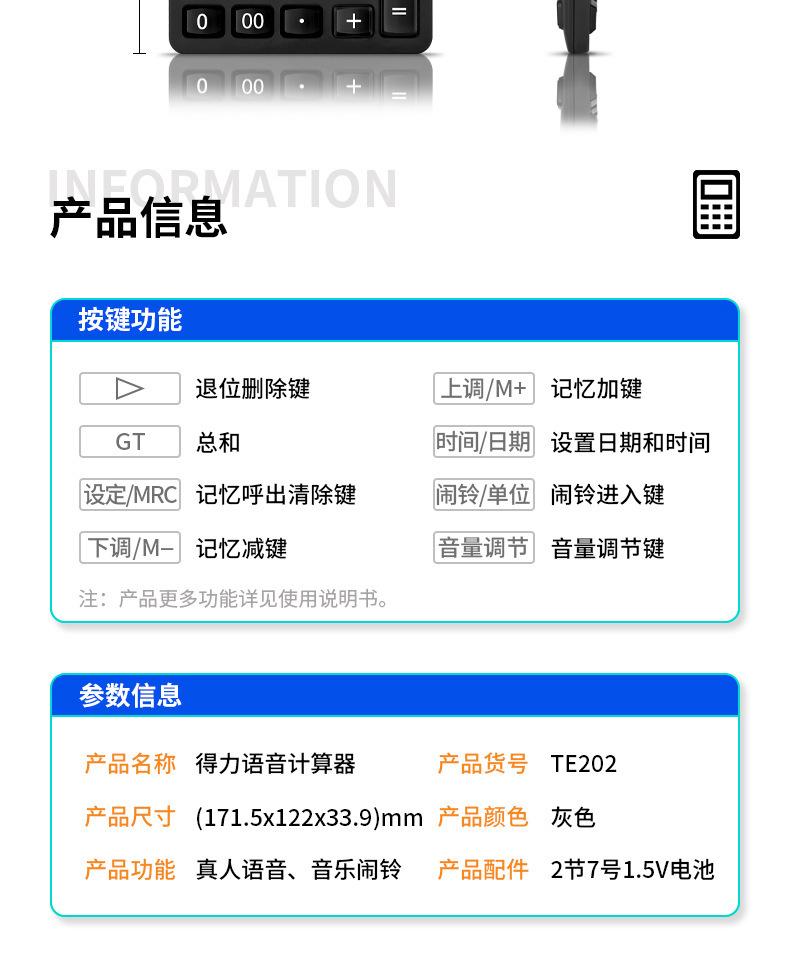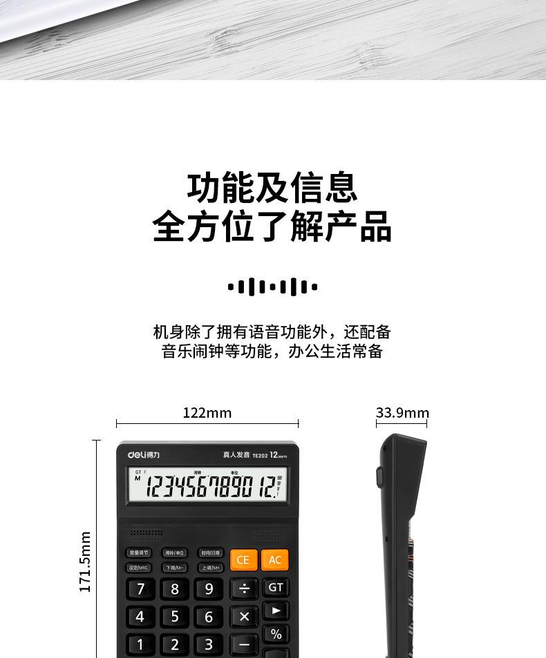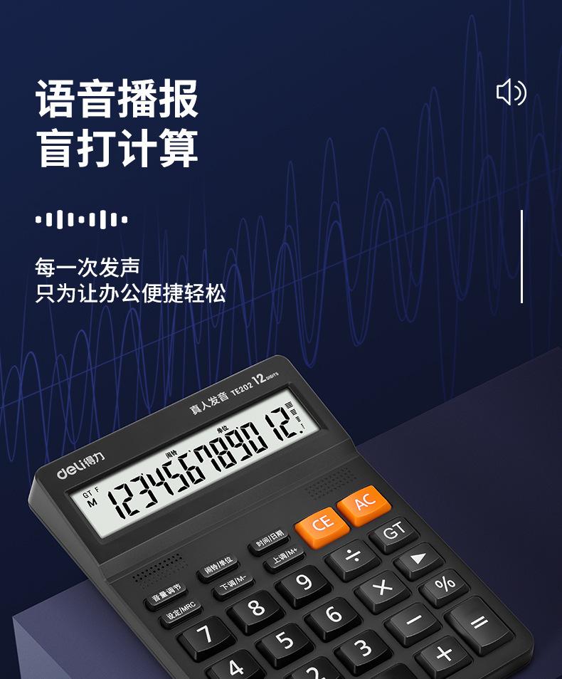 Calculadora de Voz Deli Te202 com Pronúncia Humana, Tela Grande de 12 Dígitos, Mesa de Escritório, Atacado