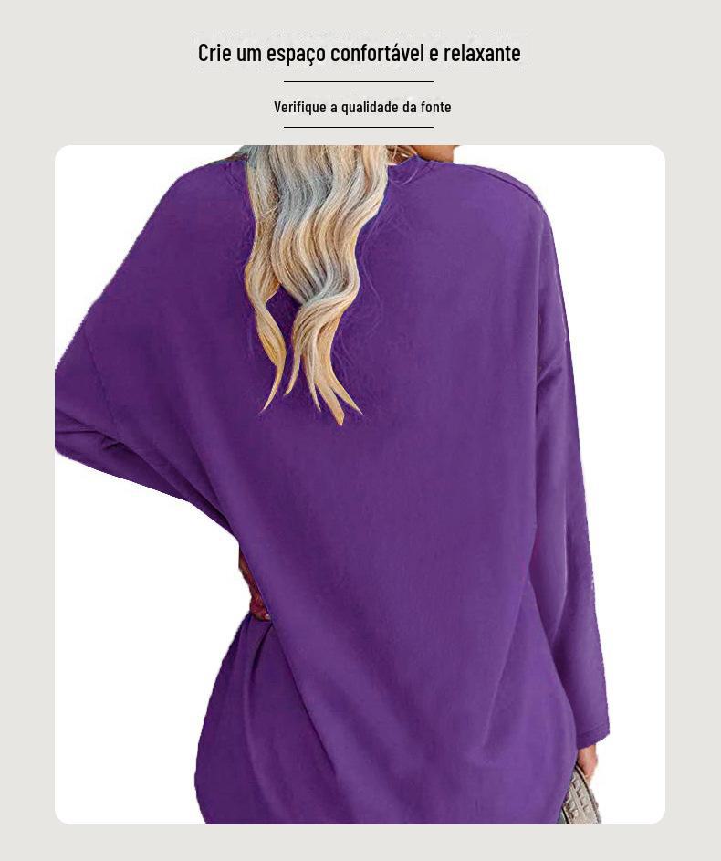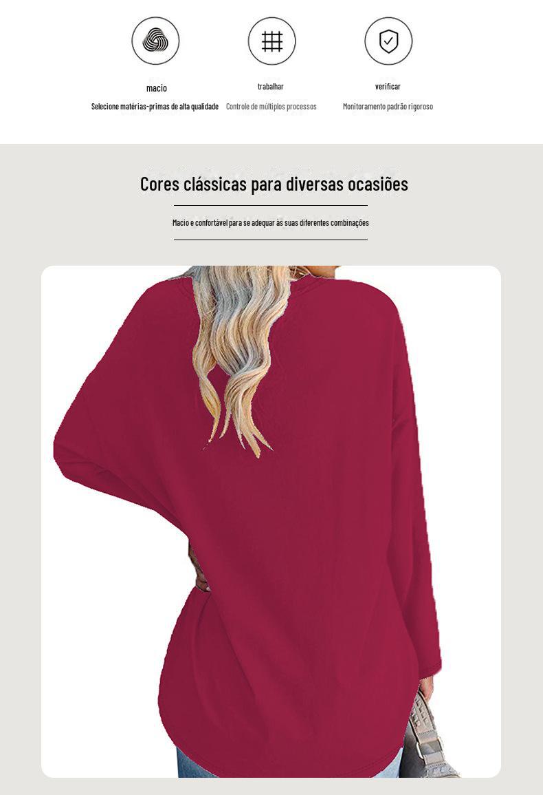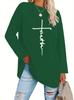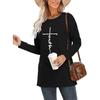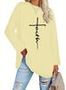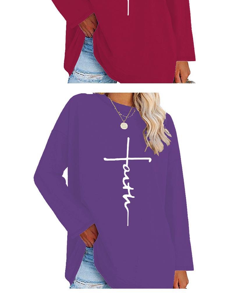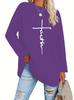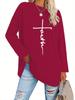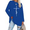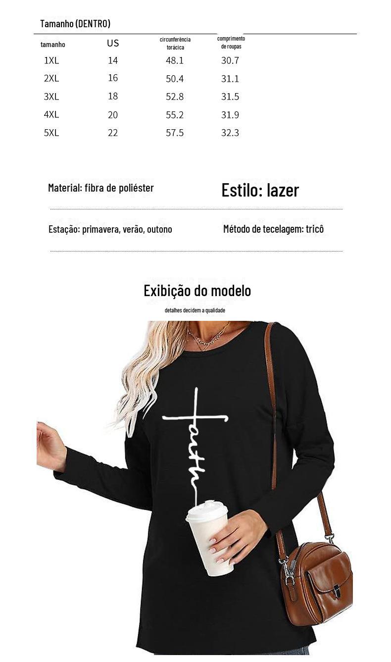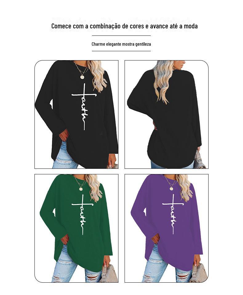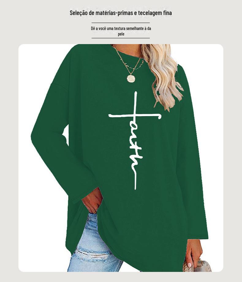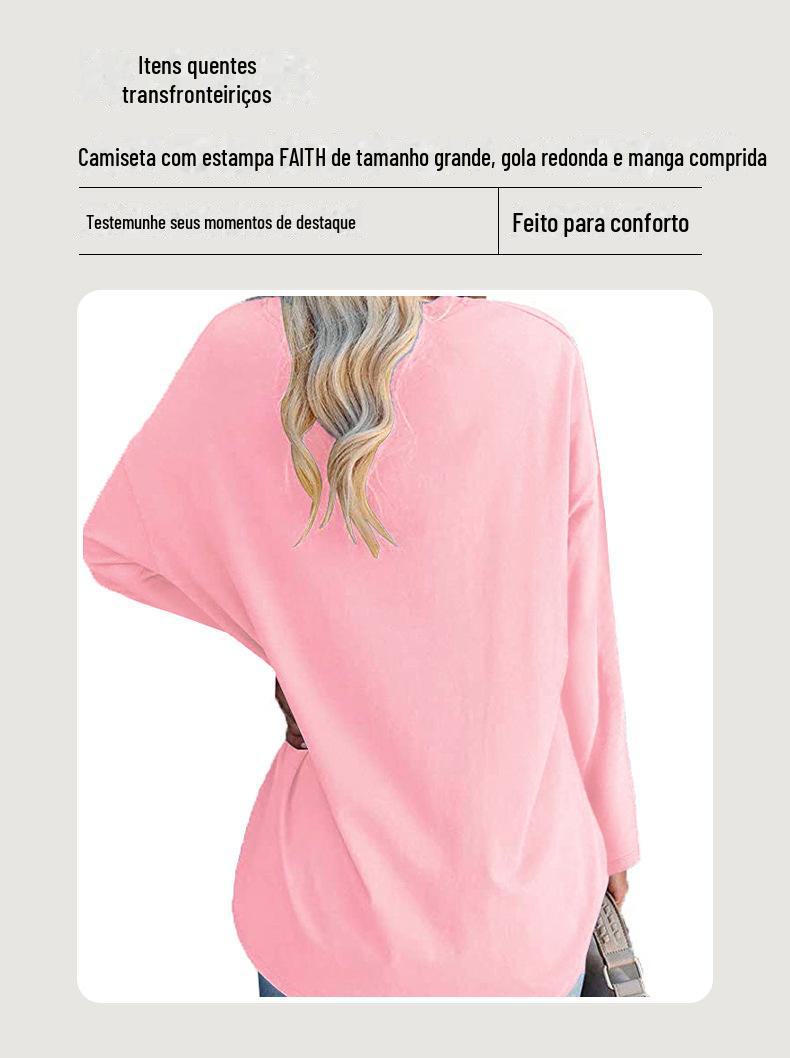 Europeu e Americano Popular Tamanho Extra Grande Gola Redonda Solto Manga Longa Estampa de Letra Fé Camiseta Casual e Versátil