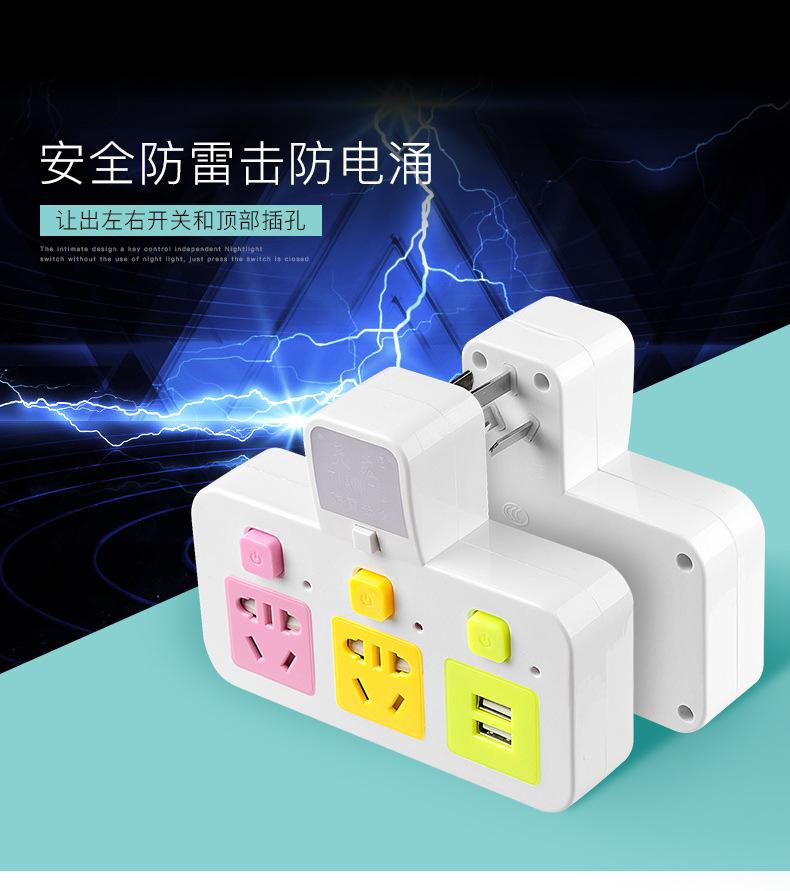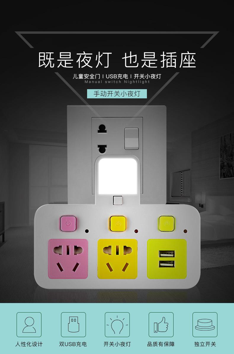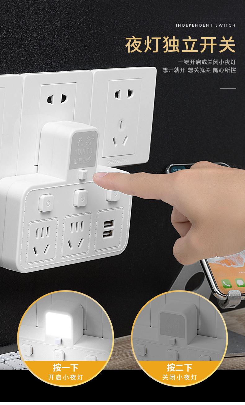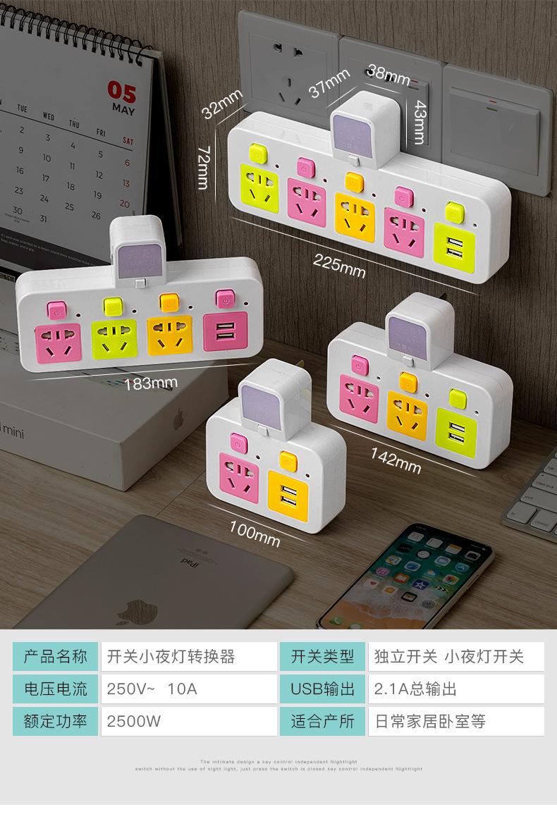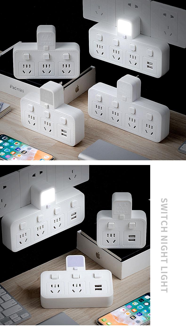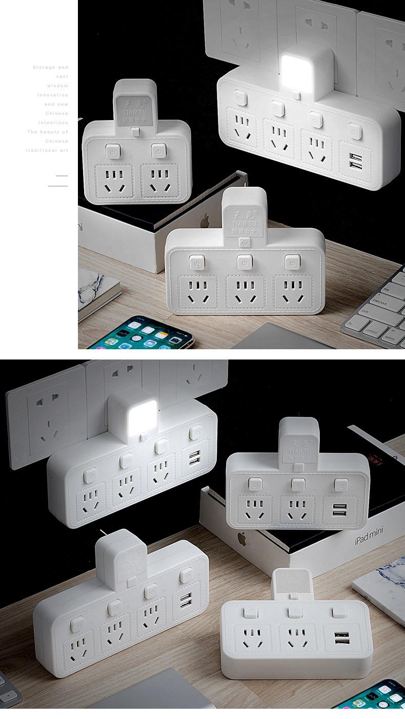 Com tomada de luz noturna conversor doméstico tomada USB porta de segurança multifuncional tomada de plugue de conversão múltipla de uma volta