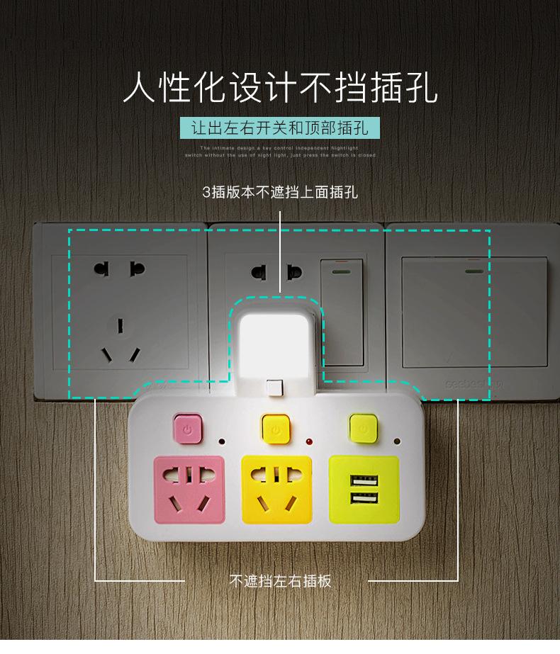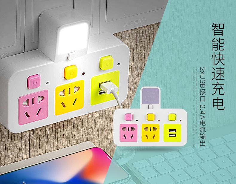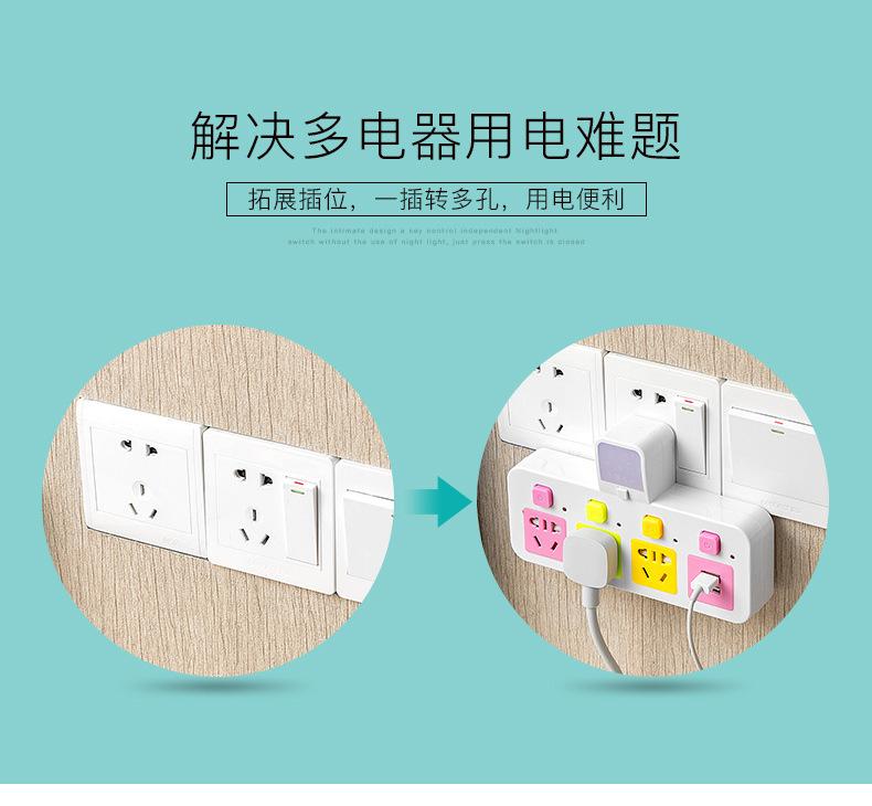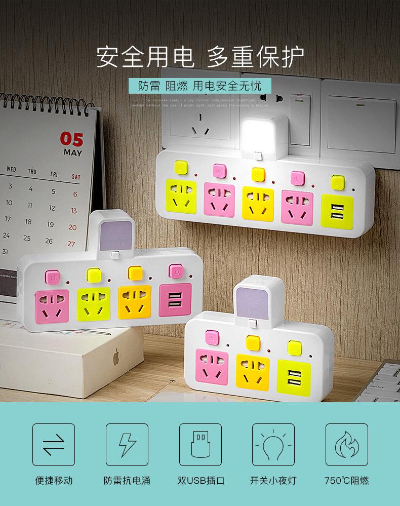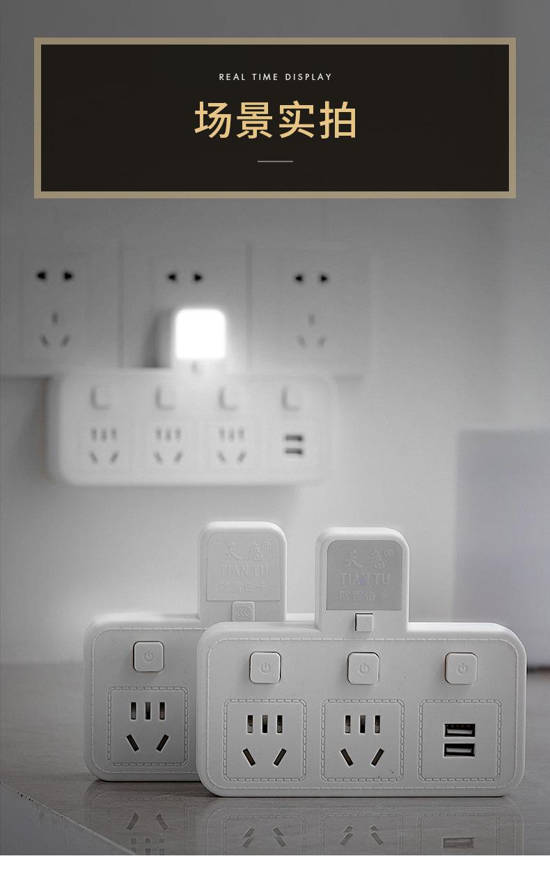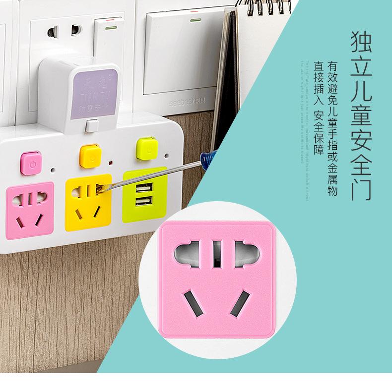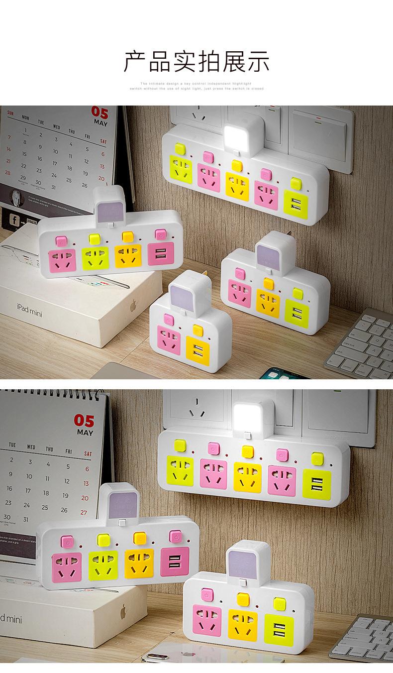 Com tomada de luz noturna conversor doméstico tomada USB porta de segurança multifuncional tomada de plugue de conversão múltipla de uma volta