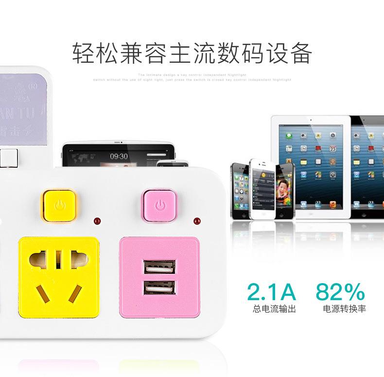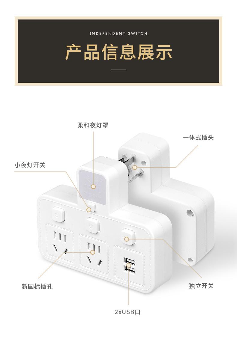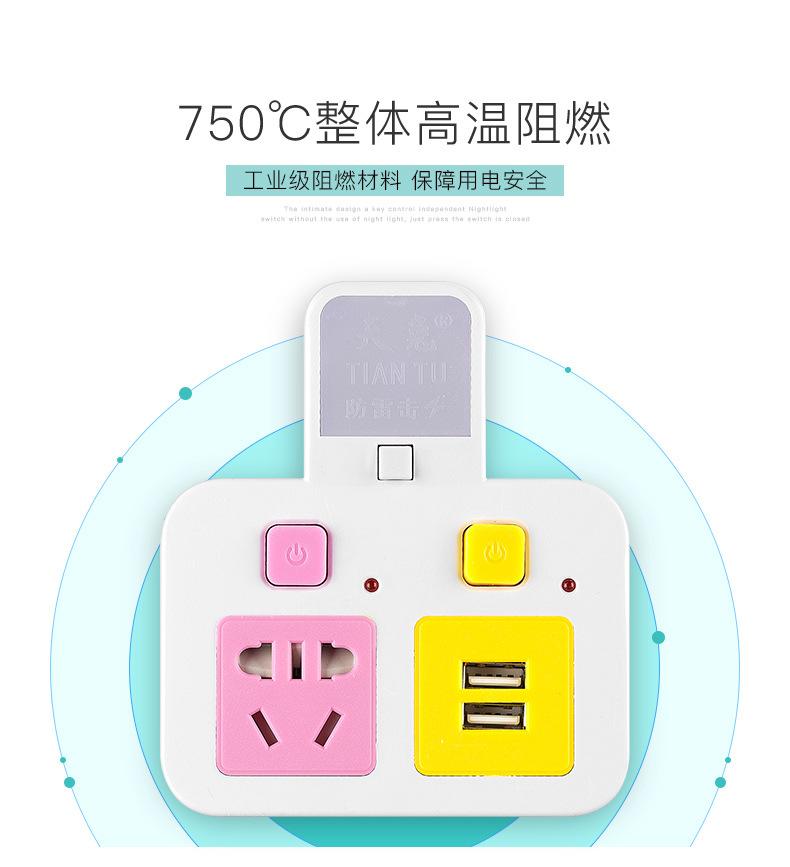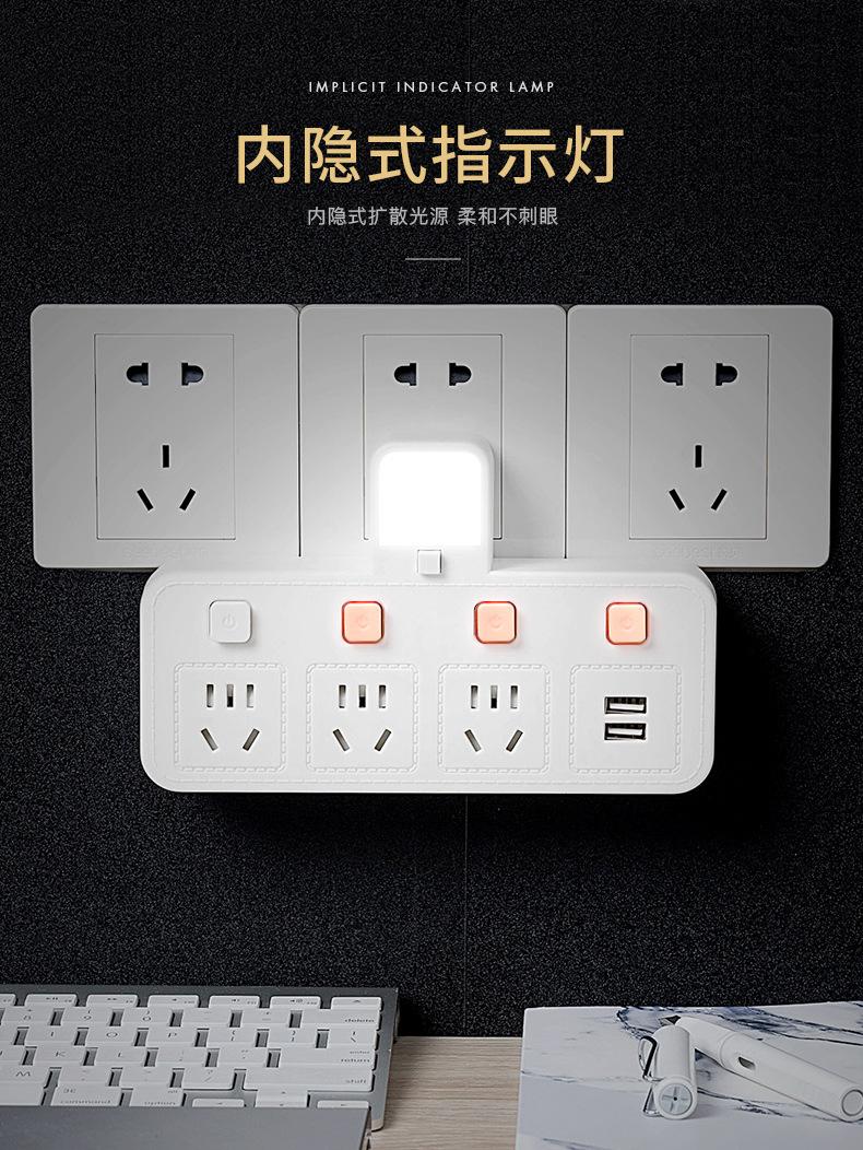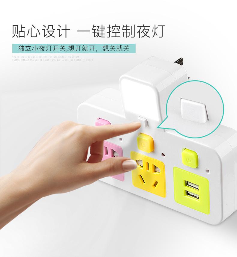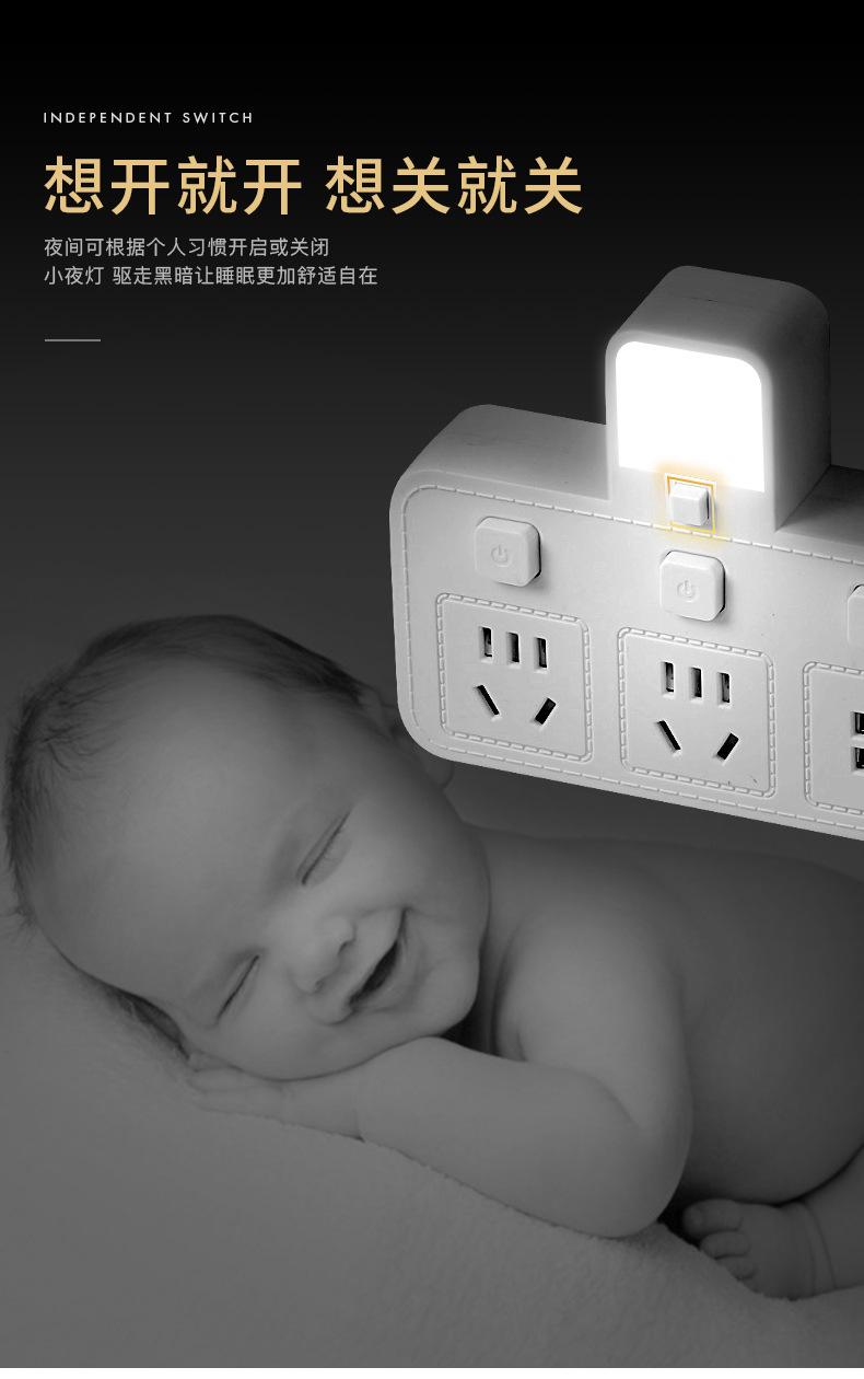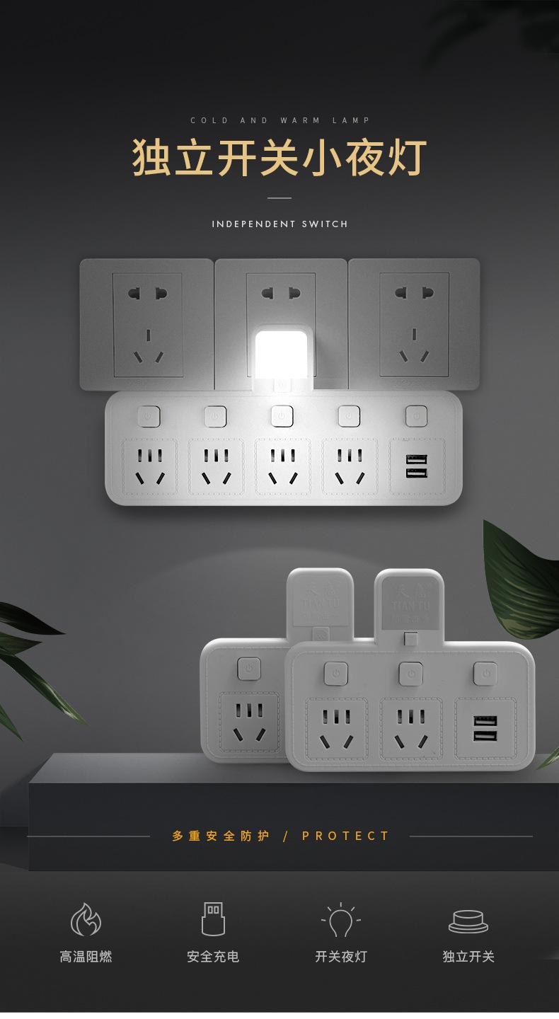 Com tomada de luz noturna conversor doméstico tomada USB porta de segurança multifuncional tomada de plugue de conversão múltipla de uma volta