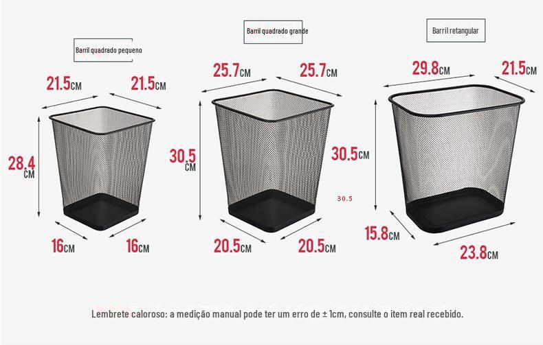 Quadrado Arame Farpado Lixeira Escritório Cesta de Papel Doméstico Ferro Forjado Grande Malha Metal Cozinha Sala de Estar Balde de Lixo