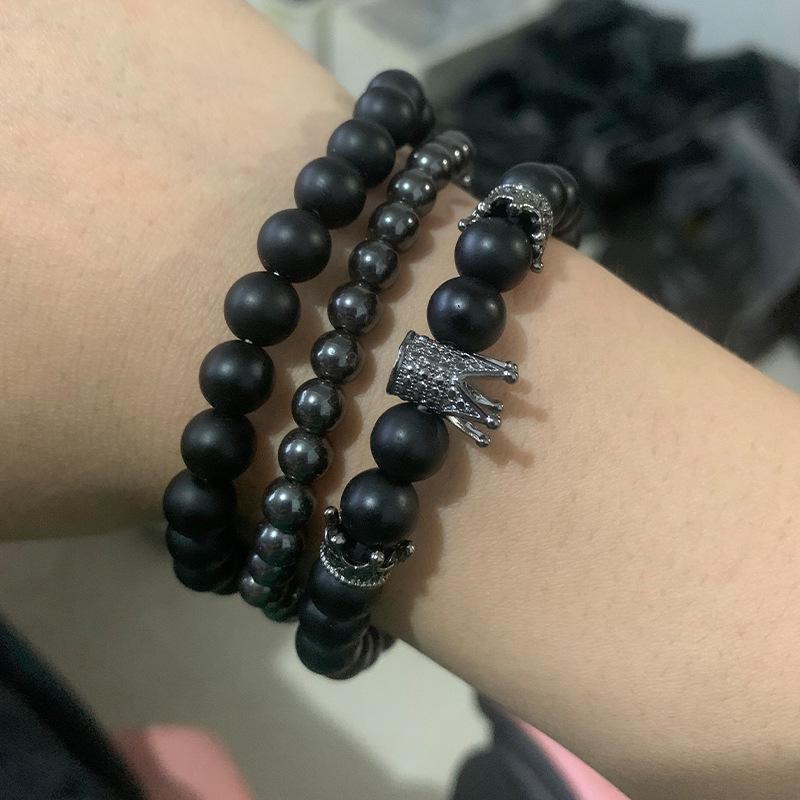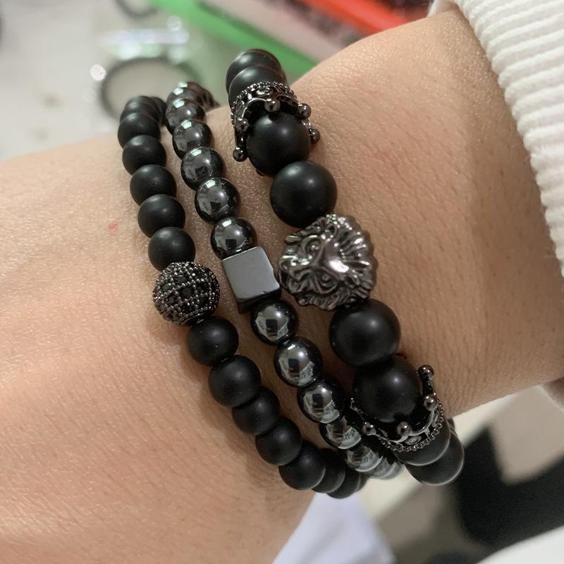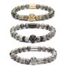 2023 nova moda charme de luxo pulseira masculina contas de pedra feito à mão miçangas cabeça de leão coroa pulseira transfronteiriça