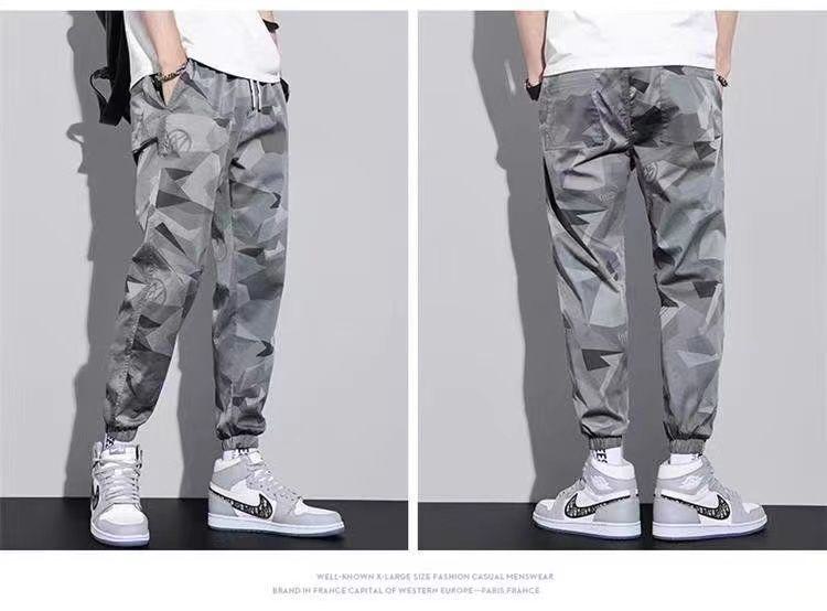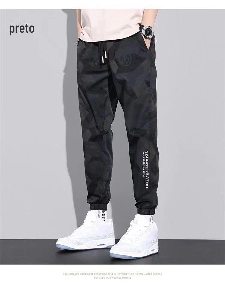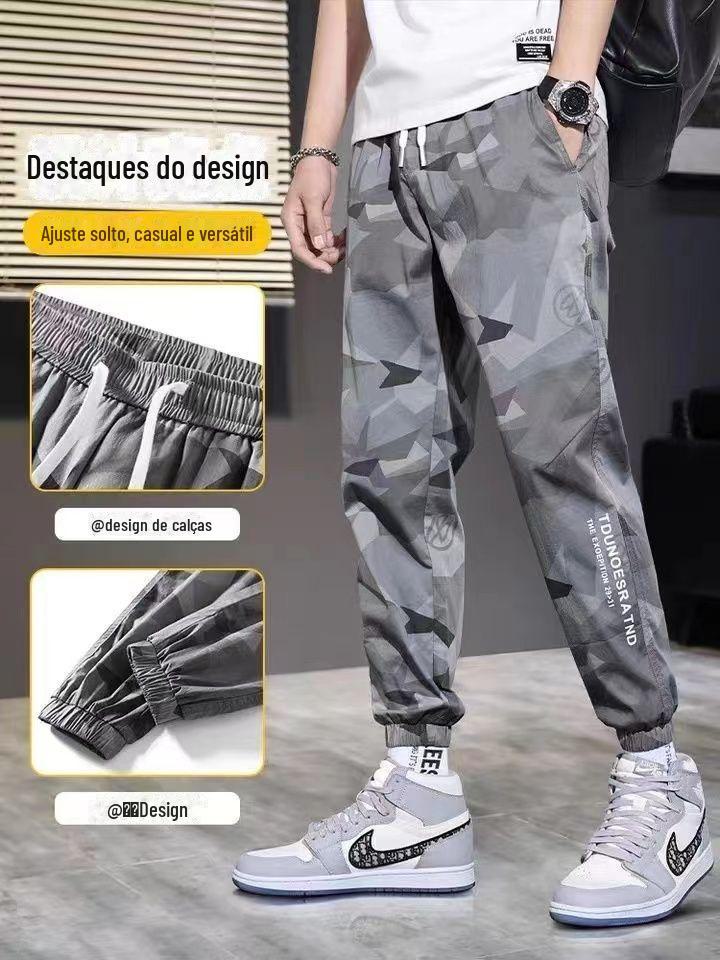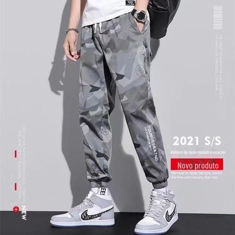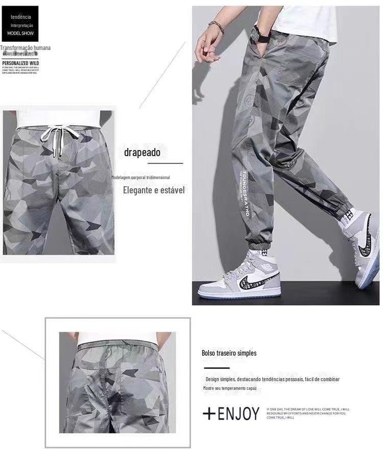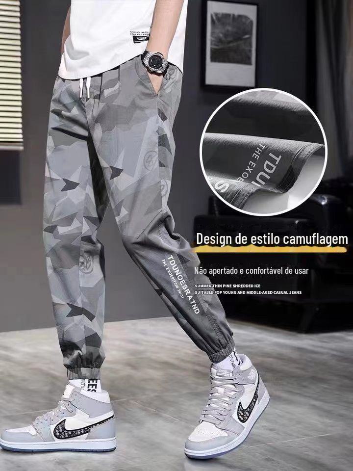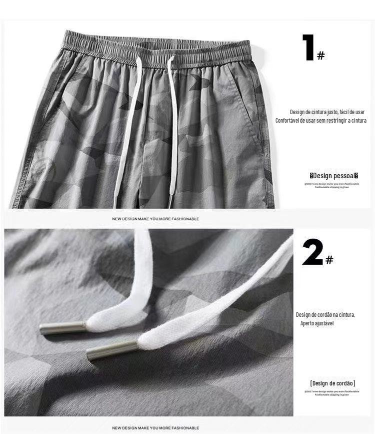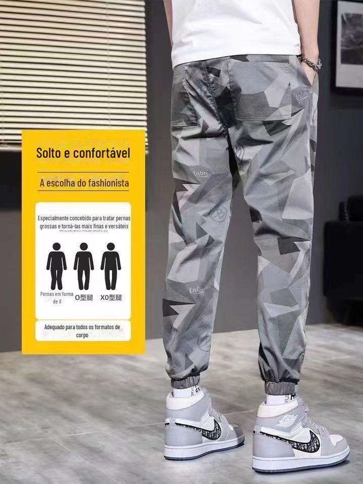 Calças masculinas verão 2023 Thin Ice Silk calças casuais soltas all-match all-match moda macacão de secagem rápida cropped calças camufladas