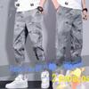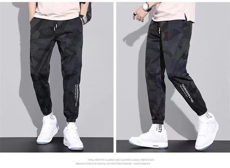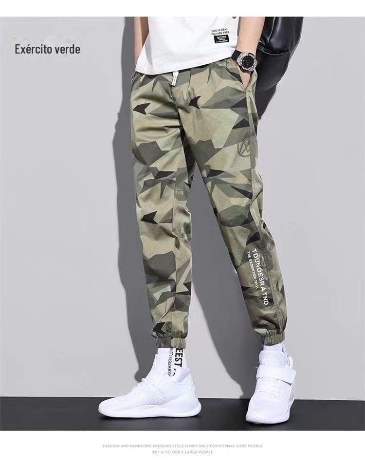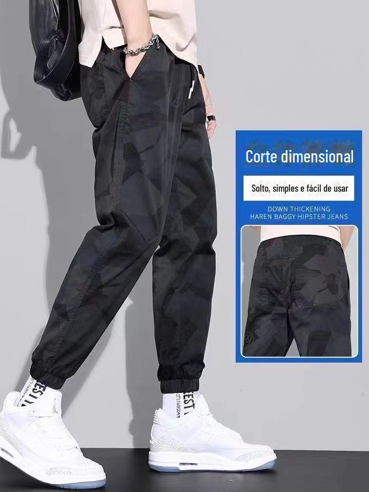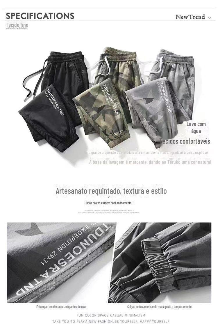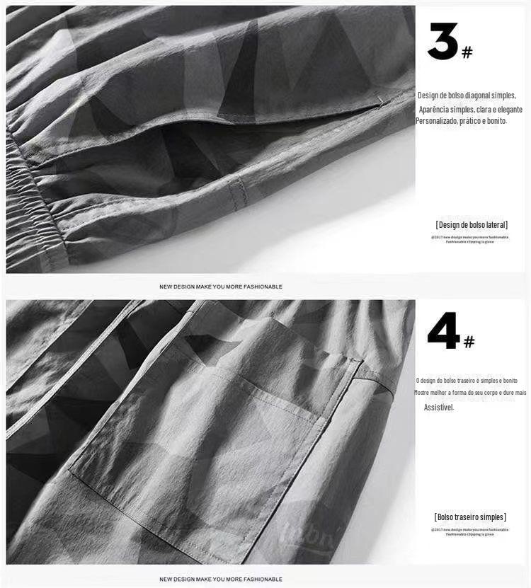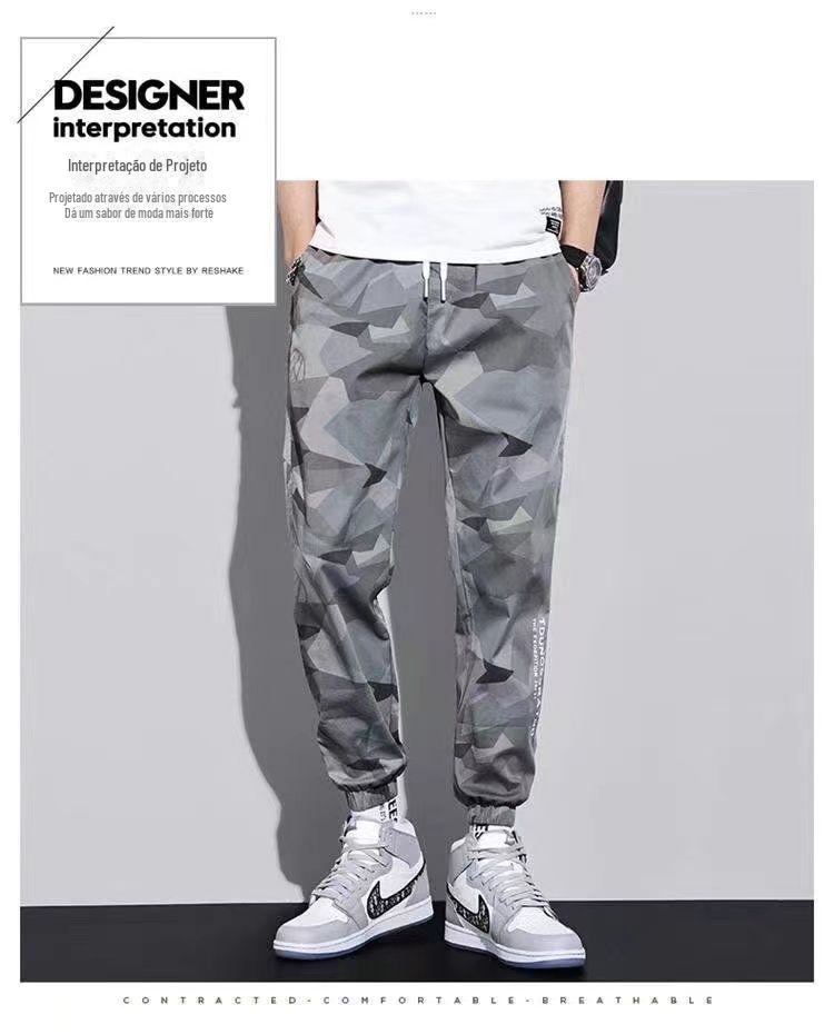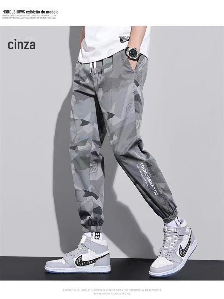 Calças masculinas verão 2023 Thin Ice Silk calças casuais soltas all-match all-match moda macacão de secagem rápida cropped calças camufladas