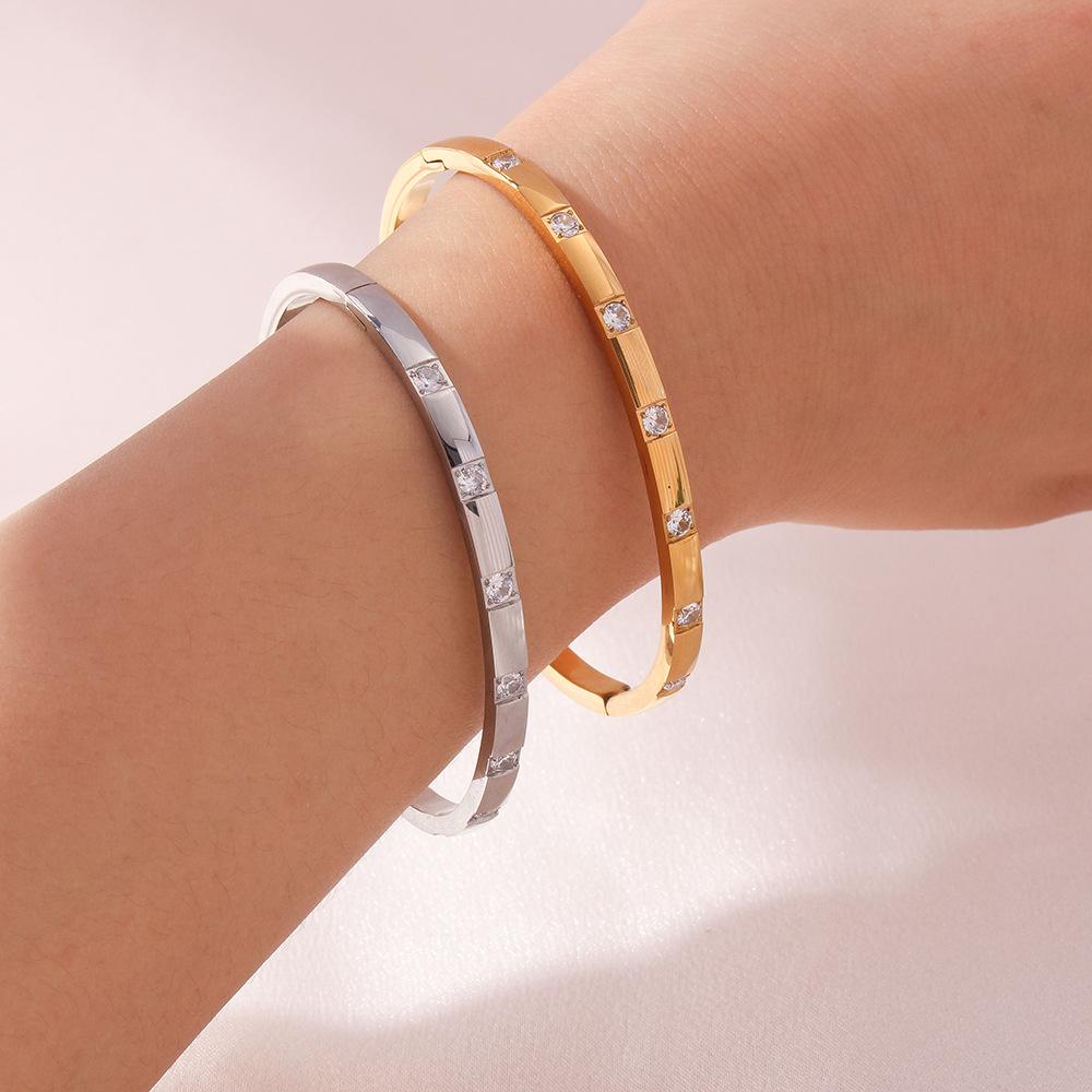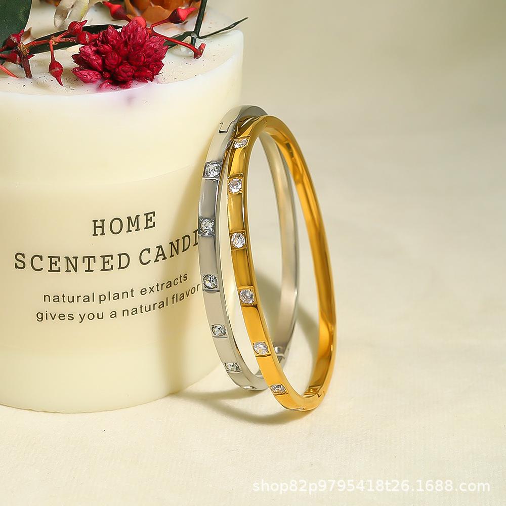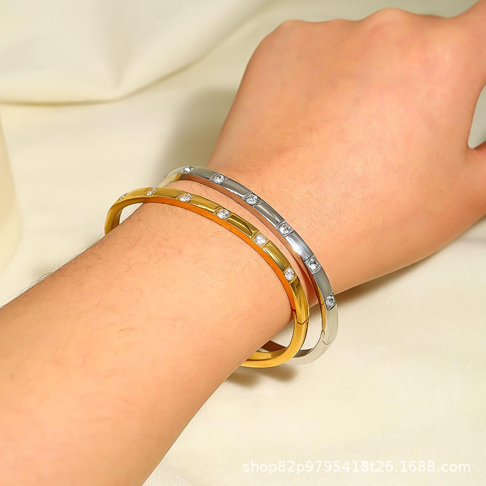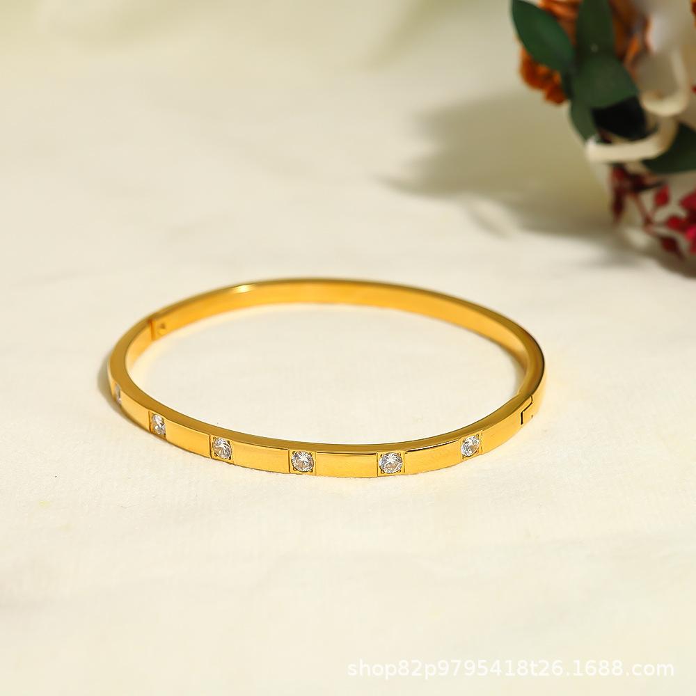 Compre Europa e Estados Unidos venda quente transfronteiriça joias pulseira fivela sete zircônias joias aço inoxidável ouro 18K simples luxo leve no atacado no Joom.pro
