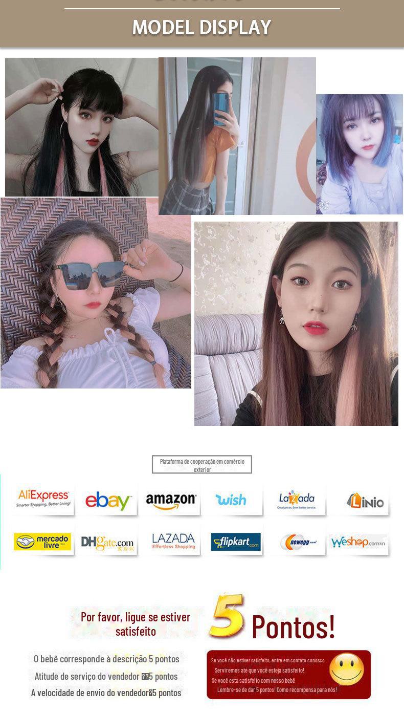 Peças de Cabelo, Extensões de Cabelo Tingidas Penduradas na Orelha, Mechas de Cor, Seda Fosca de Alta Temperatura, Permeáveis, Extensões de Cabelo Longo Liso com Um Clipe, Perucas Entregues pela Fábrica
