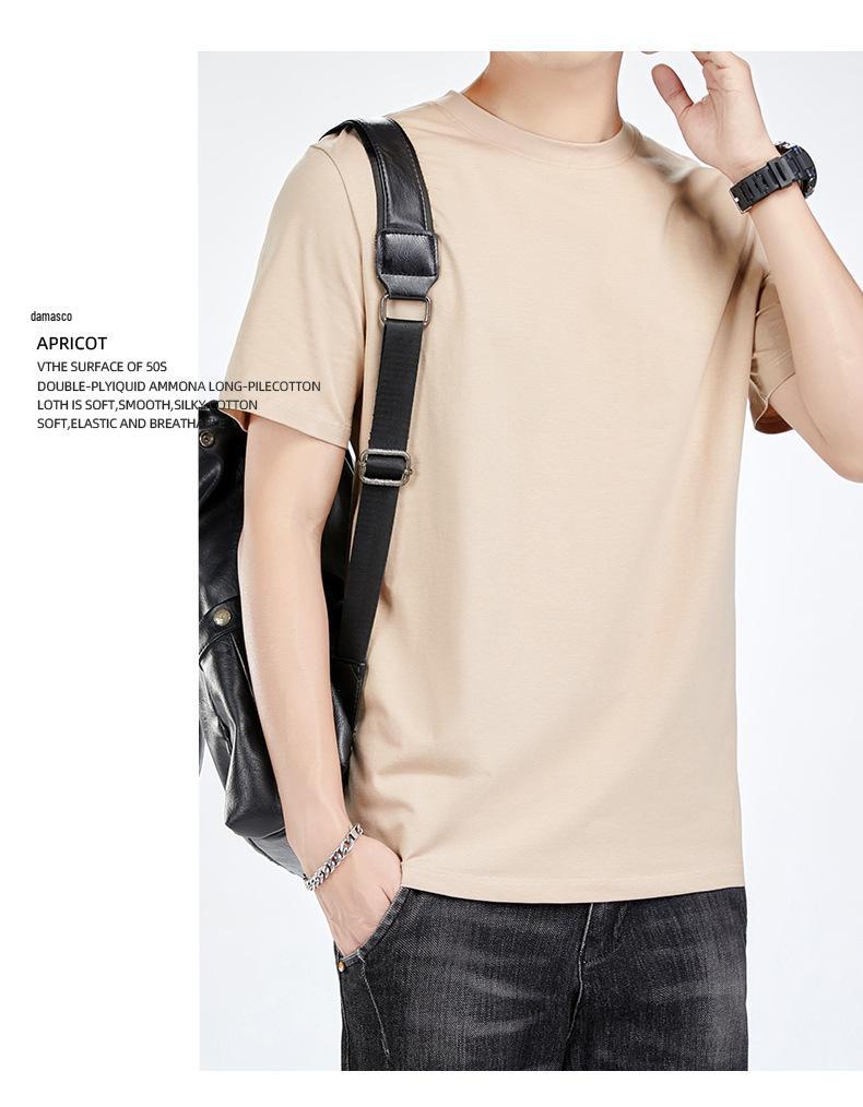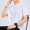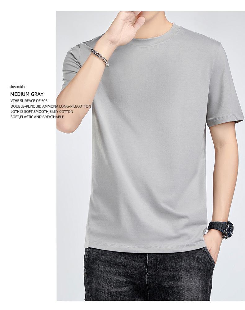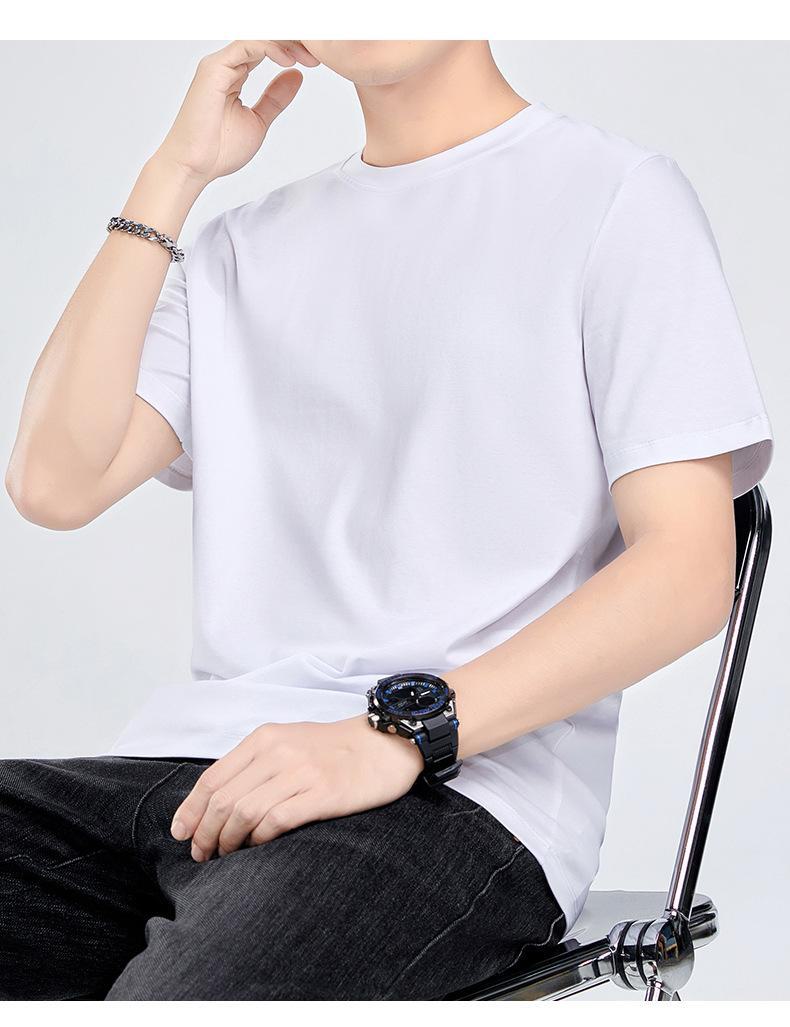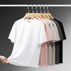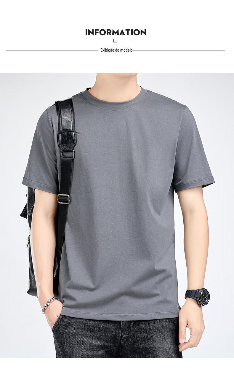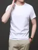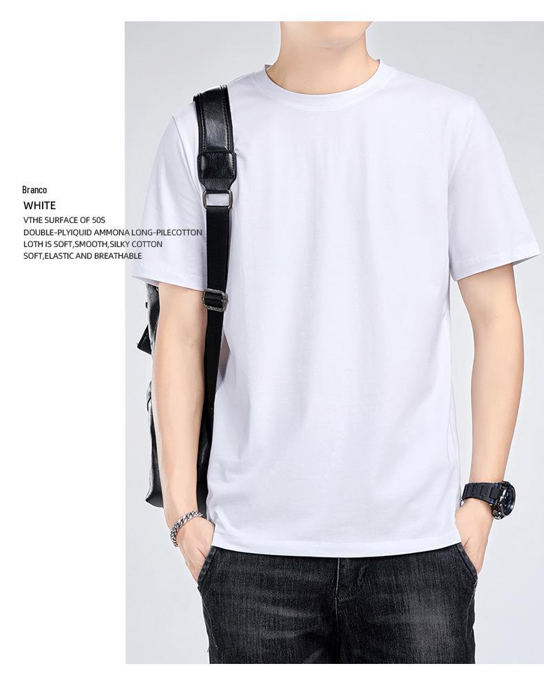 Camiseta de manga curta de algodão mercerizado e seda gelada para homens, verão, gola redonda, material fino e sedoso, cor pura, casual, branca, camiseta para homens