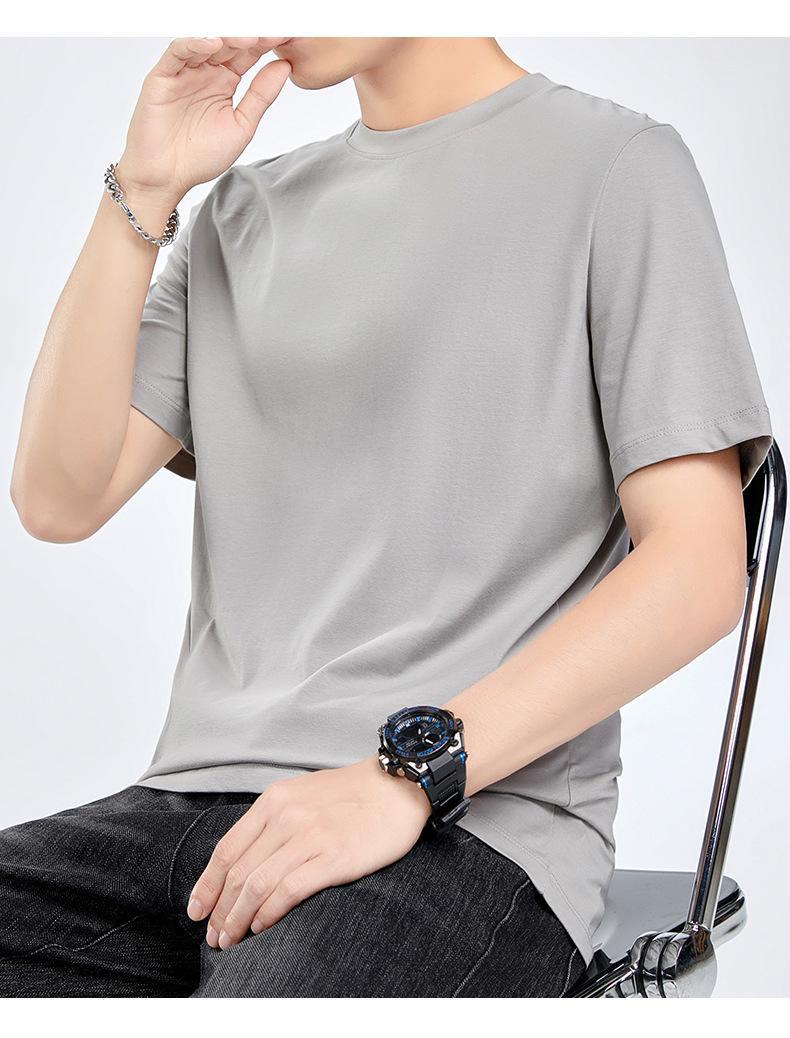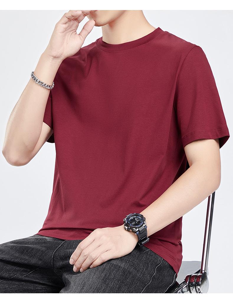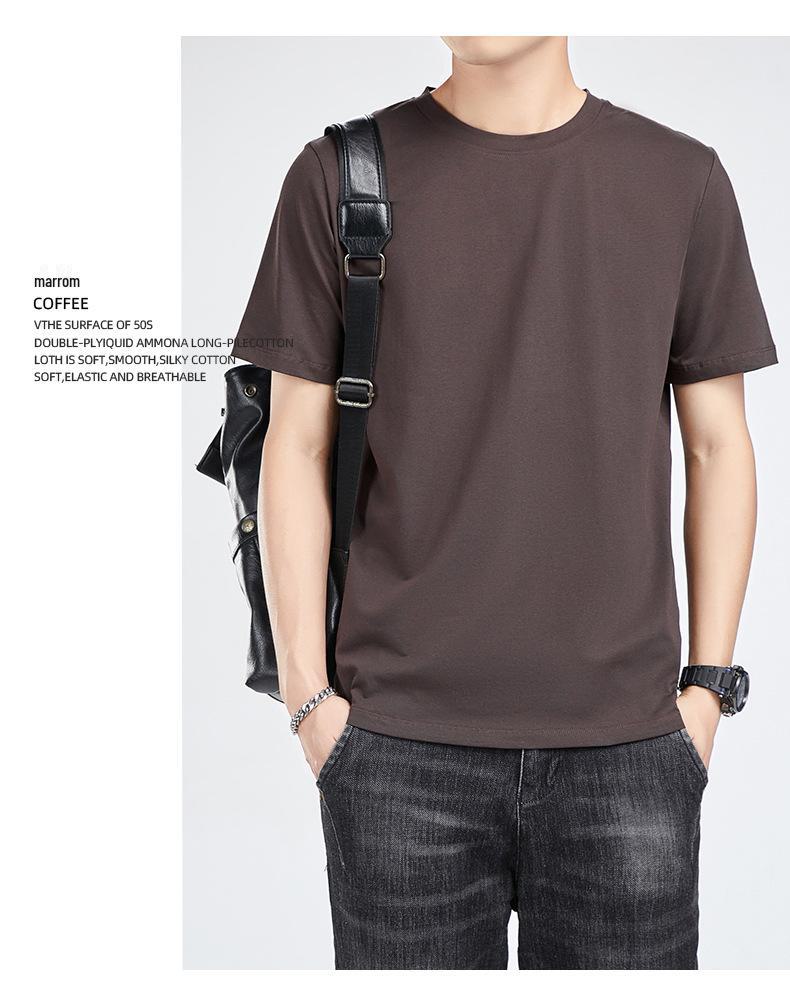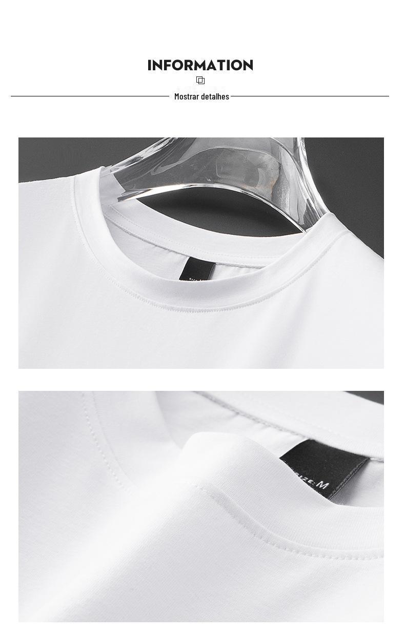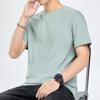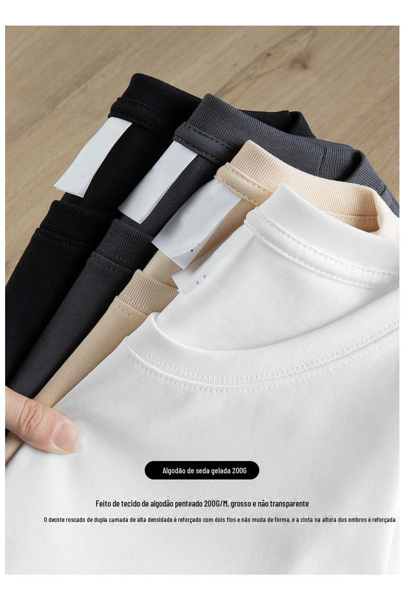 Camiseta de manga curta de algodão mercerizado e seda gelada para homens, verão, gola redonda, material fino e sedoso, cor pura, casual, branca, camiseta para homens