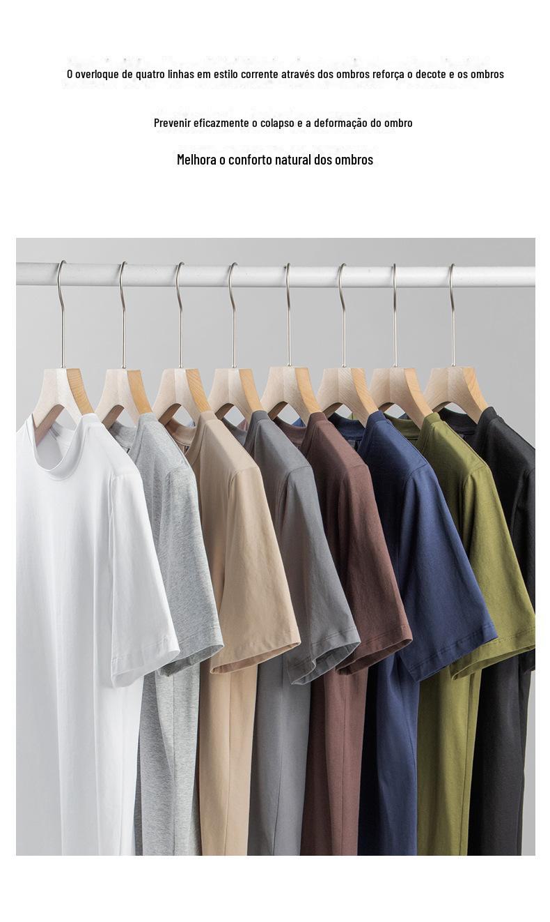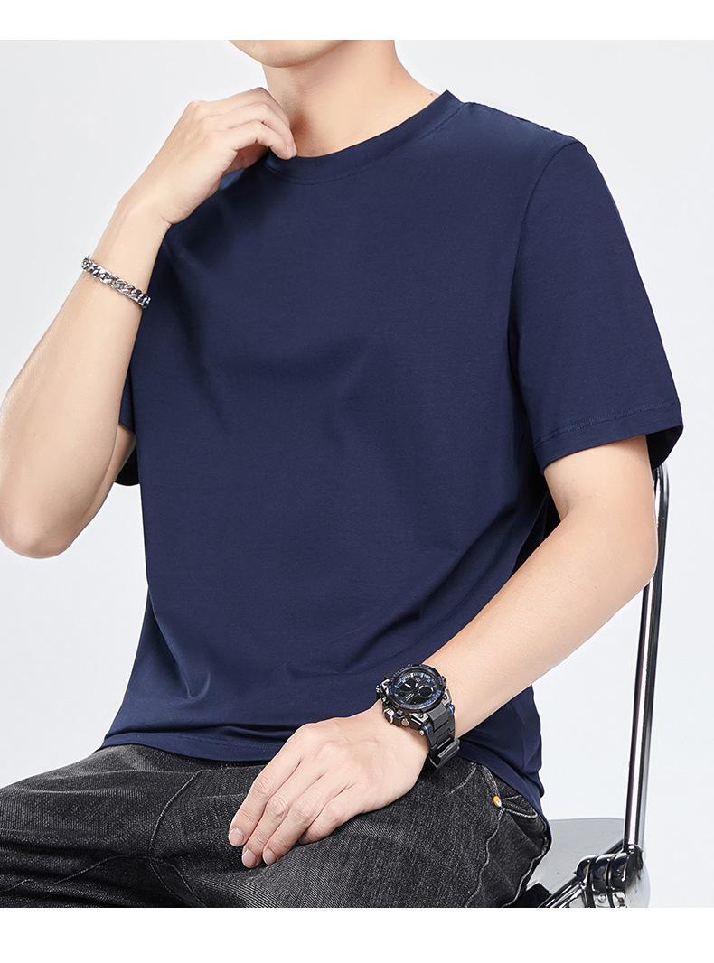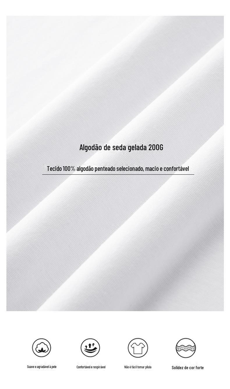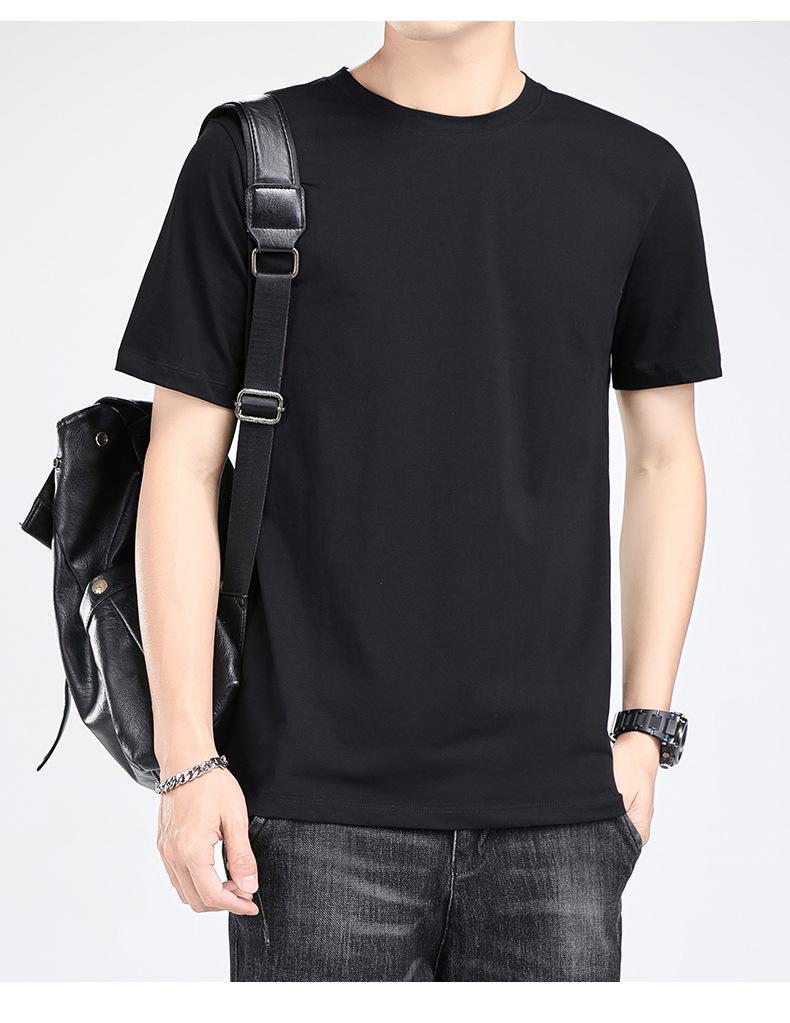 Camiseta de manga curta de algodão mercerizado e seda gelada para homens, verão, gola redonda, material fino e sedoso, cor pura, casual, branca, camiseta para homens