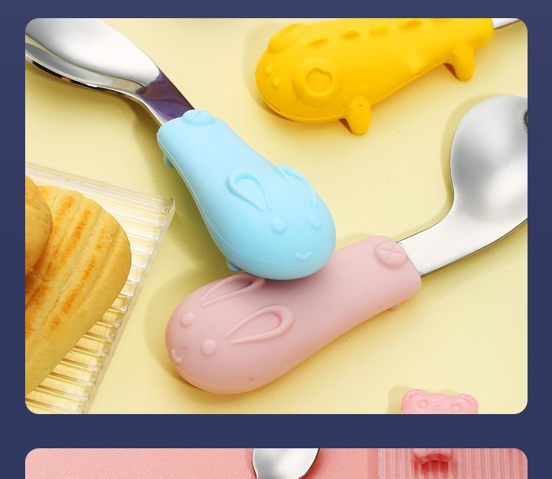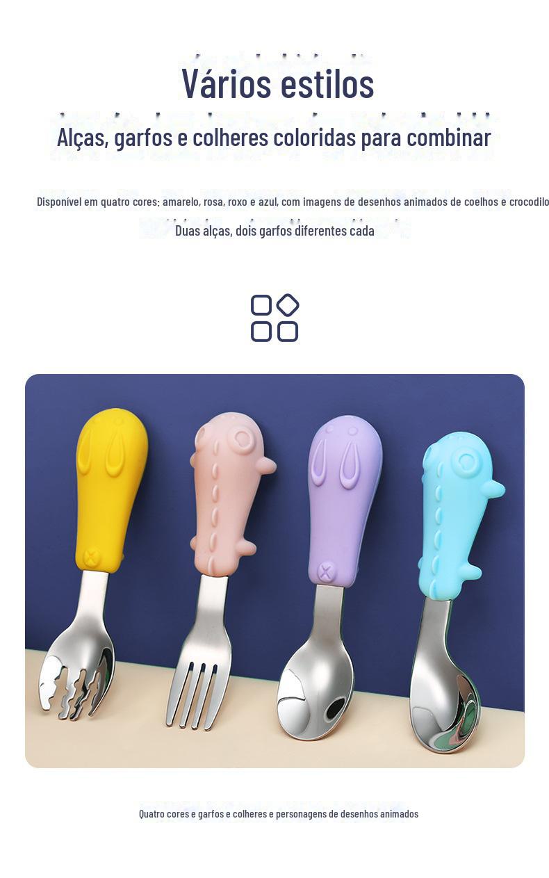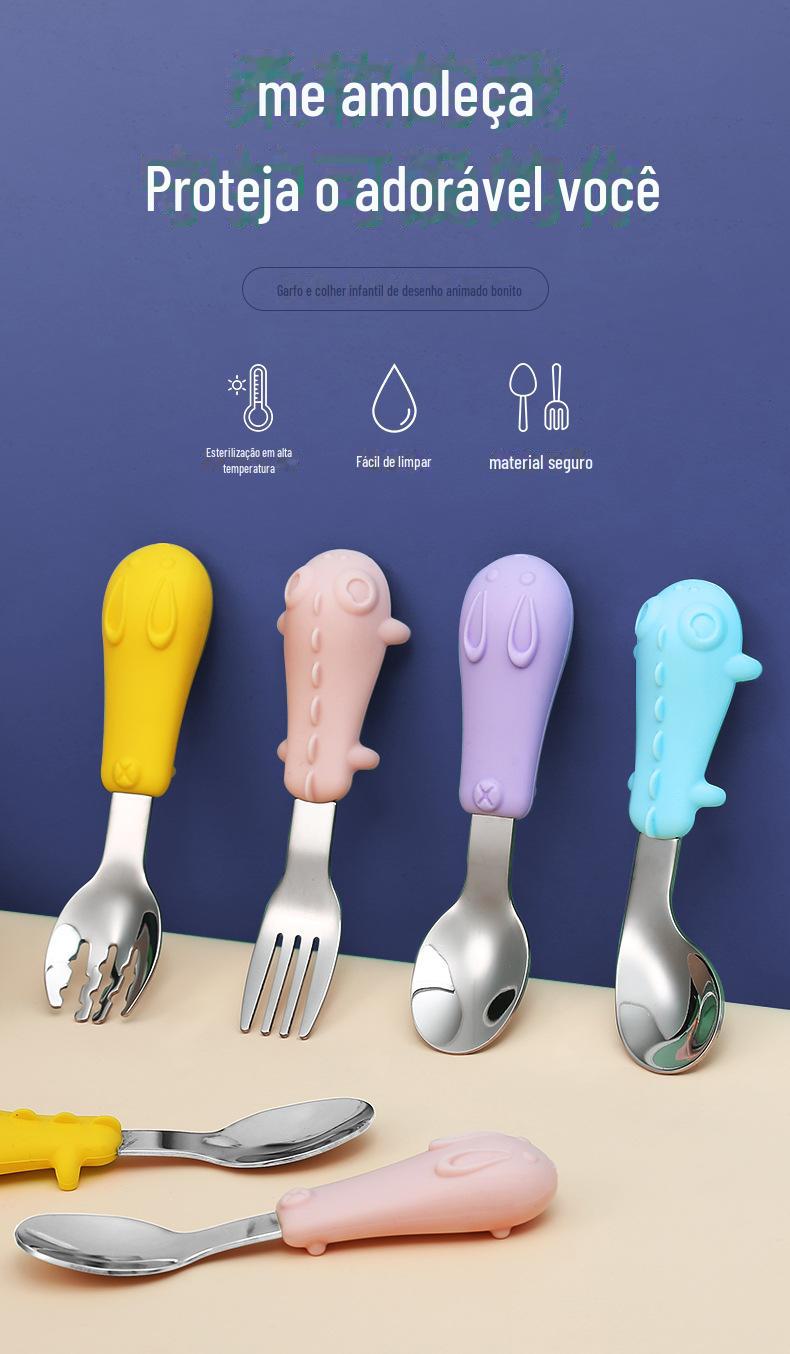 Acessórios de hardware: colher reta, colher curva, garfo reto, garfo curvo.Forma de silicone: coelho, dinossauro opcional.