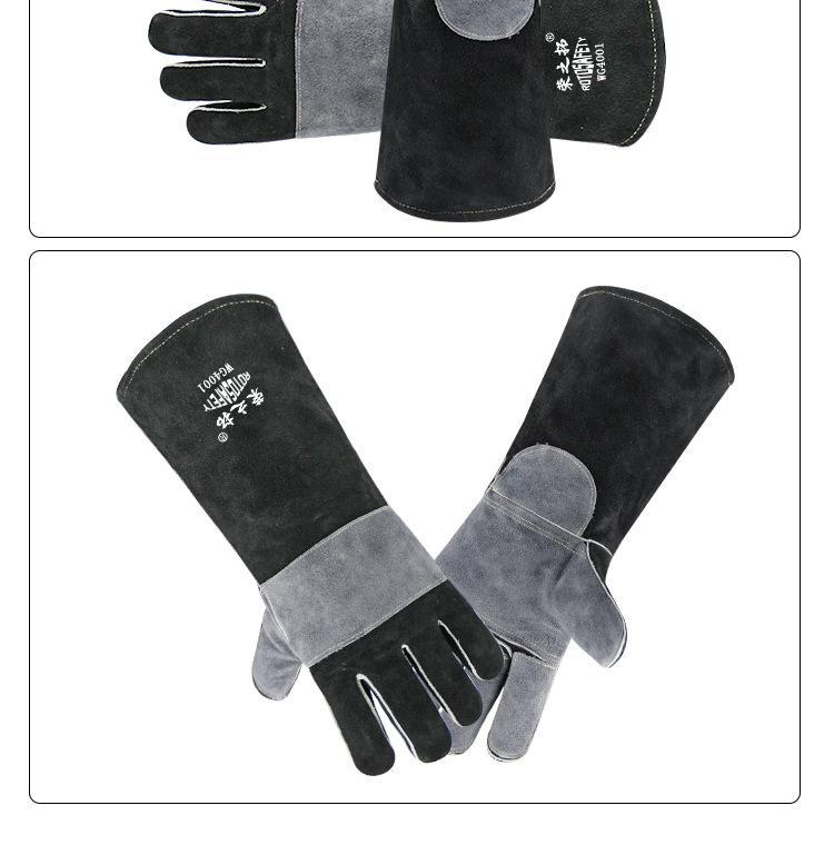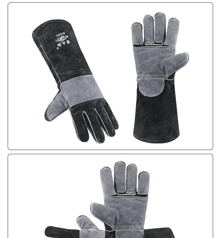16-inch long black Gato cow two-layer leather gloves, 16-inch cowhide reinforced gloves, 16-inch genuine leath...
