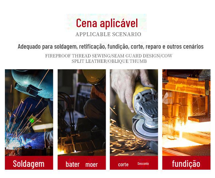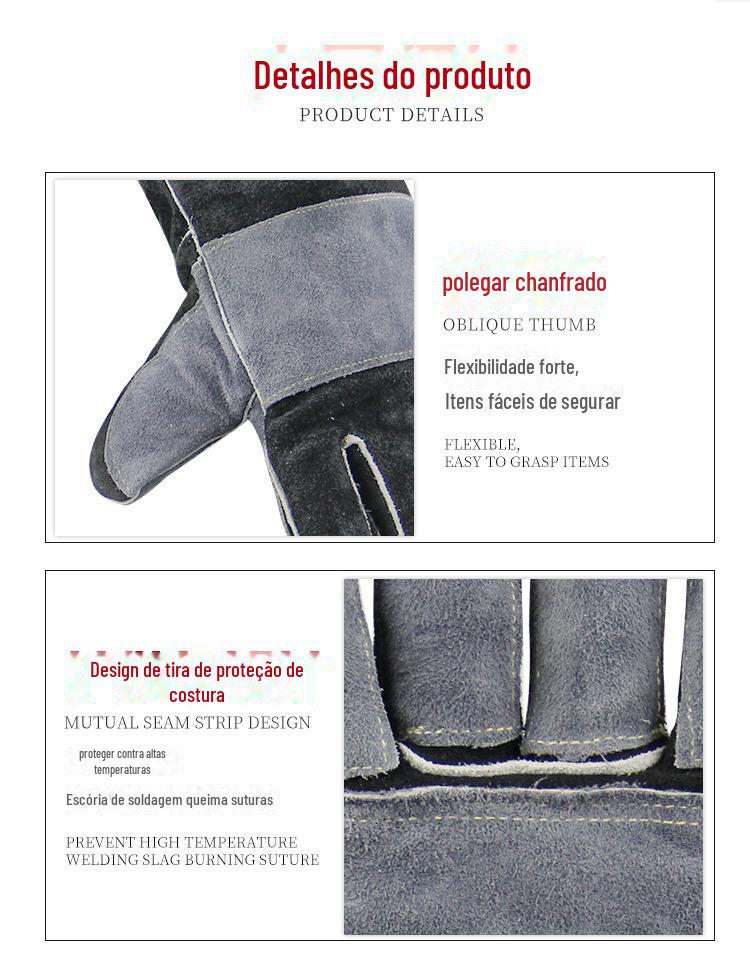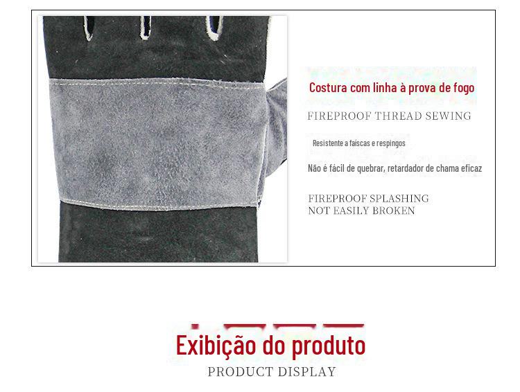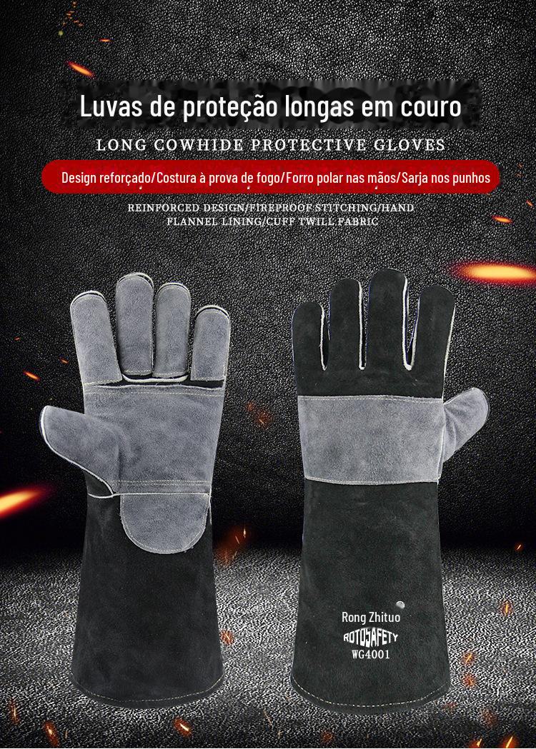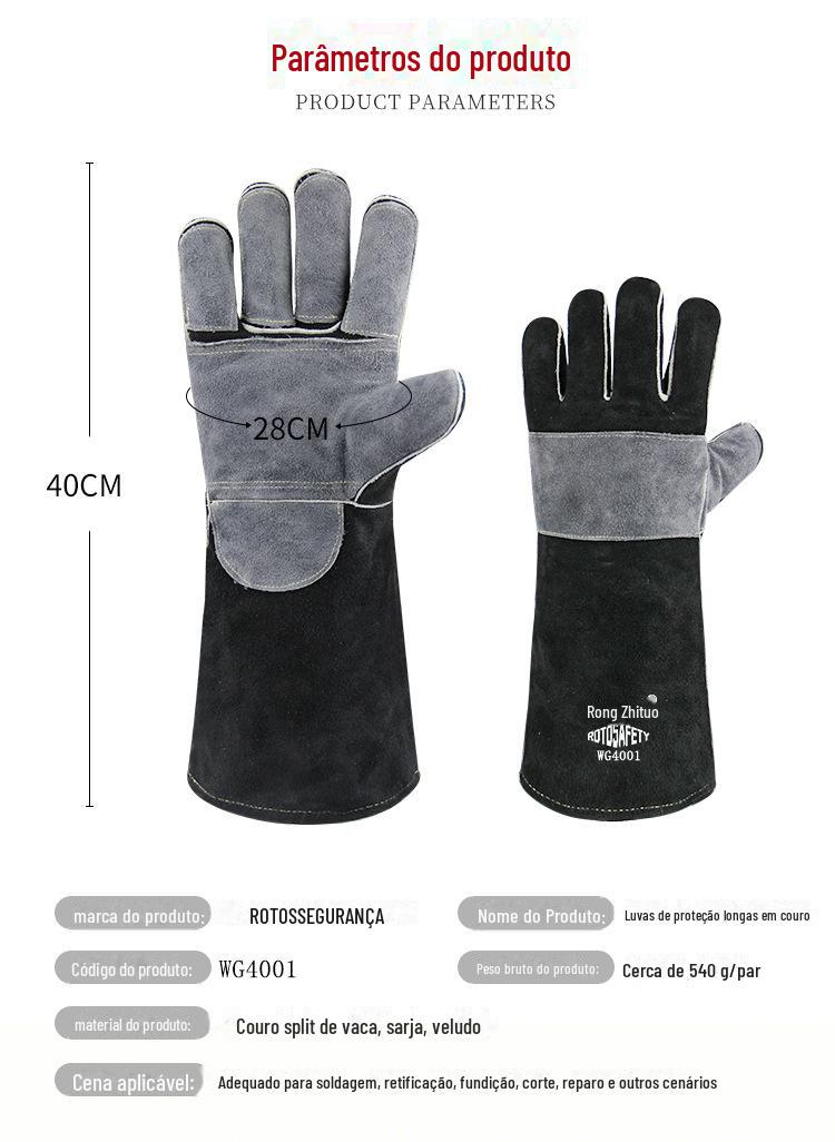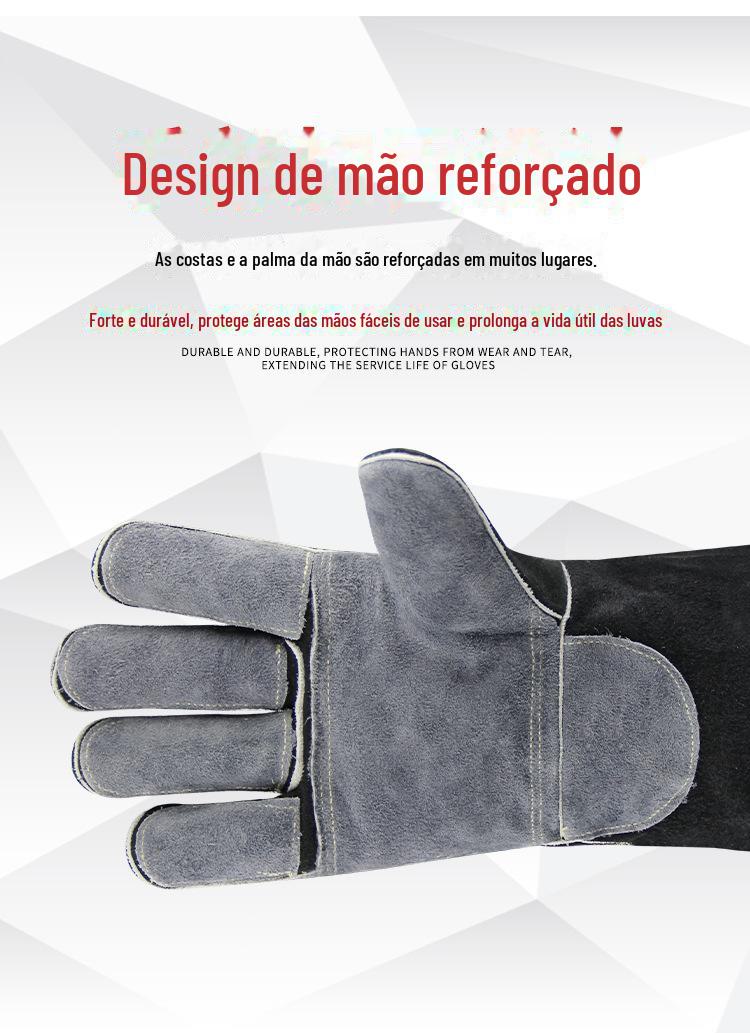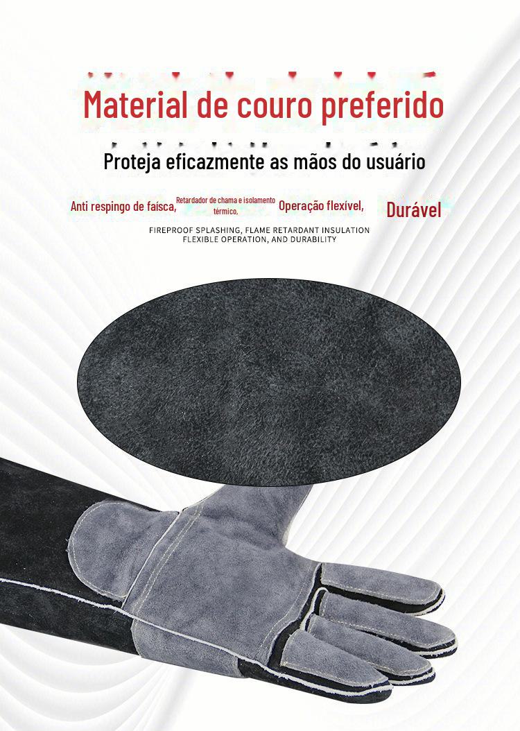 Luvas de soldador de couro de vaca de 16 polegadas de comprimento, fio à prova de fogo, couro macio, camada dupla, espessadas, absorventes de suor, resistentes ao desgaste, luvas de soldagem