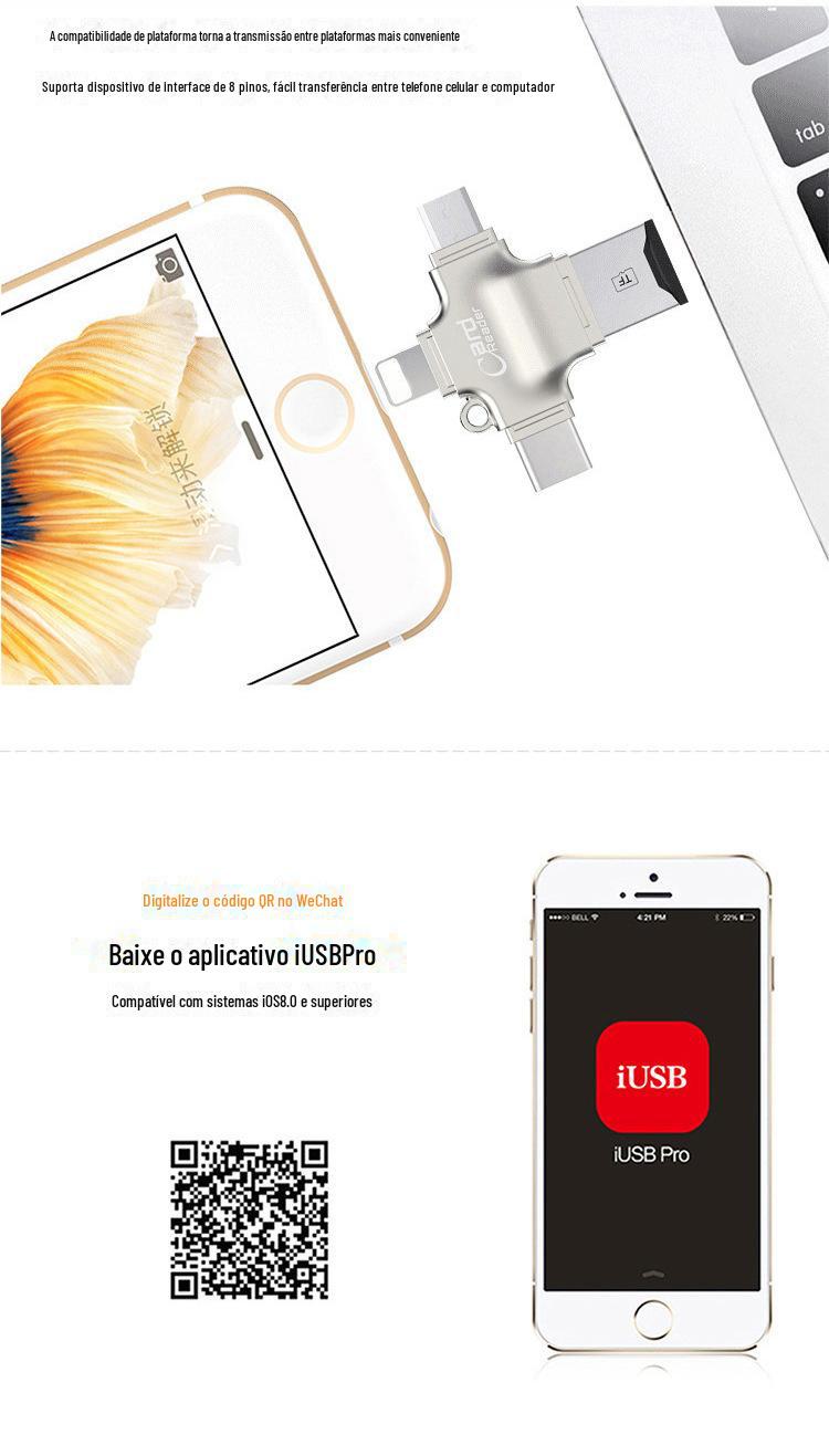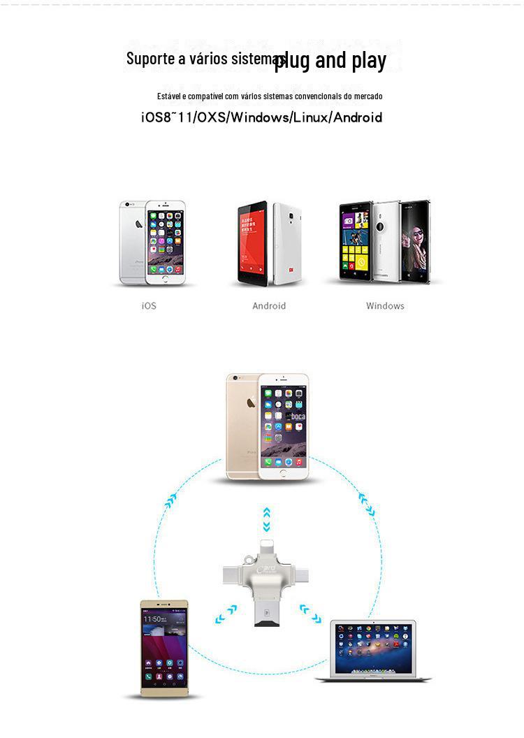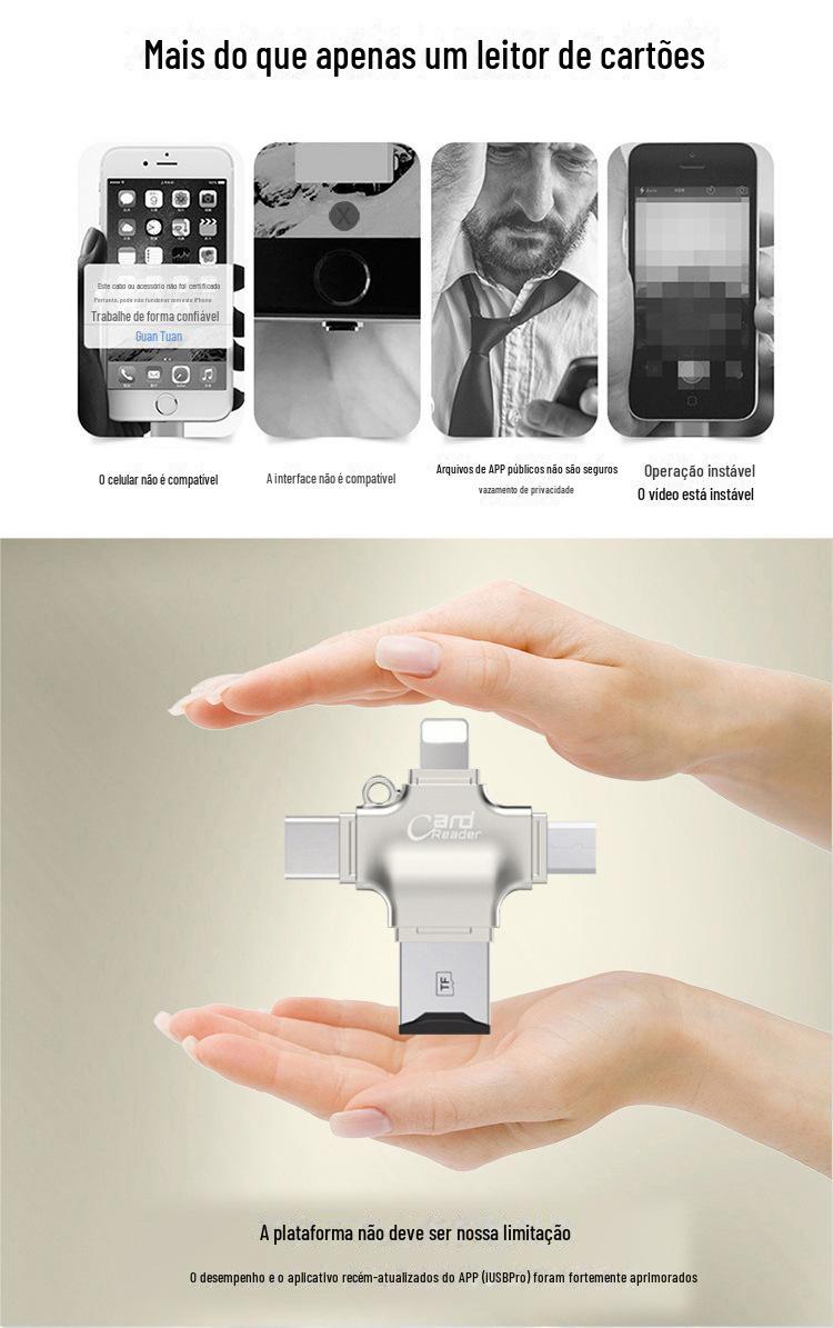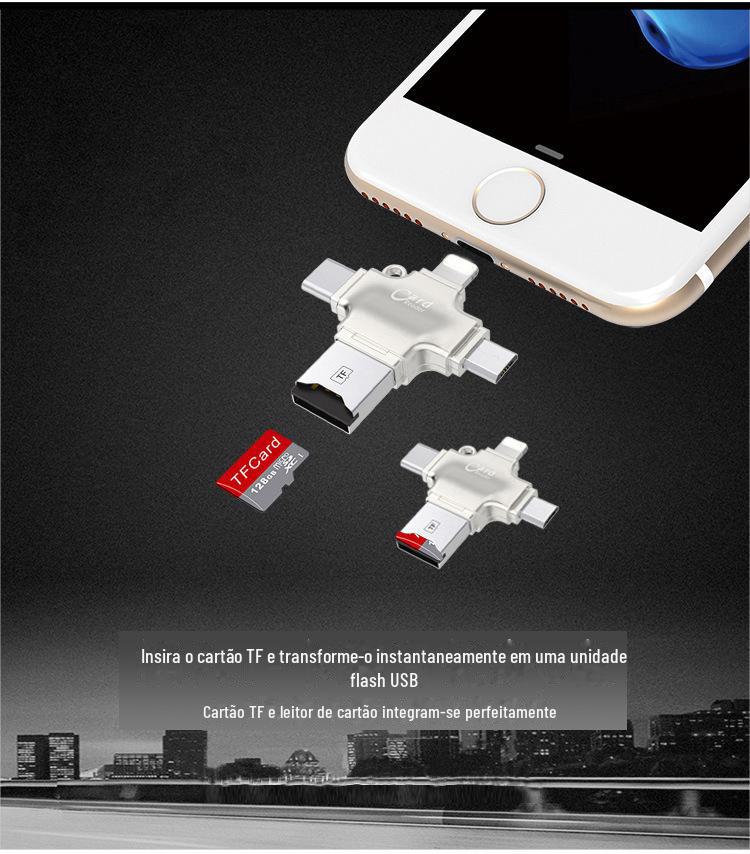 Leitor de cartão de celular multifuncional quatro em um USB Android expansão de memória de celular TF cartão U disco externo vendas diretas da fábrica