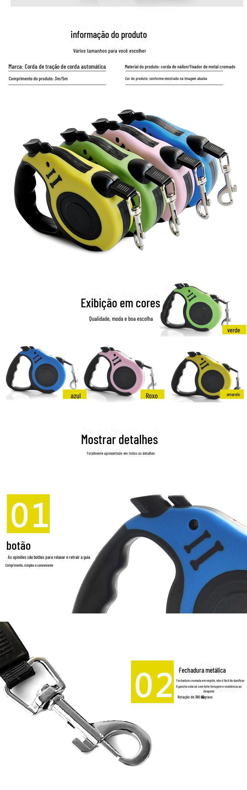 Guia de Nylon para Cães Guia Retrátil para Cães Moda Passeio com Cães Retrátil Automático Gato Animal de Estimação Universal Passeio com Cães Atacado