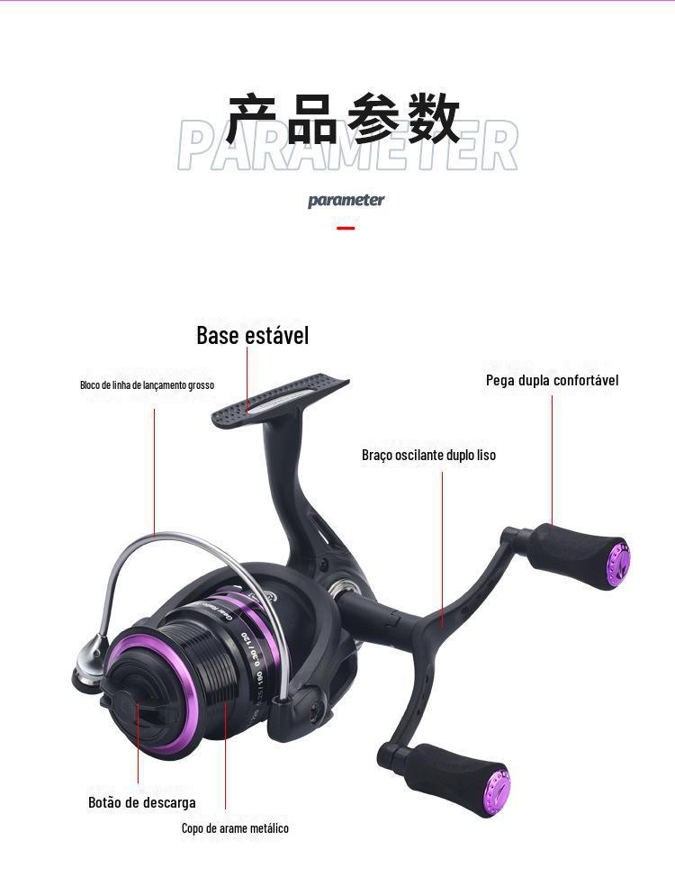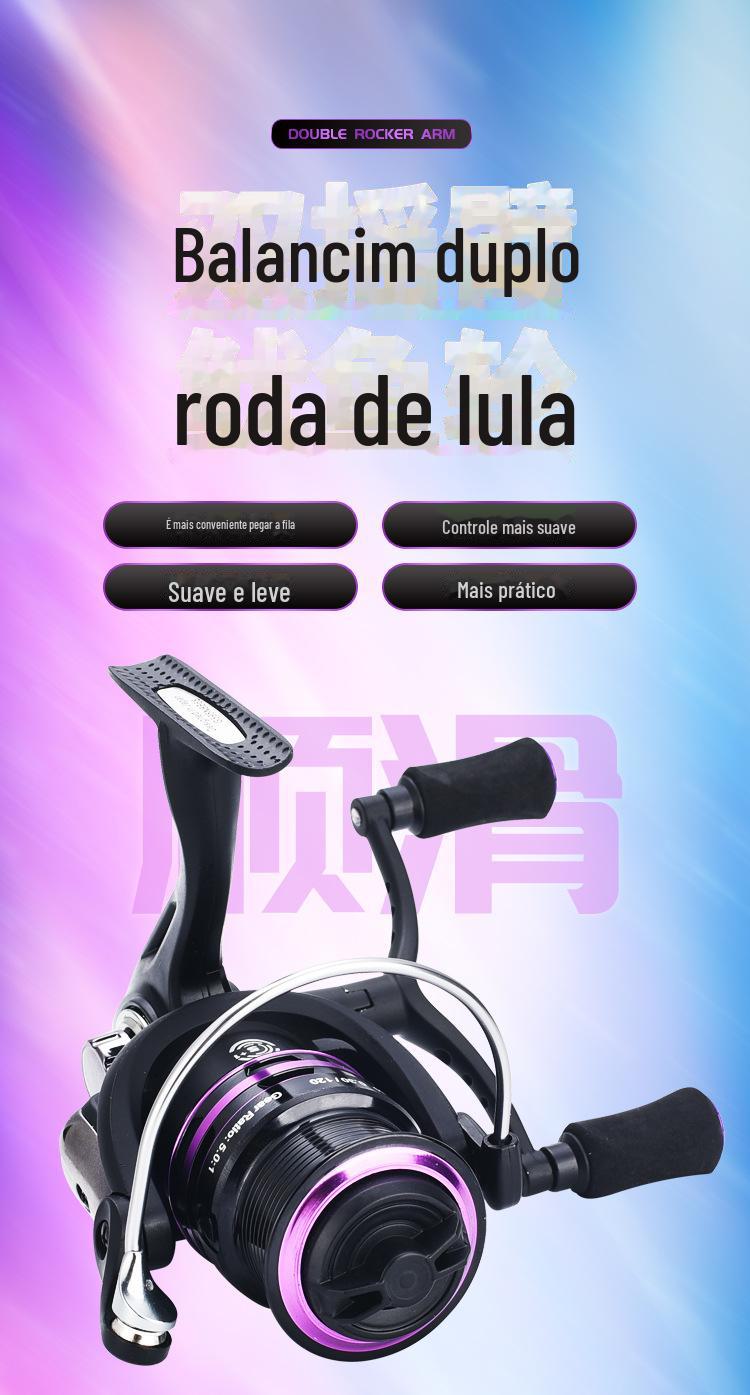 Carretel de Spinning Kemeilong com Braço Duplo, Carretel Raso, Carretel de Pesca sem Folga, Carretel de Micro Pesca, Carretel de Arremesso Longo
