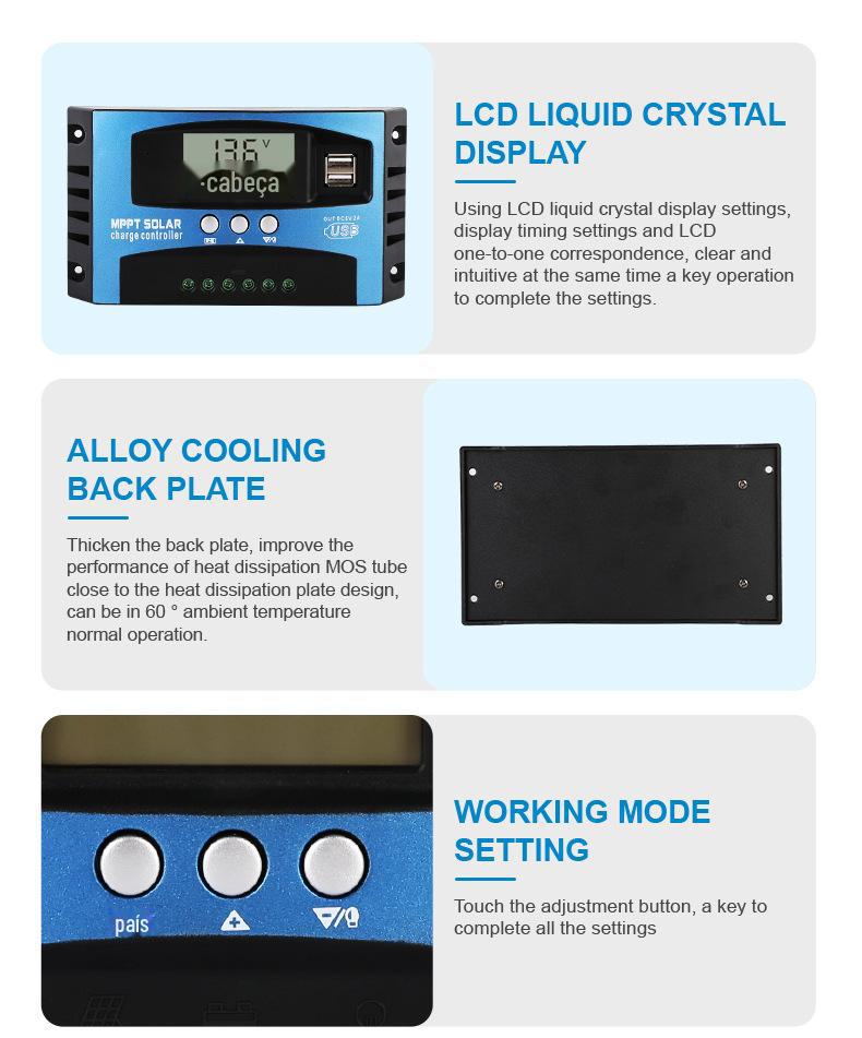 Este é um controlador solar MPPT muito prático, que é pequeno e leve, e pode usar baterias AGM de chumbo-ácido, gel, seladas, inundadas de 12V e 24V. Ele pode atender totalmente às suas necessidades de sistemas fotovoltaicos domésticos (incluindo sistemas de iluminação doméstica)