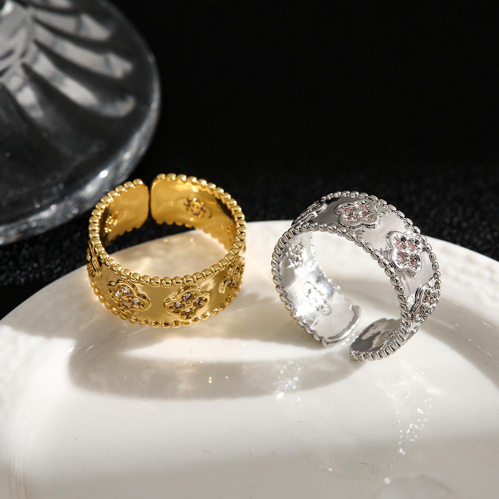 Europeu e americano cross-border luz de luxo Clover caleidoscópio anel feminino micro diamante-embutido moda clássico casal joias anel aberto