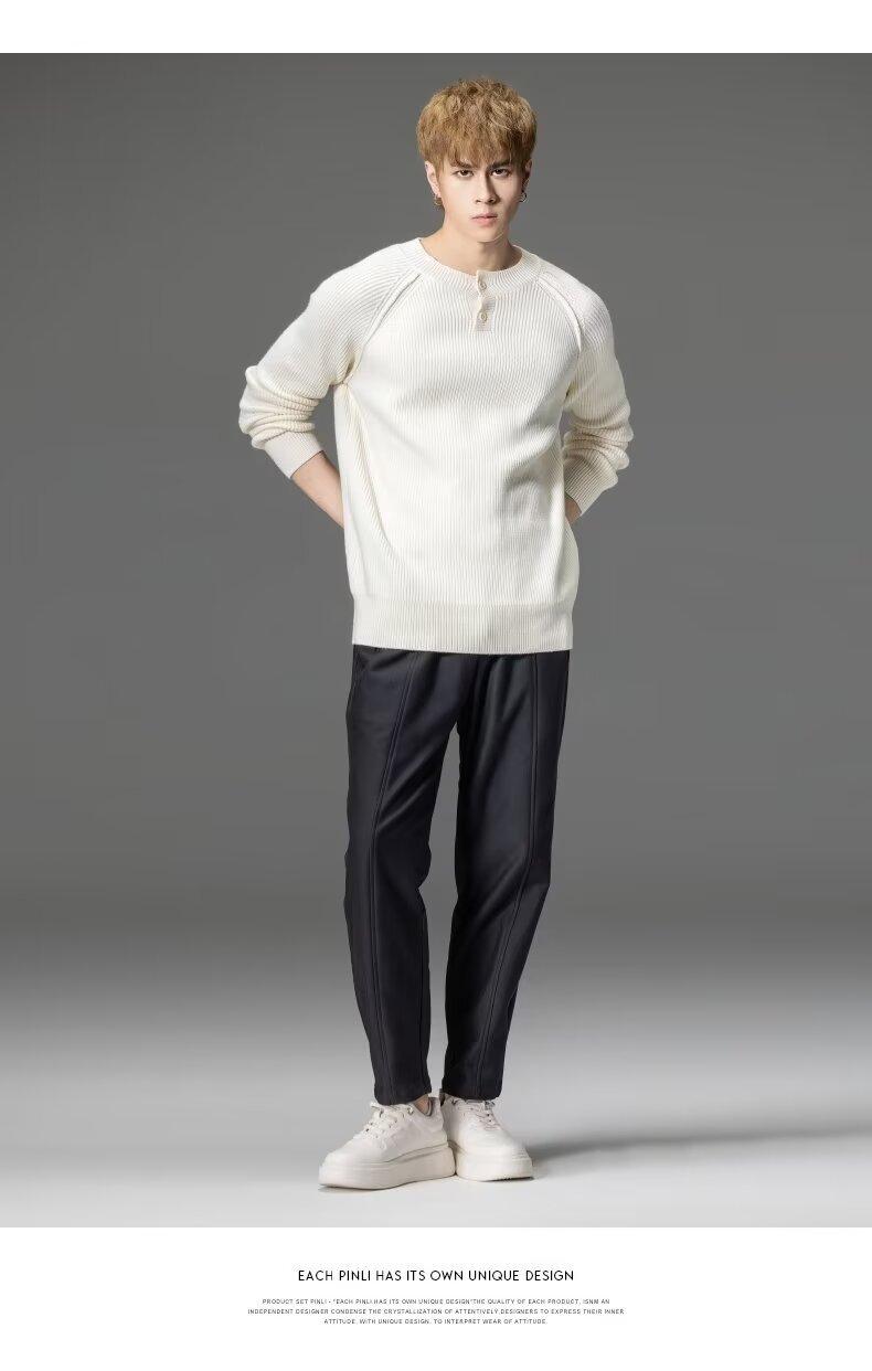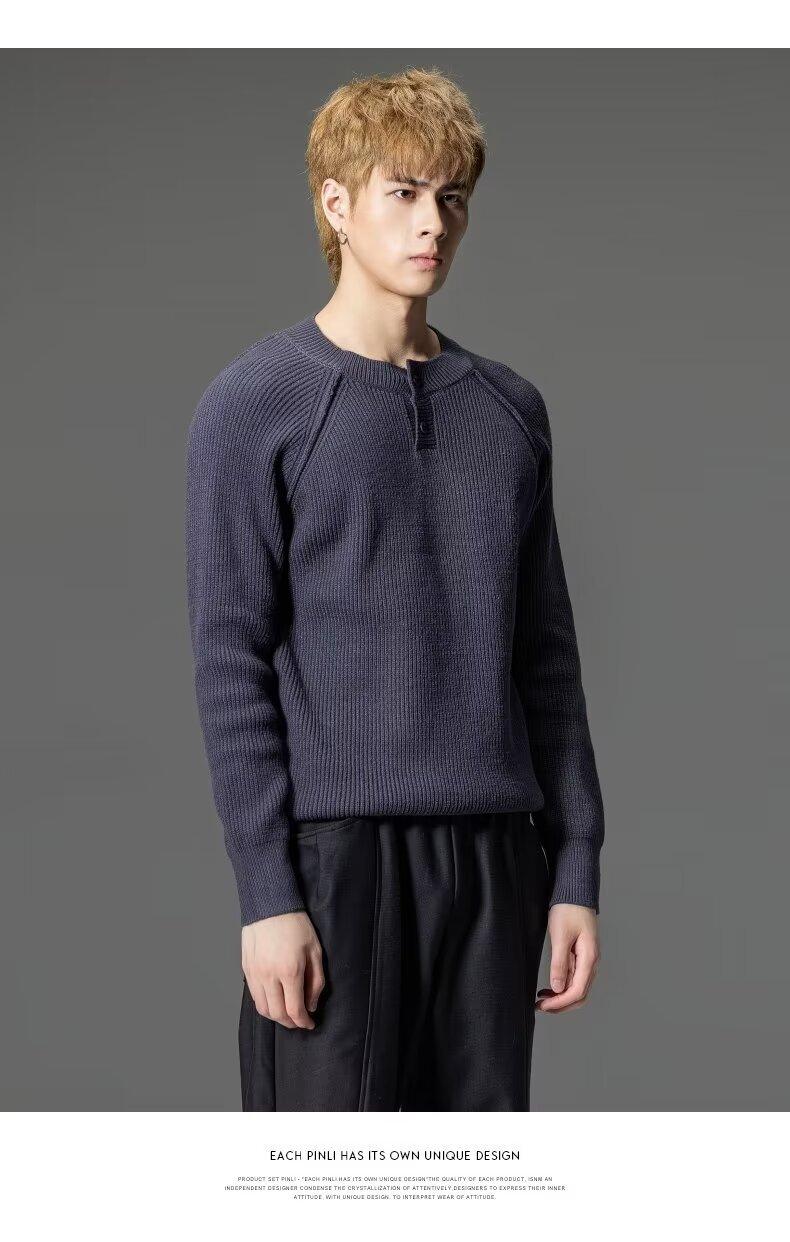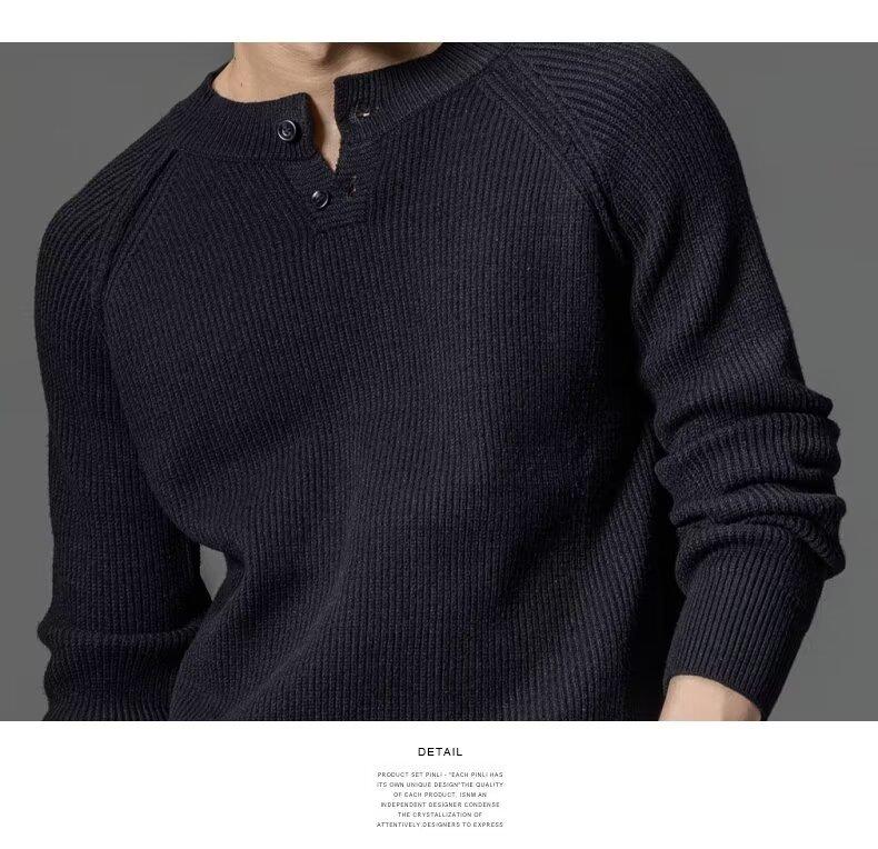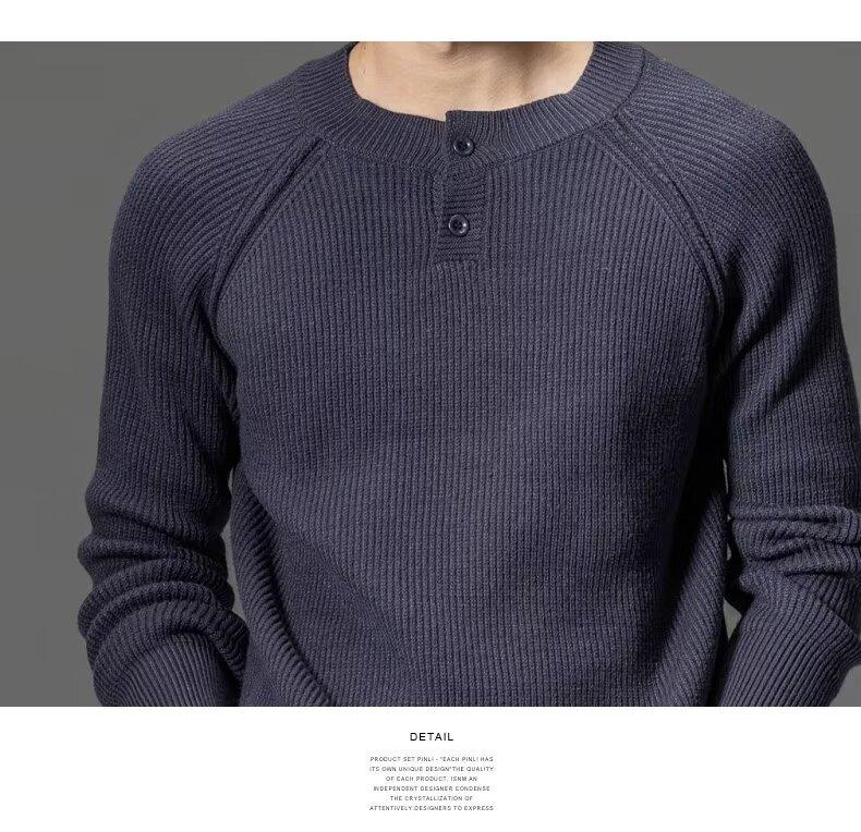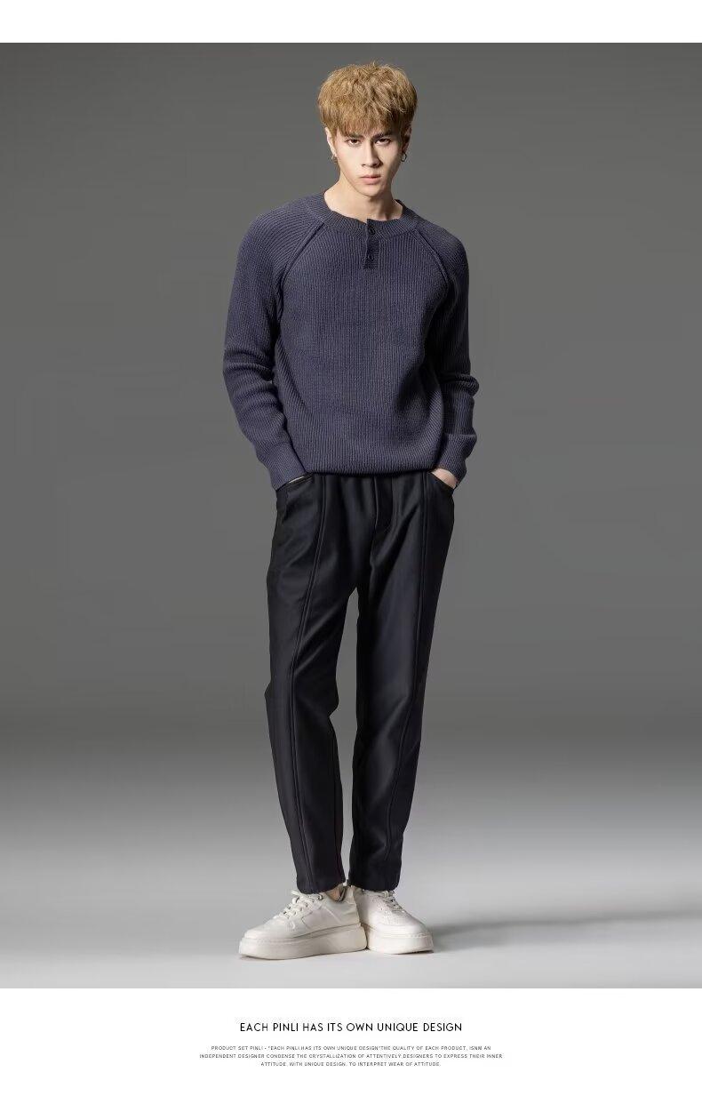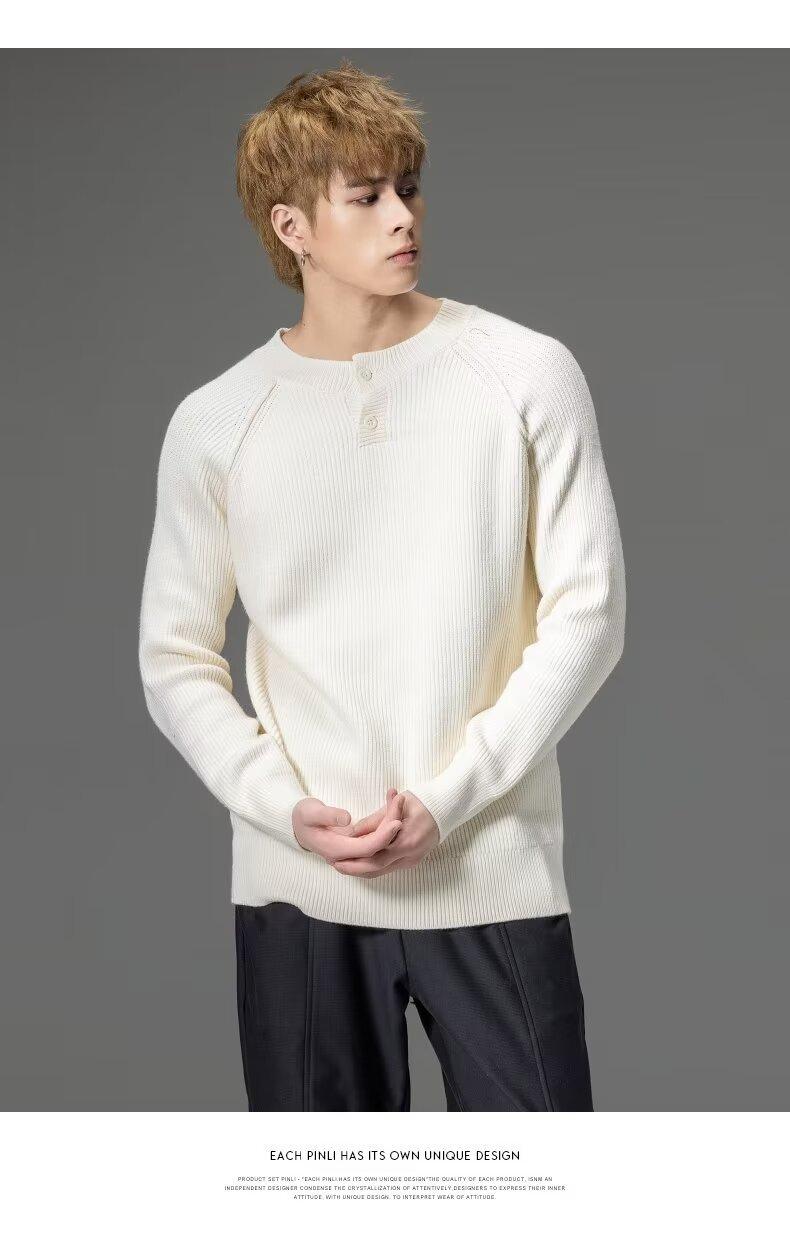 Outono e inverno quente estilo coreano cor sólida casual suéter grosso homens pullover jacquard gola listra fina inferior suéter homens