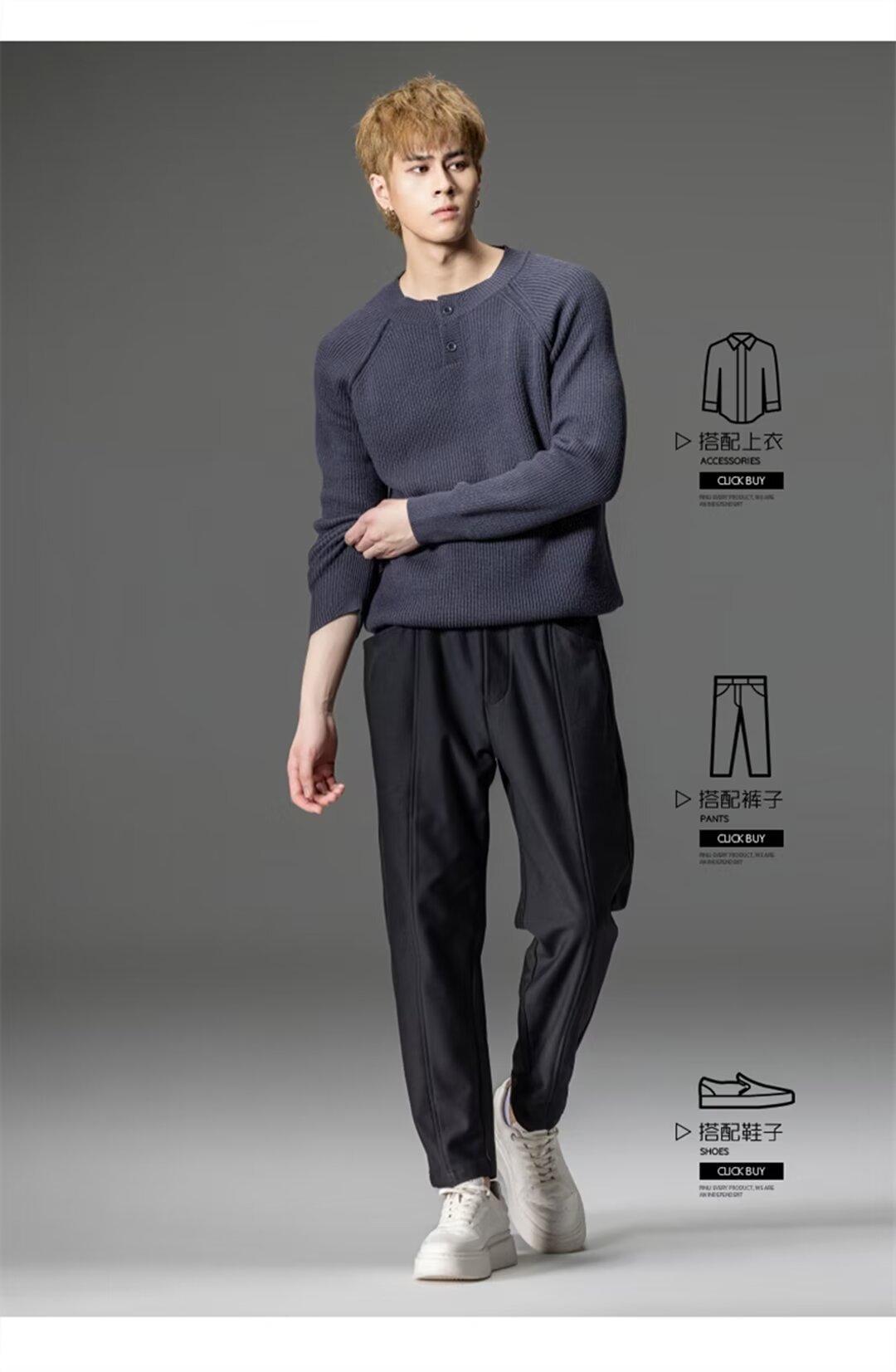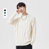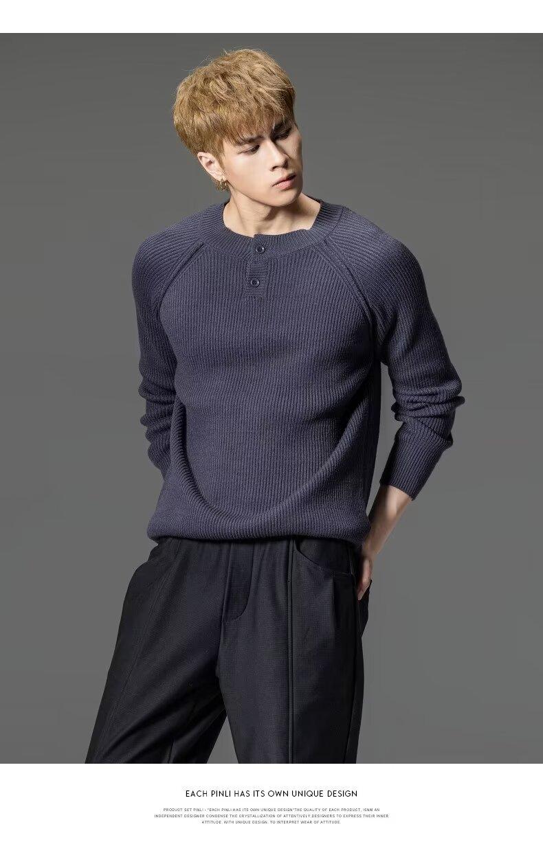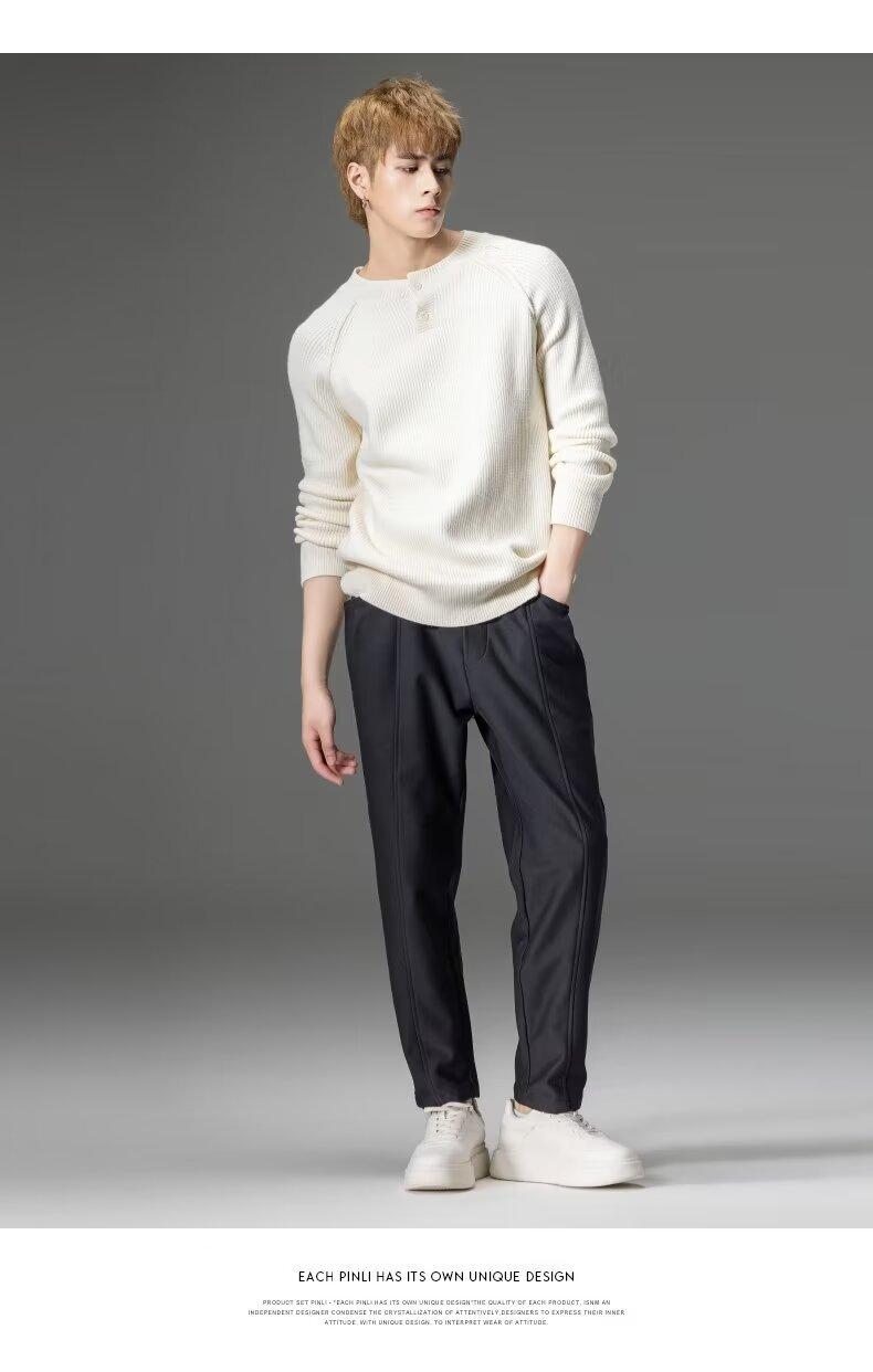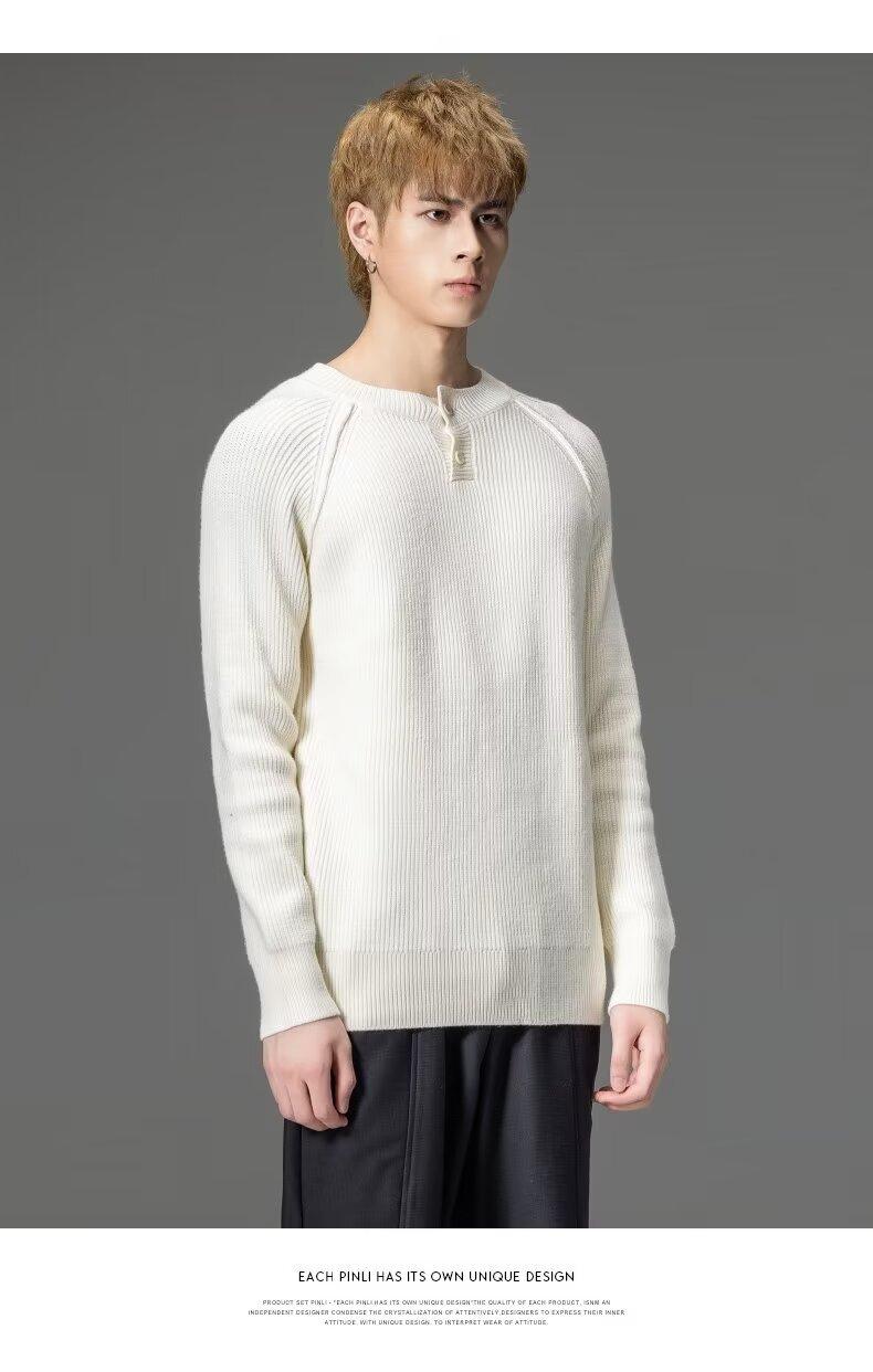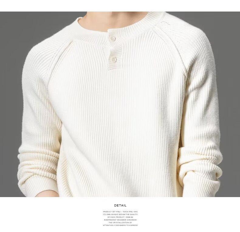 Outono e inverno quente estilo coreano cor sólida casual suéter grosso homens pullover jacquard gola listra fina inferior suéter homens