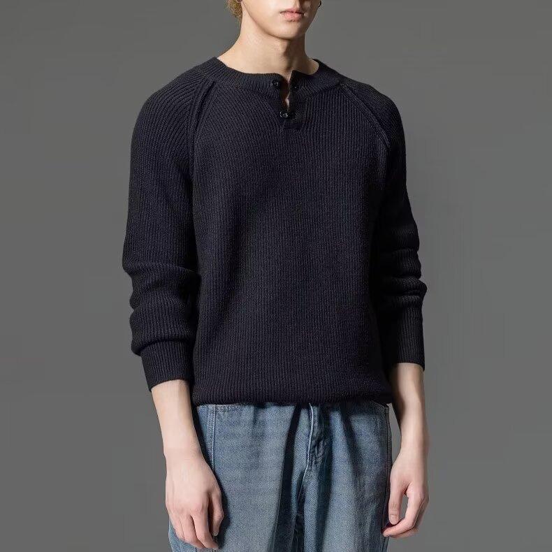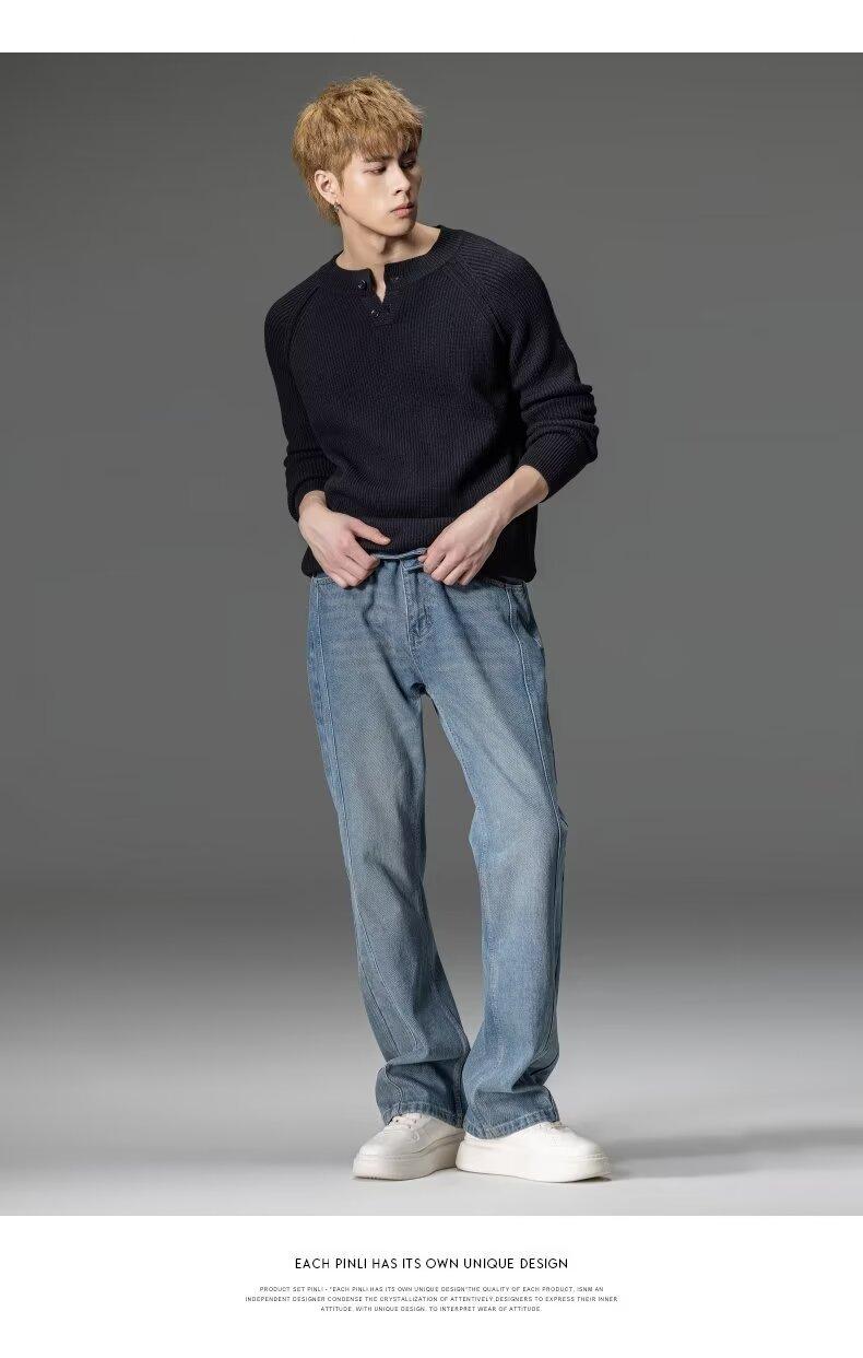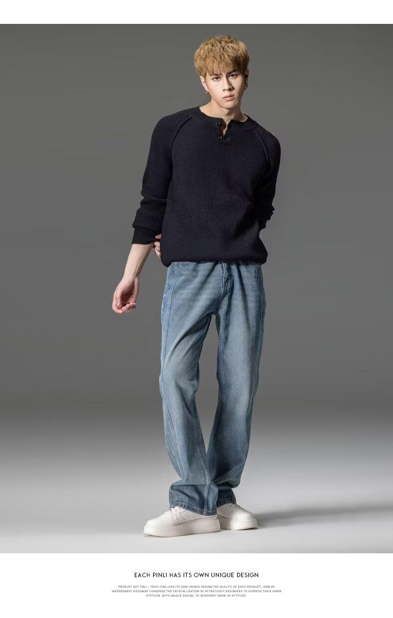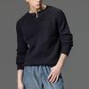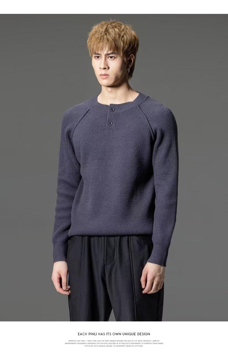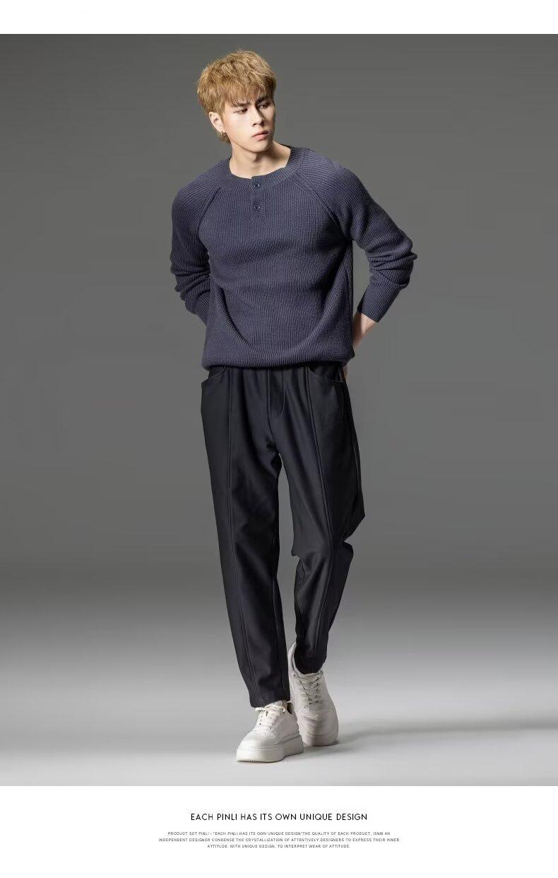 Outono e inverno quente estilo coreano cor sólida casual suéter grosso homens pullover jacquard gola listra fina inferior suéter homens