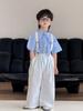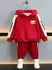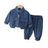Roupas infantis de outono de 2023 no novo conjunto de duas peças de manga comprida para meninos, estilo jeans, maré primavera e outono, uma geração de cabelos