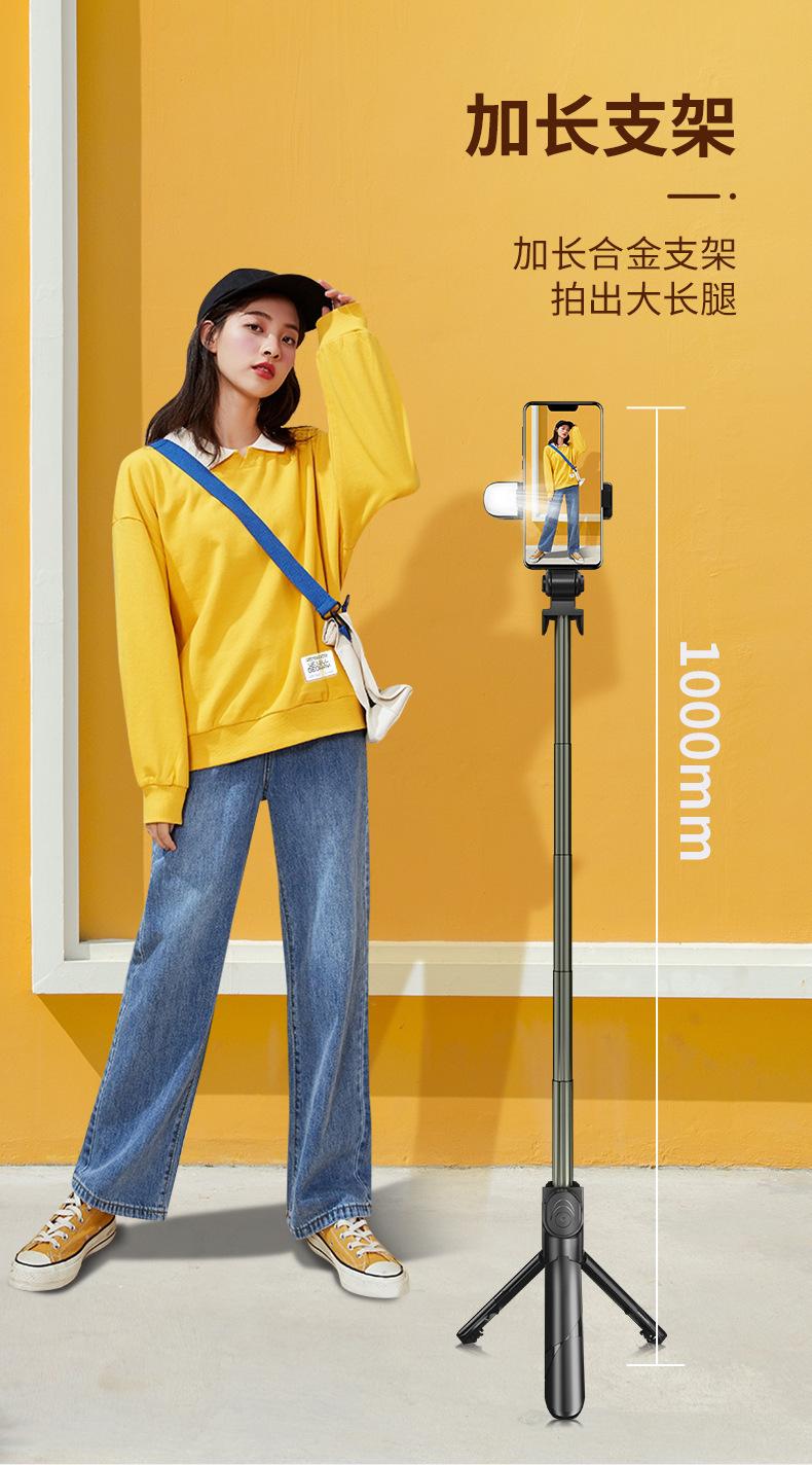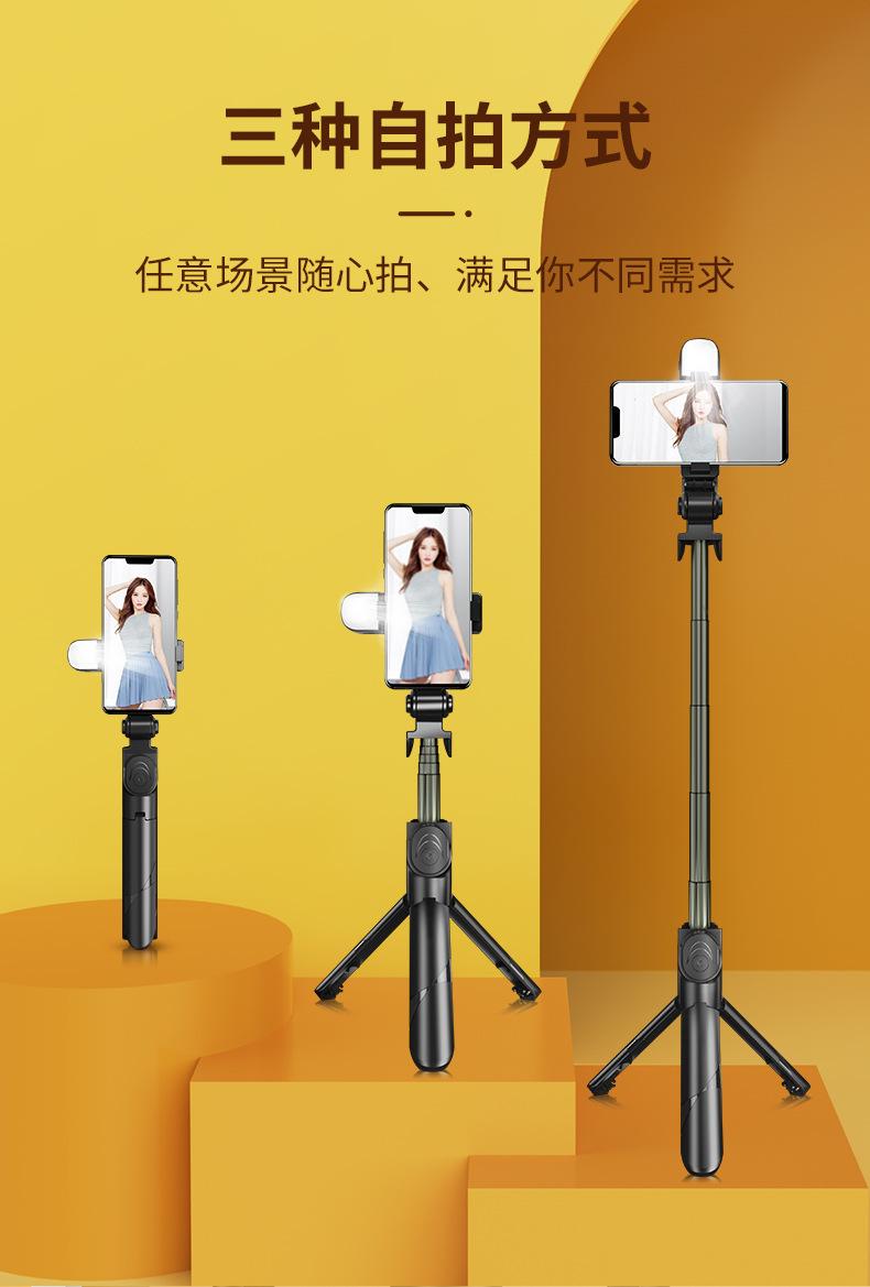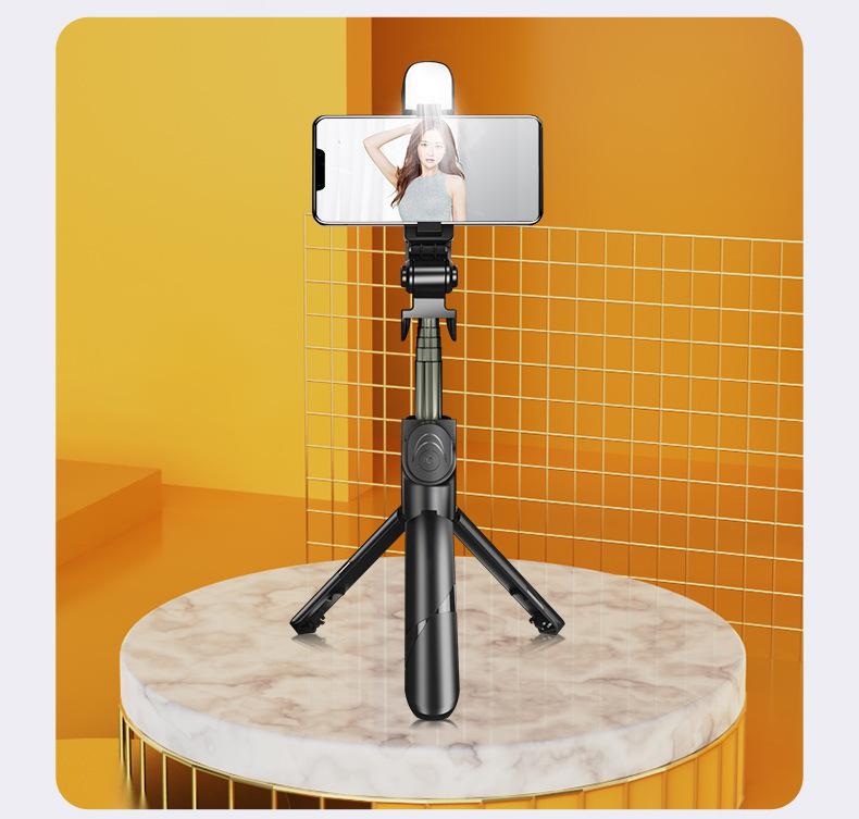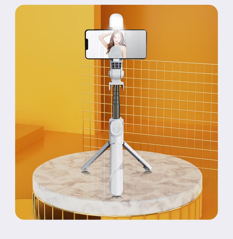 Bastão de Selfie Bluetooth com Luz de Beleza, Suporte de Telefone para Transmissão ao Vivo, Bastão Tripé Telescópico Portátil de Mão para Gravação Vertical