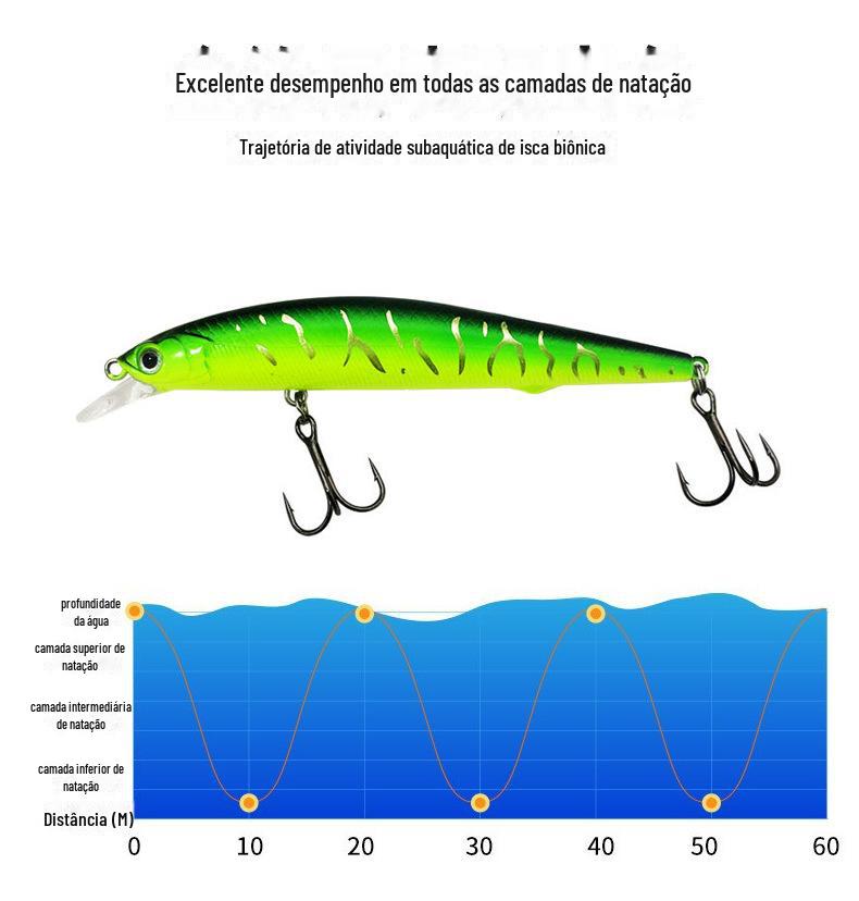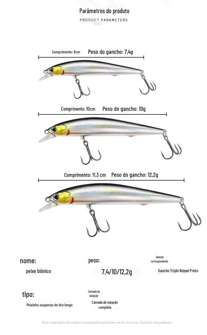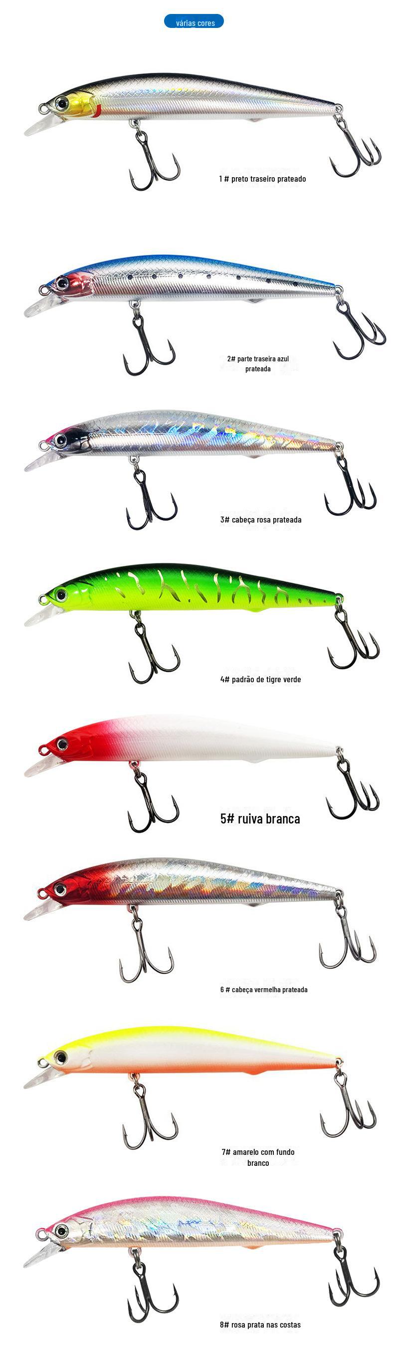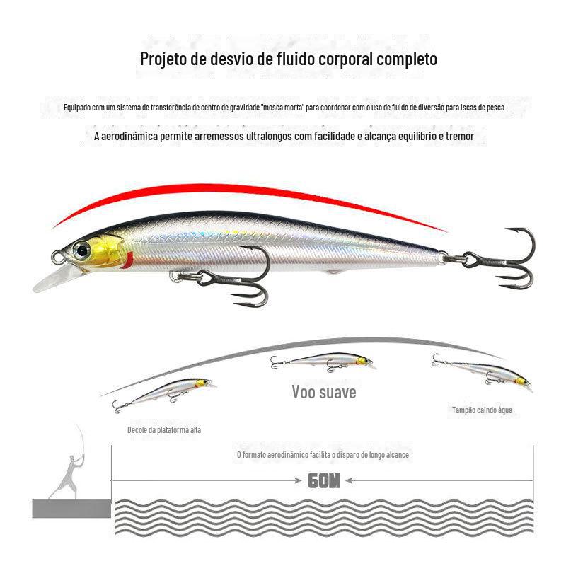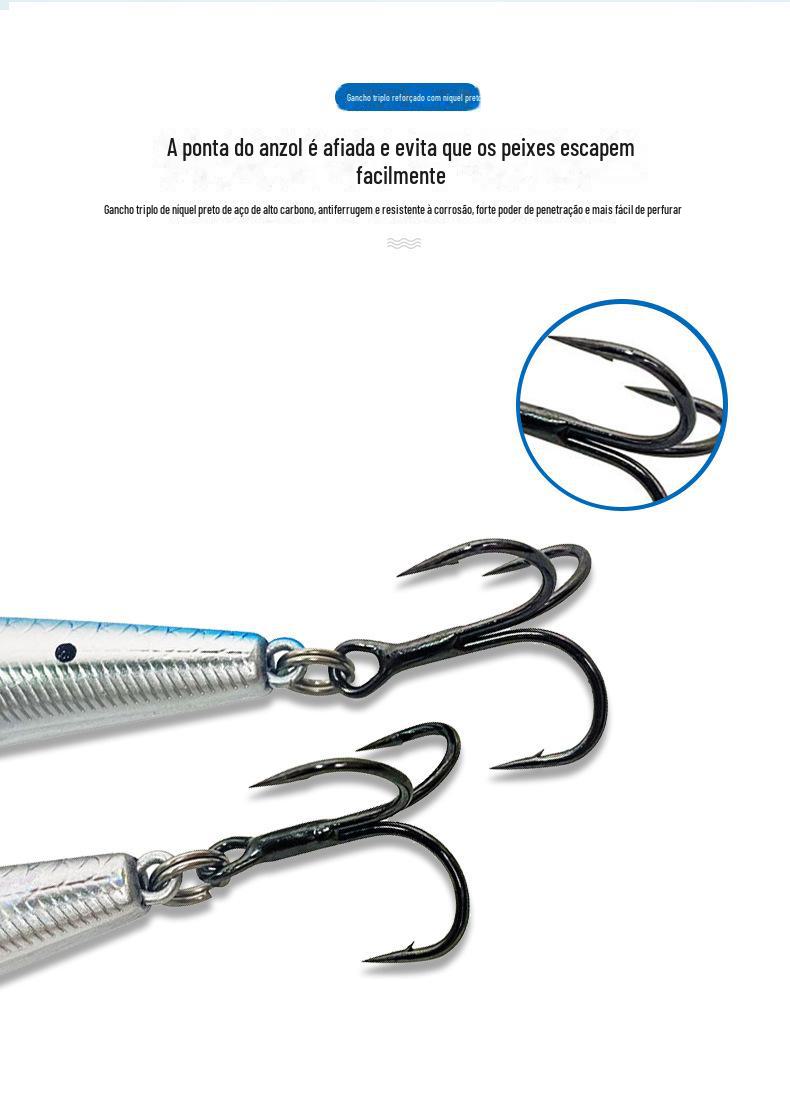 Suspensão de tiro longo Mino níquel preto reforçado anzol mosca morta isca dura biônica isca falsa atacado água doce pesca isca