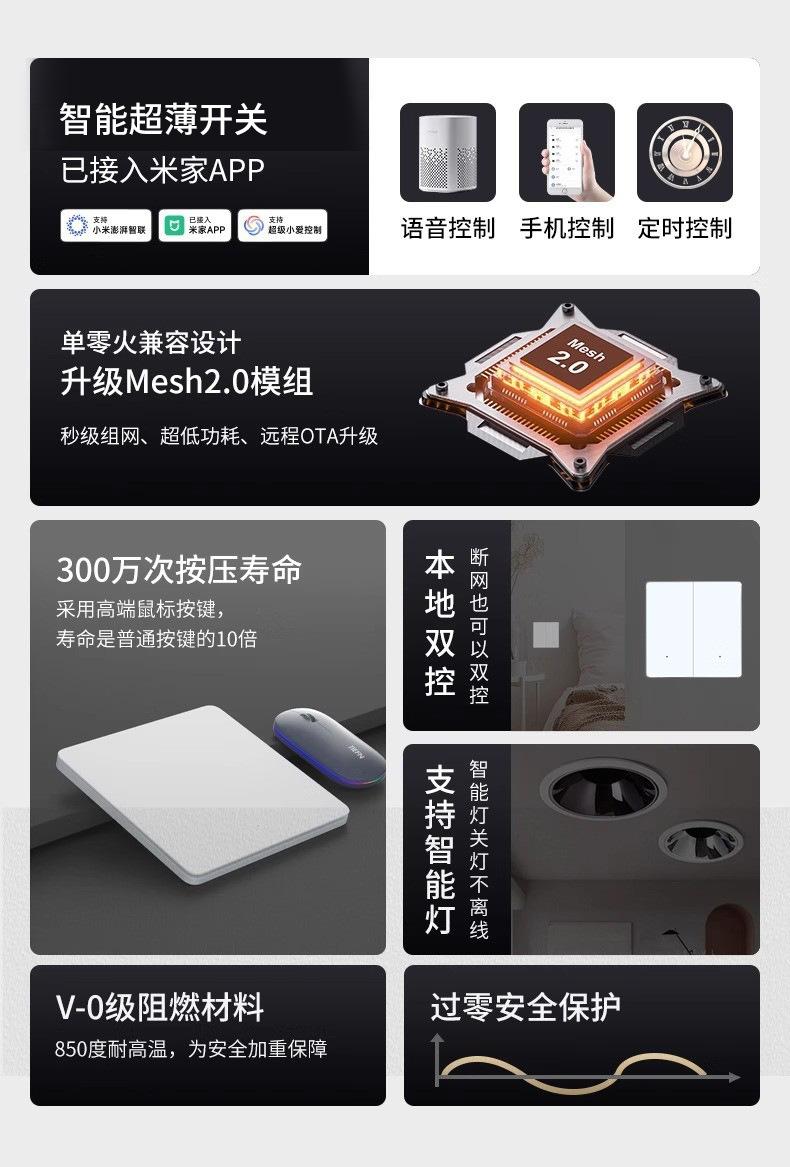 Painel de Interruptor Inteligente Atacado do Fabricante Foi Conectado ao Aplicativo Mijia Controle Remoto por Voz do Celular Fogo Simples Zero Controle Duplo