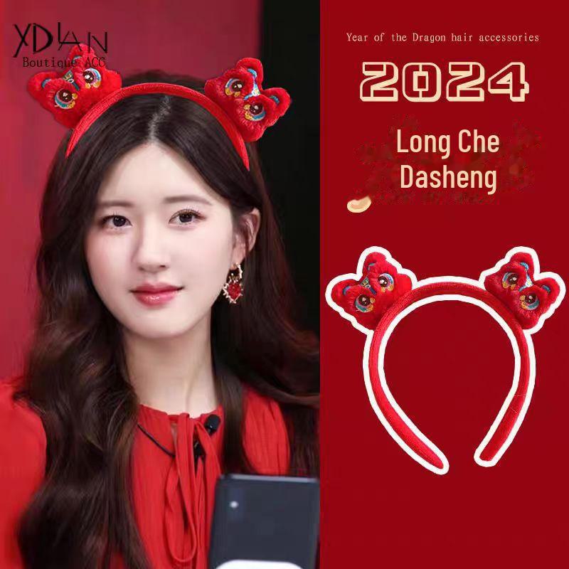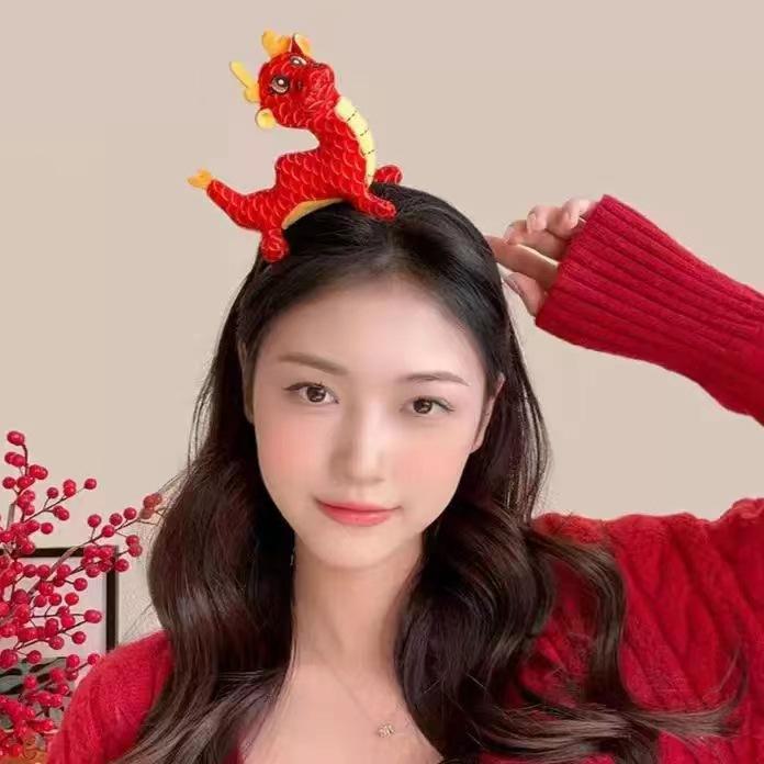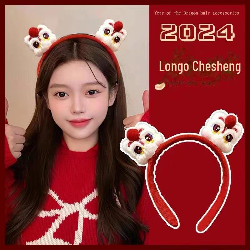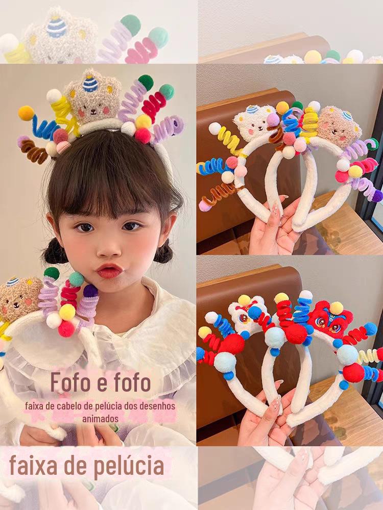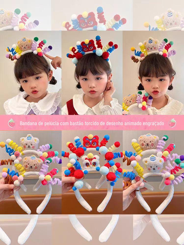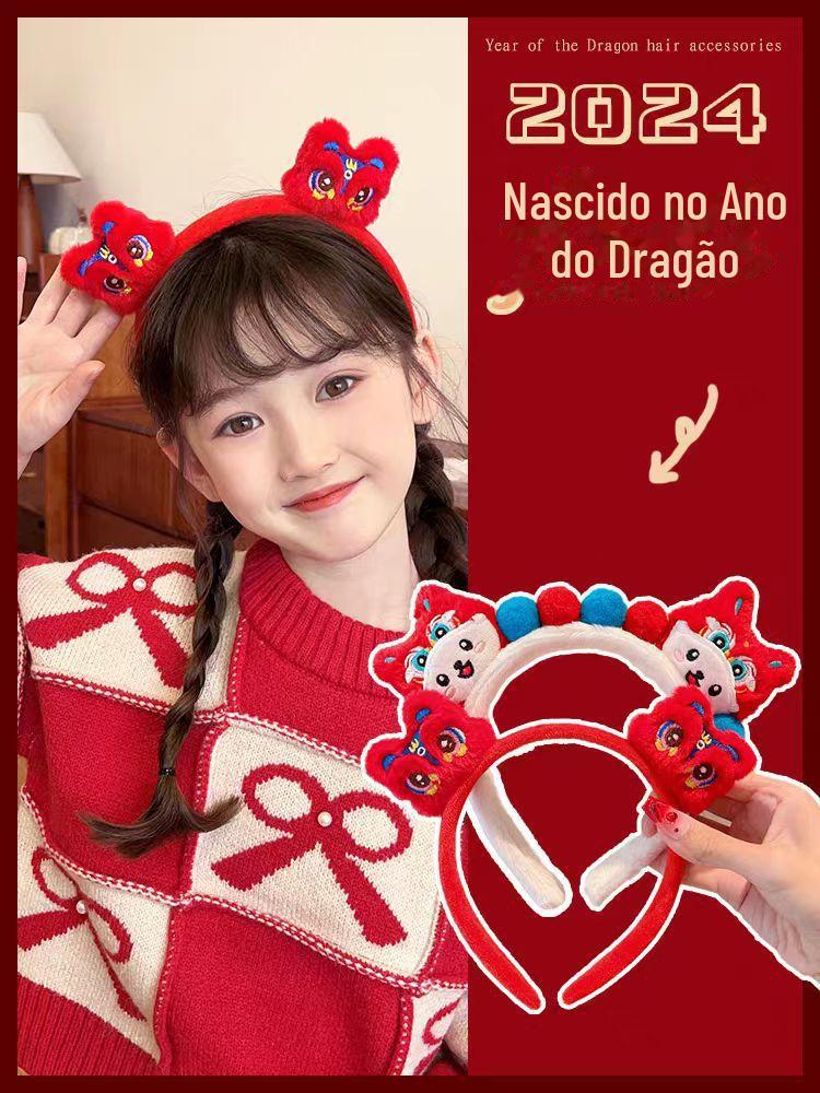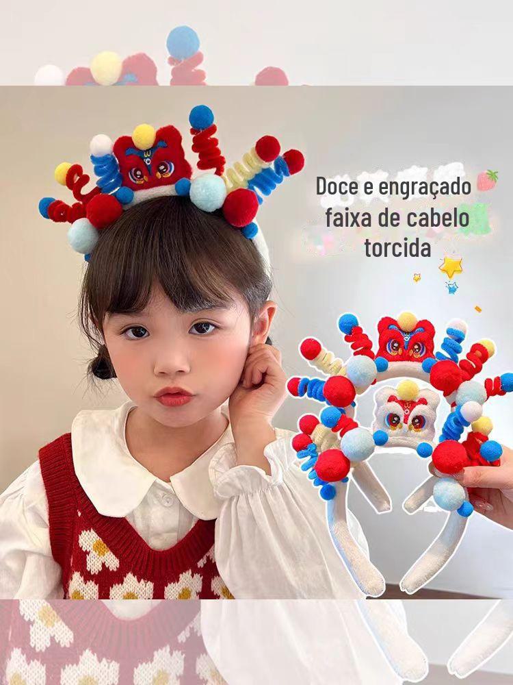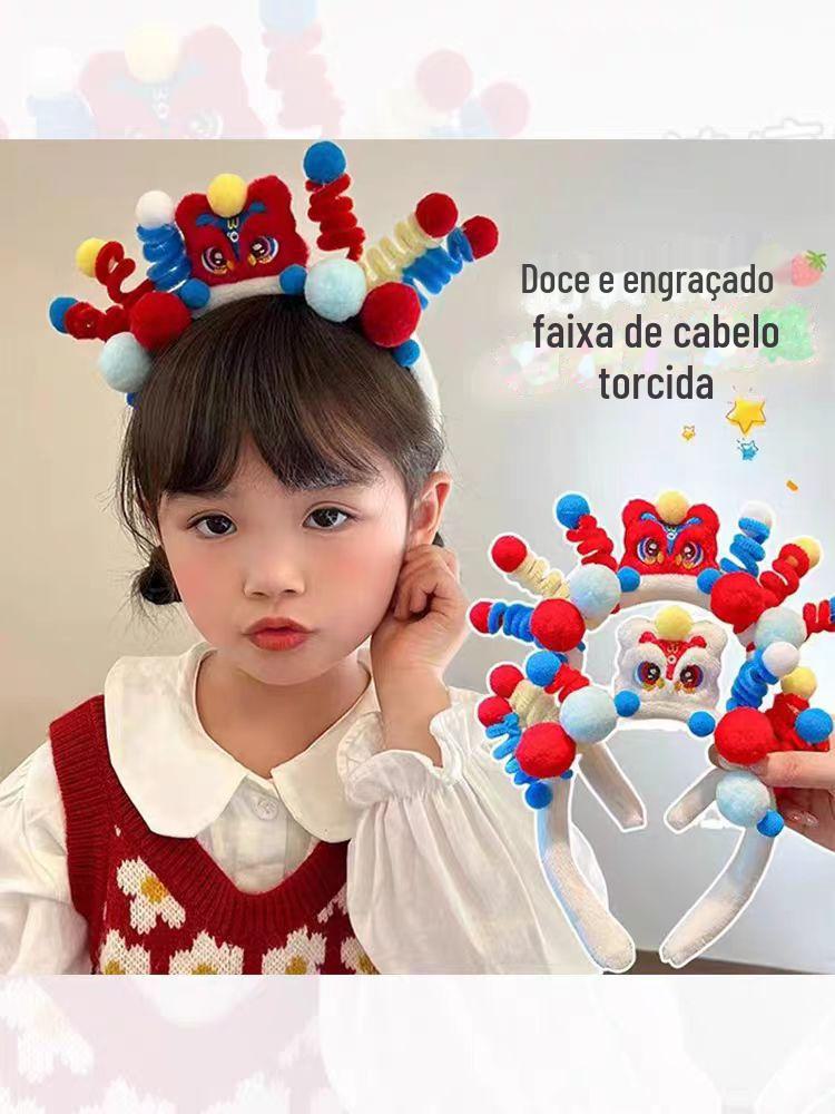 National Fashion Ano Novo headband cocar crianças dragão celebração de ano novo leão headband boneca de pelúcia headband menina performance hairpin
