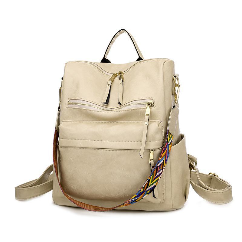 [Características do produto] Mochila feminina clássica Amazon de comércio eletrônico transfronteiriço, tecidos personalizados de fornecedores de matérias-primas, boa resistência a arranhões e cores com textura mais em camadas; todo o corpo usa suspensão em ouro claro e acessórios de hardware refinados e pesados, combinados com correias personalizadas listradas coloridas, adequadas para uma variedade de cenários de uso.