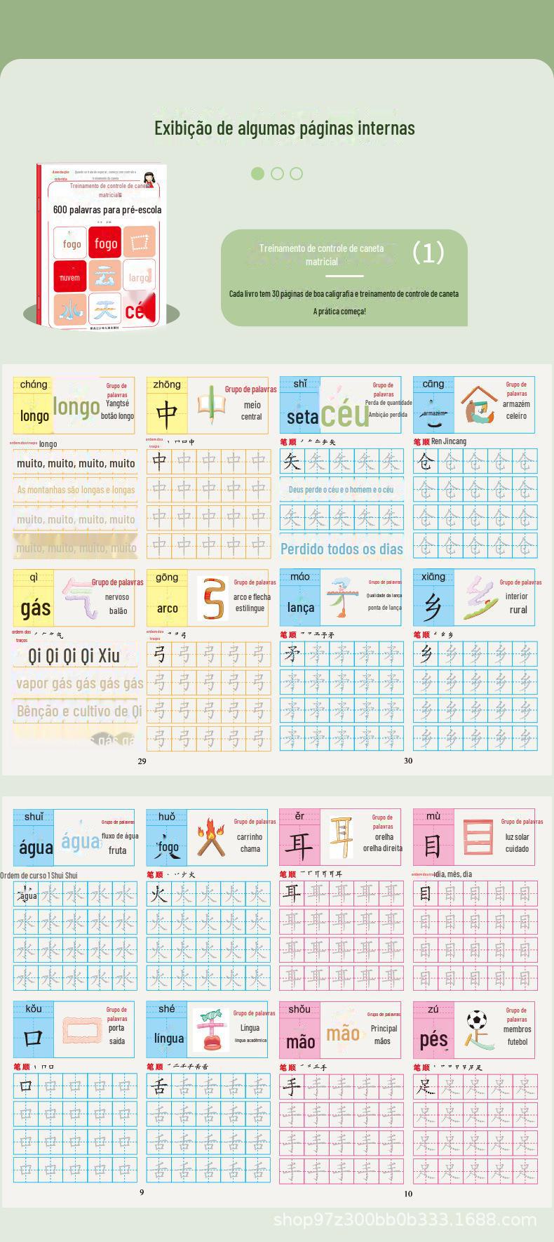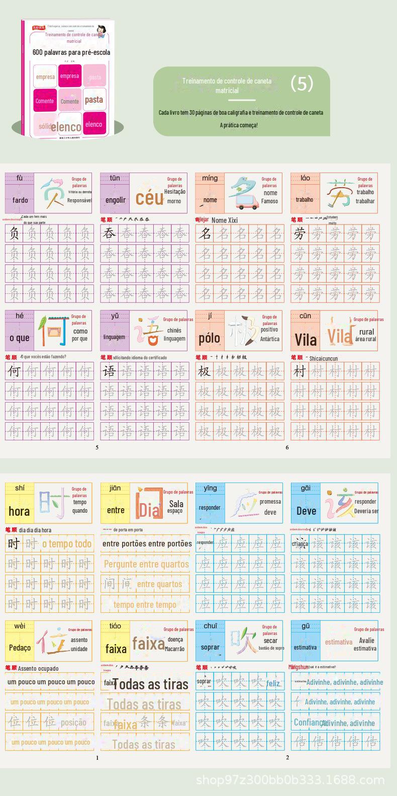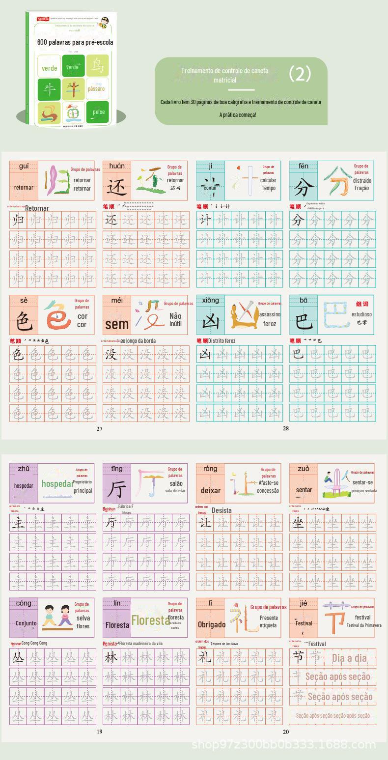 Um conjunto completo de 5 volumes de caligrafia pré-escolar de 600 palavras e posts de aprendizagem