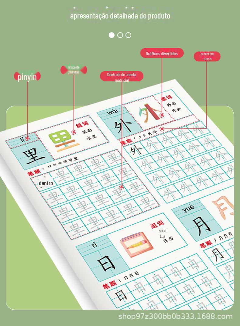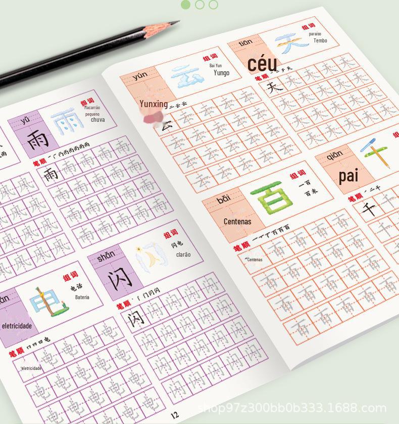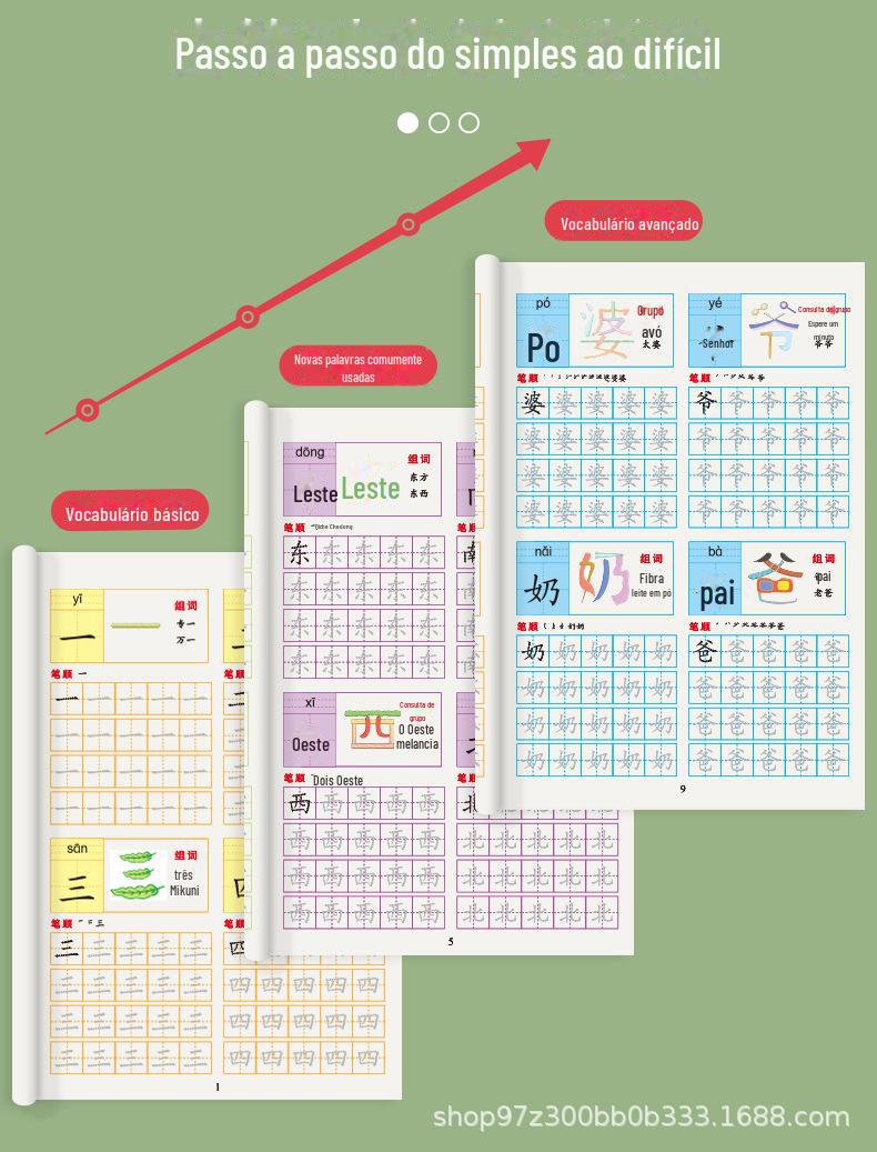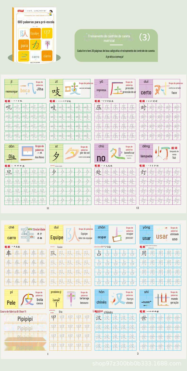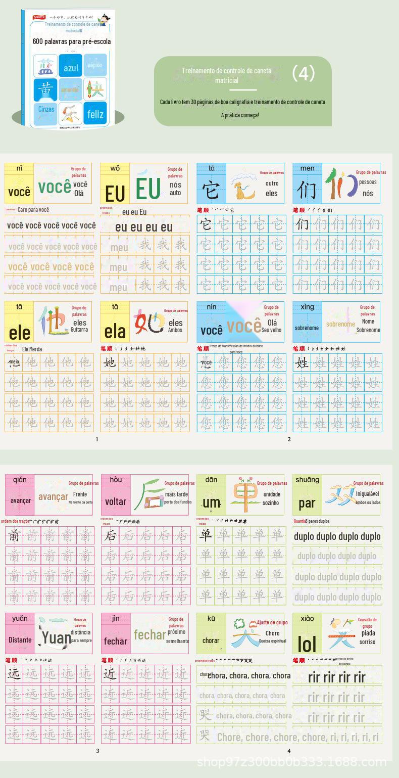 Um conjunto completo de 5 volumes de caligrafia pré-escolar de 600 palavras e posts de aprendizagem