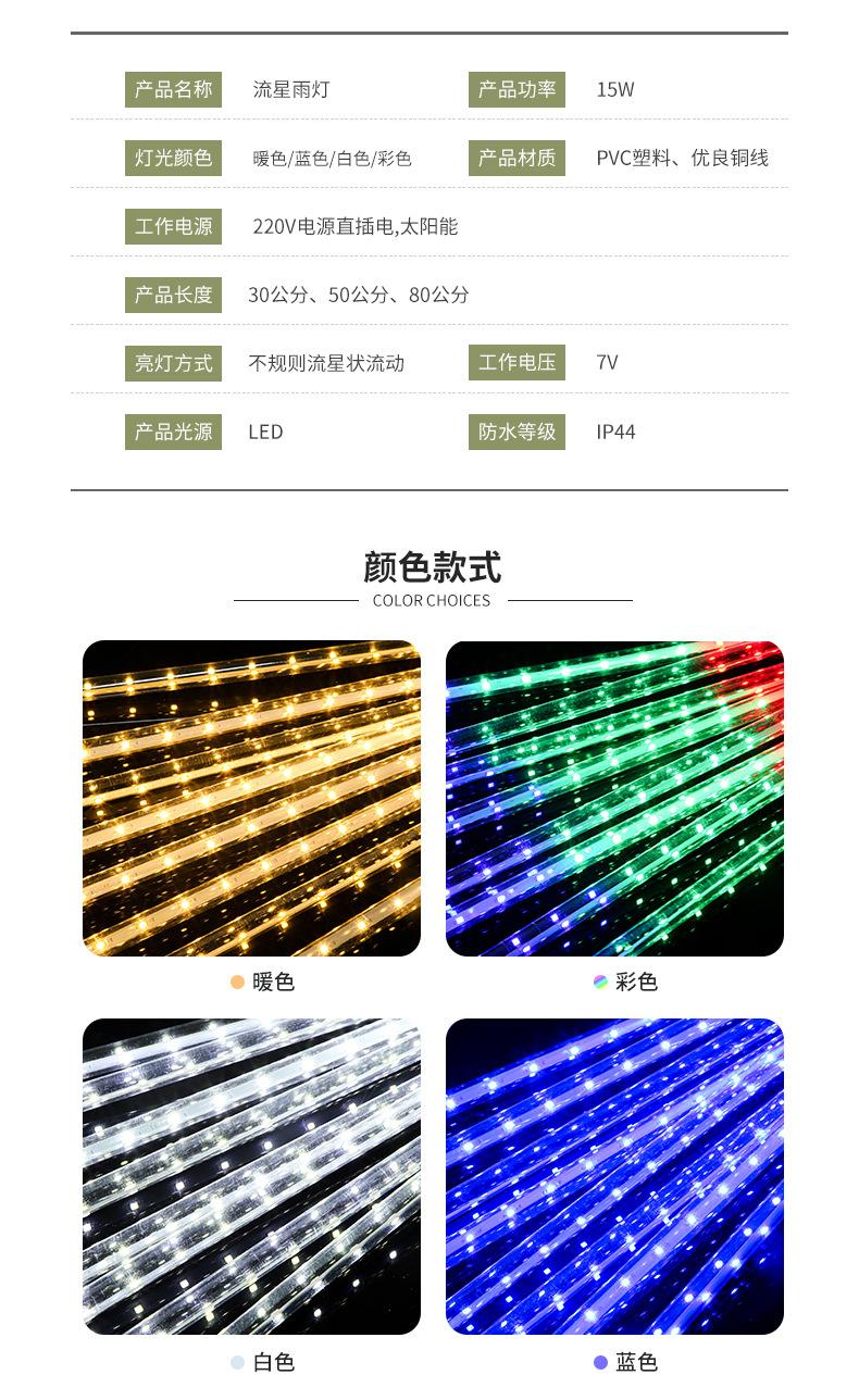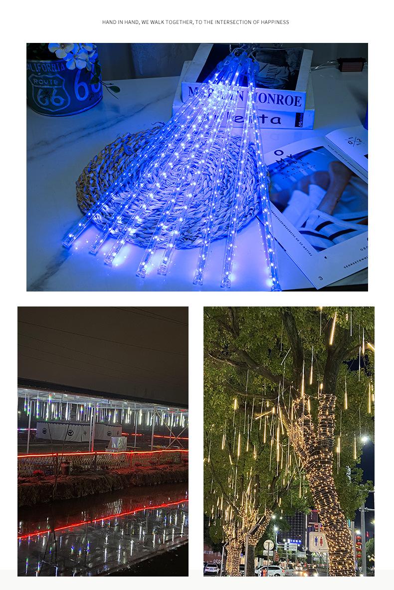 Fábrica por atacado LED chuva de meteoros luz corda Natal feriado ao ar livre impermeável pendurado luz árvore cerca decoração correndo Luz de água