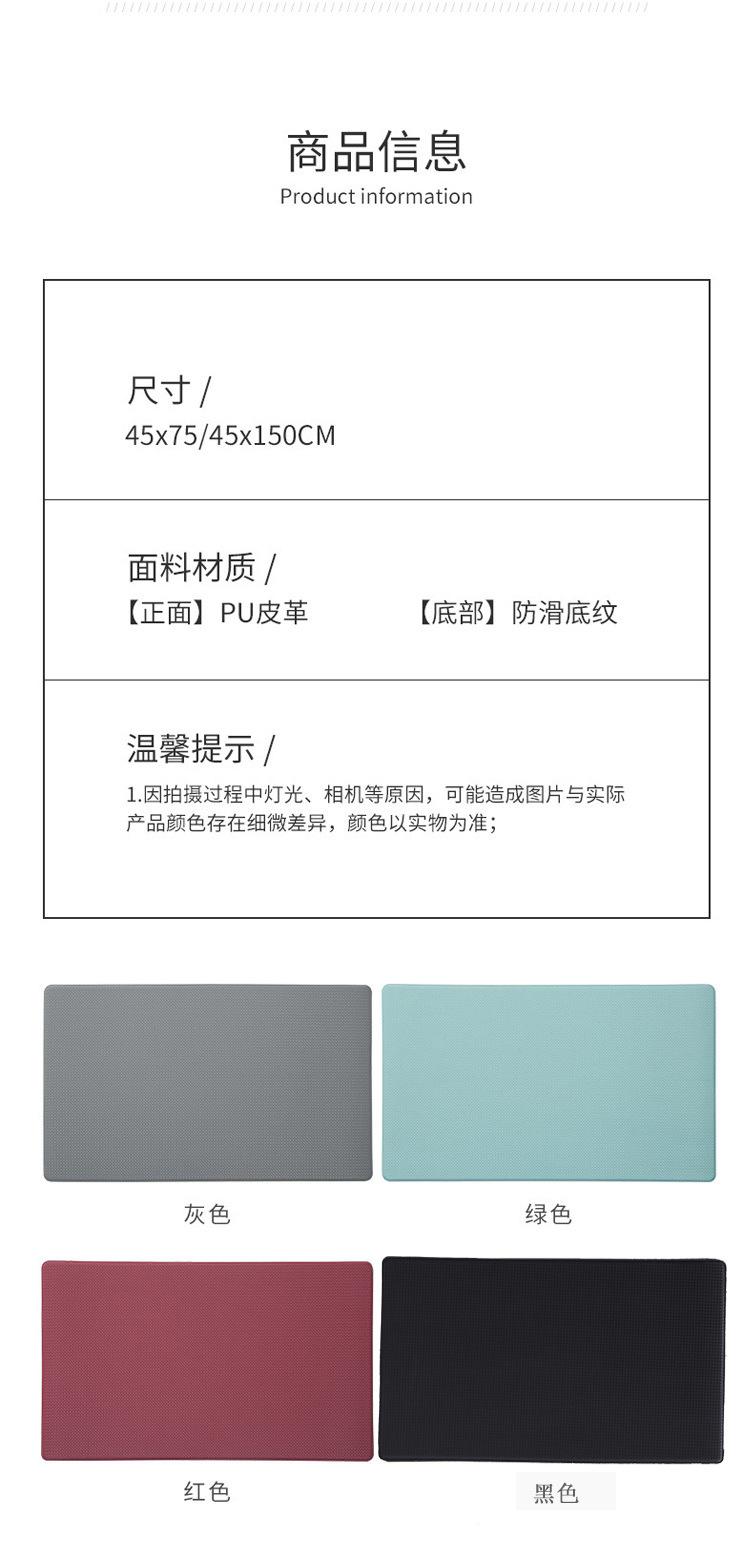 Tapete de Cozinha de PVC Transfronteiriço Impermeável Jogo de Tapetes para os Pés Doméstico Tapete Antiderrapante Carpete de Cor Pura Tapete Lavável para Casa