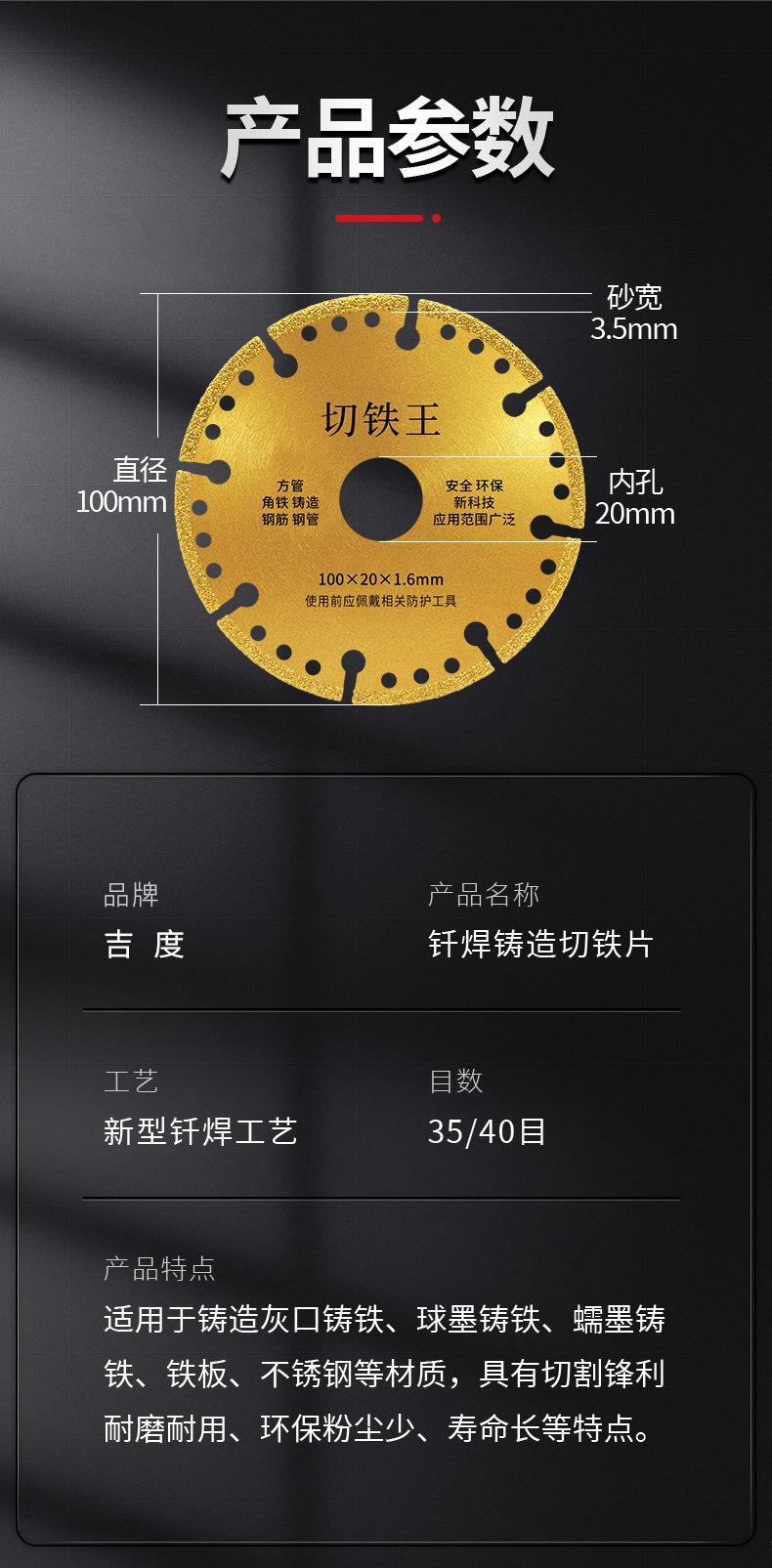 Peça de corte Venda por atacado moedor angular Ferro Corte King Saw Blade Brasagem Multifuncional Metal Ferro Corte Peça Diamante Ferramentas