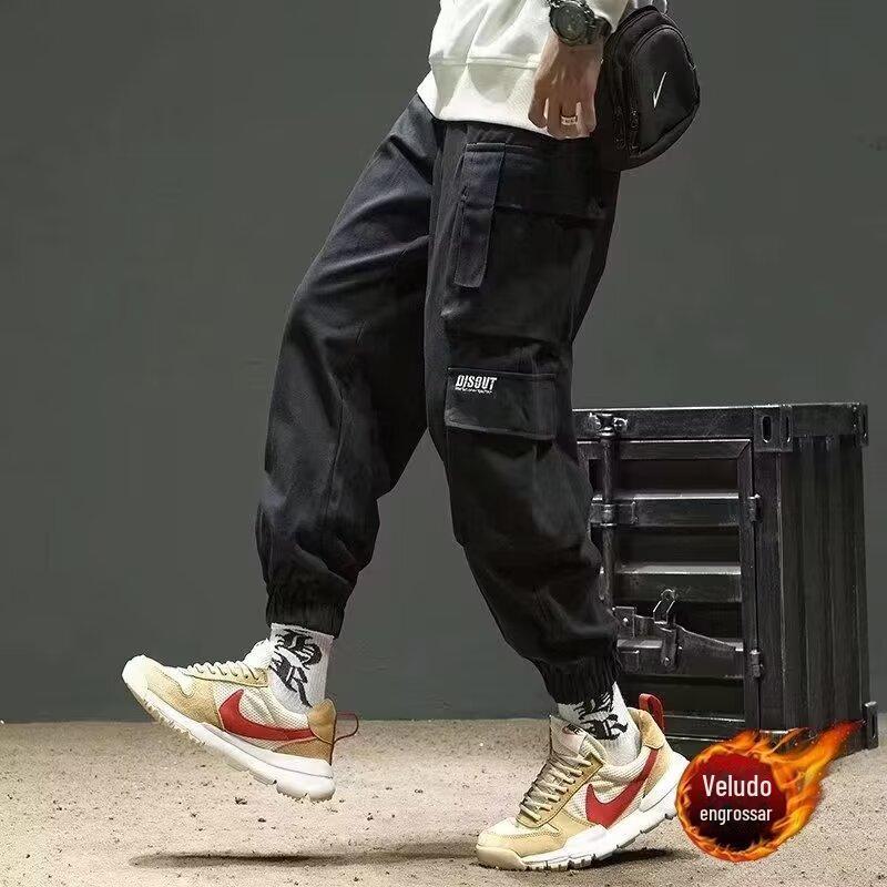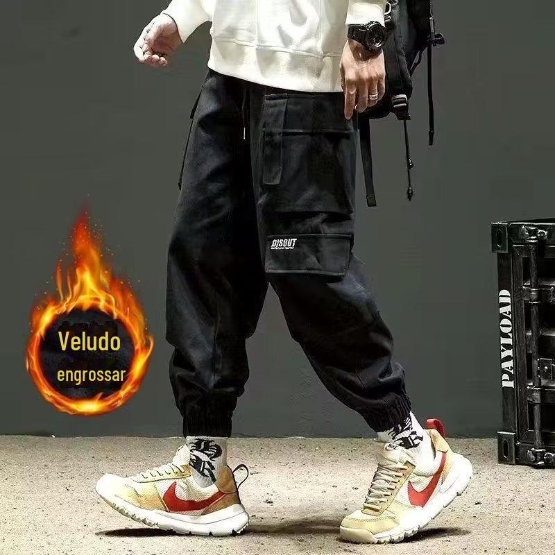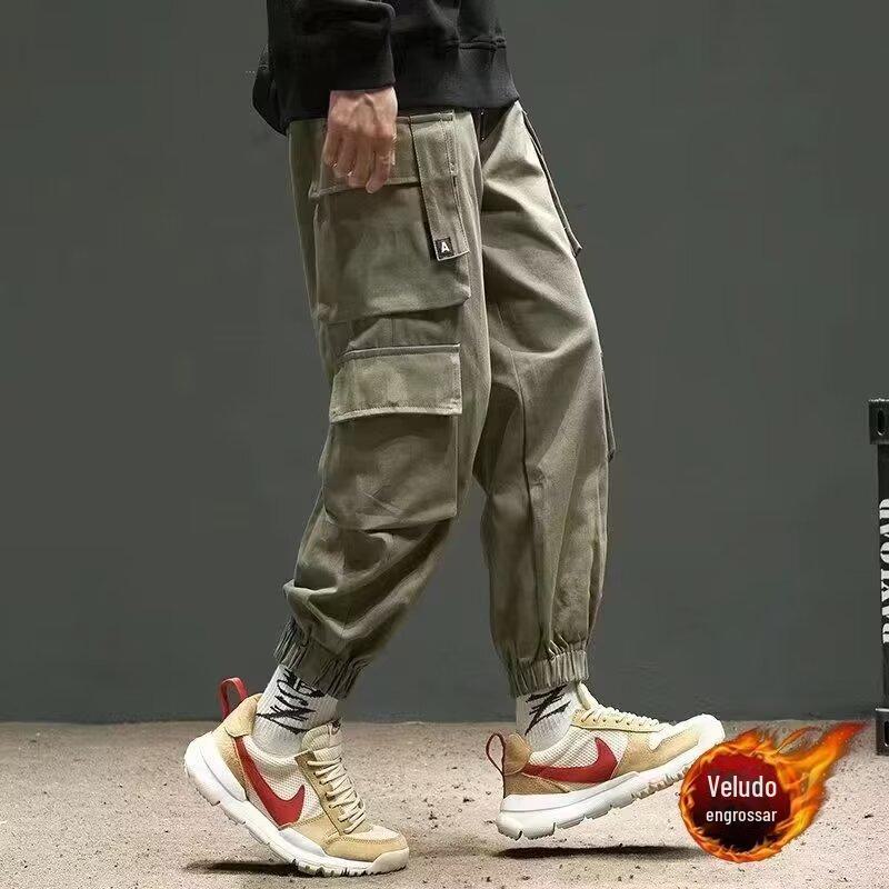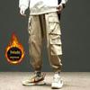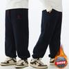 Calças de harém de outono e inverno forradas de lã para meninos e meninas da marca de moda calças amarradas no tornozelo calças casuais largas plus size macacões retrô japoneses
