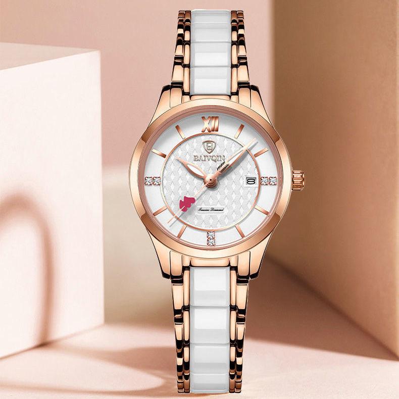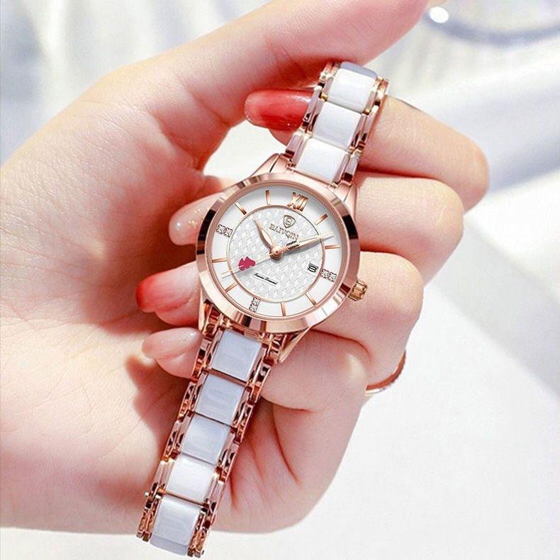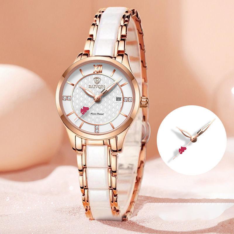 Marca suíça high-end coração conectado impermeável relógio feminino marca relógio feminino Qixi presente