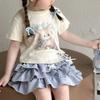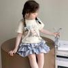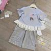 Terno para meninas 2023 Novo Estilo Bebê Verão Manga Curta Floral Roupas Duas Peças Calças de Verão para Bebês Meninas
