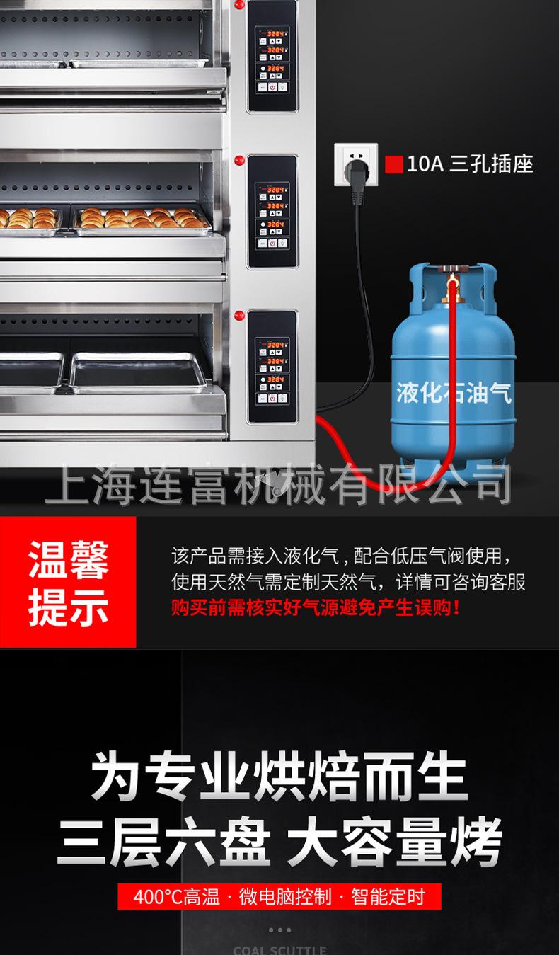 Forno a gás comercial de três camadas e seis placas pão torta de ovo bolo de lua equipamento de cozimento de alimentos a gás forno de seis placas de três camadas