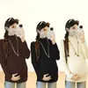 Maternidade outono puro algodão topo meados de comprimento manga comprida solta moda coreana na moda mãe gravidez camiseta inverno camisa de fundo